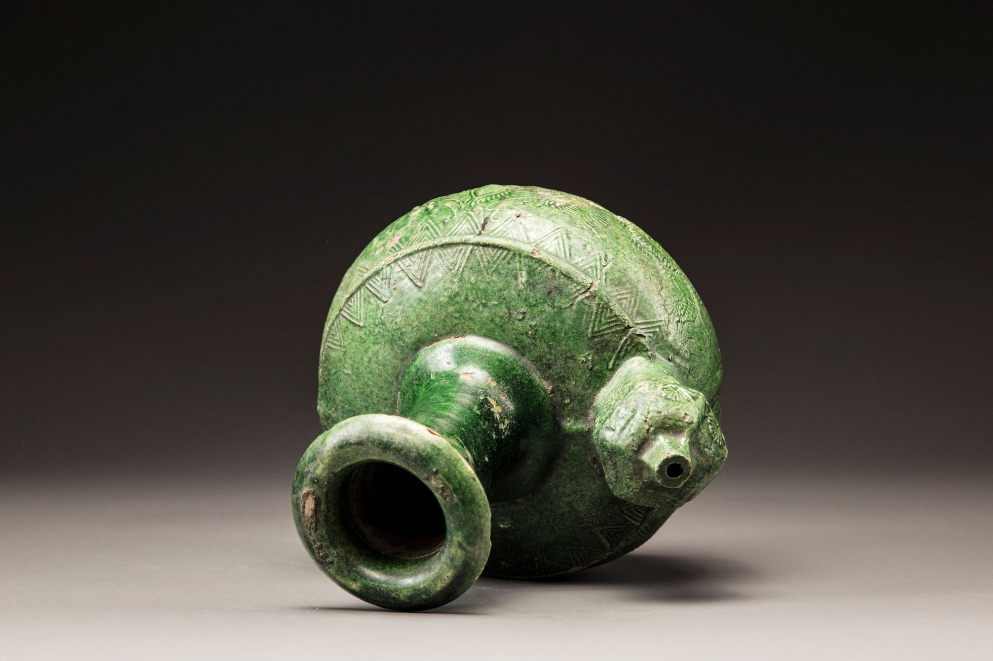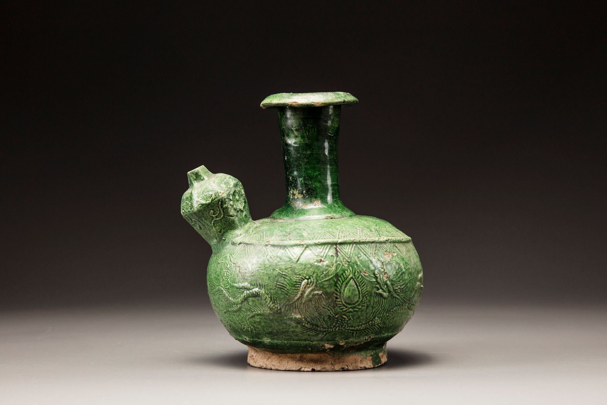 Catalogue notes: a similar green-glazed kendi was exhibited at the Washington Oriental Ceramic Group, 'Glorious Pots: A Millenium of Southeast Asian Trade', 8 April - 20 May 2006, item no. 11.