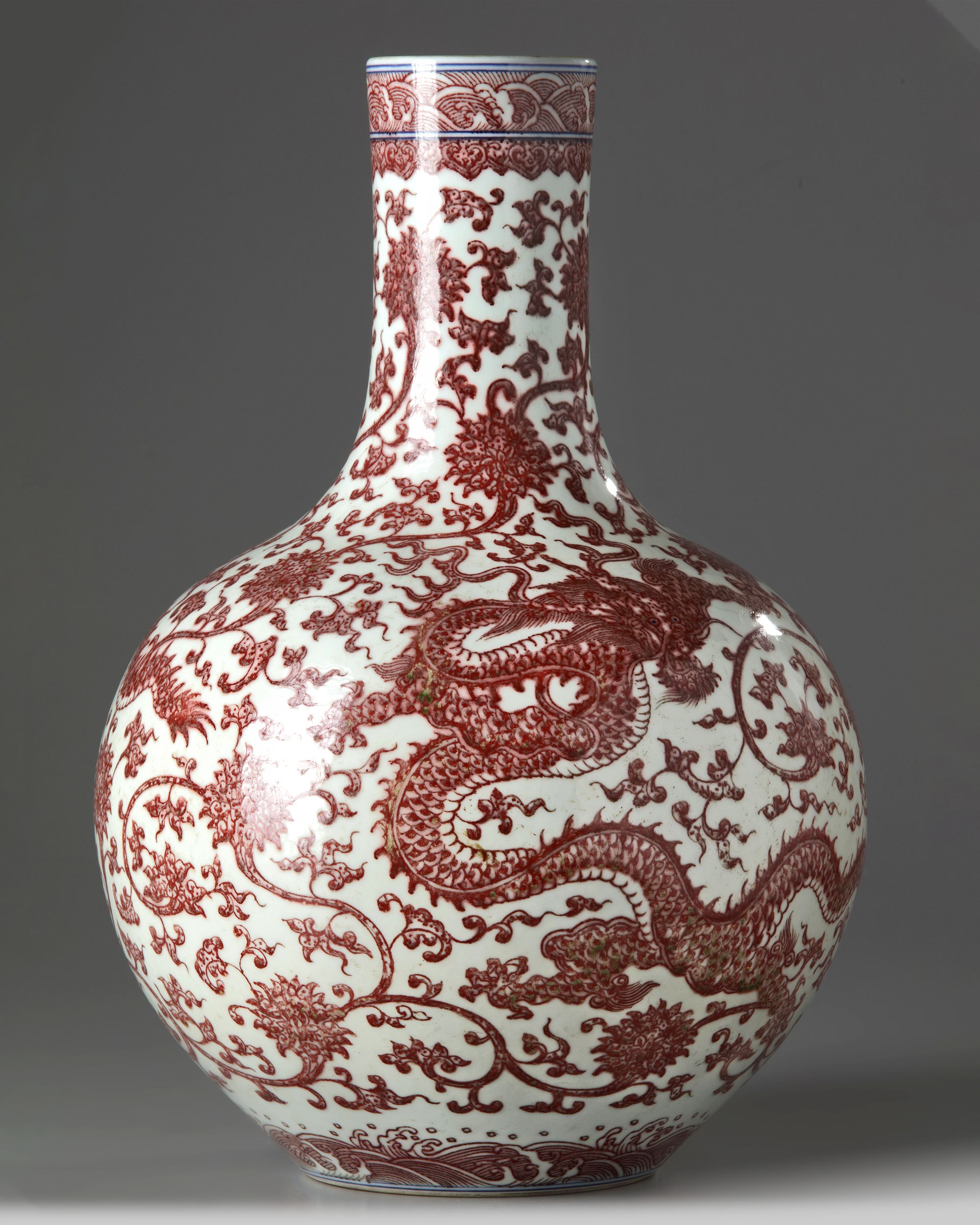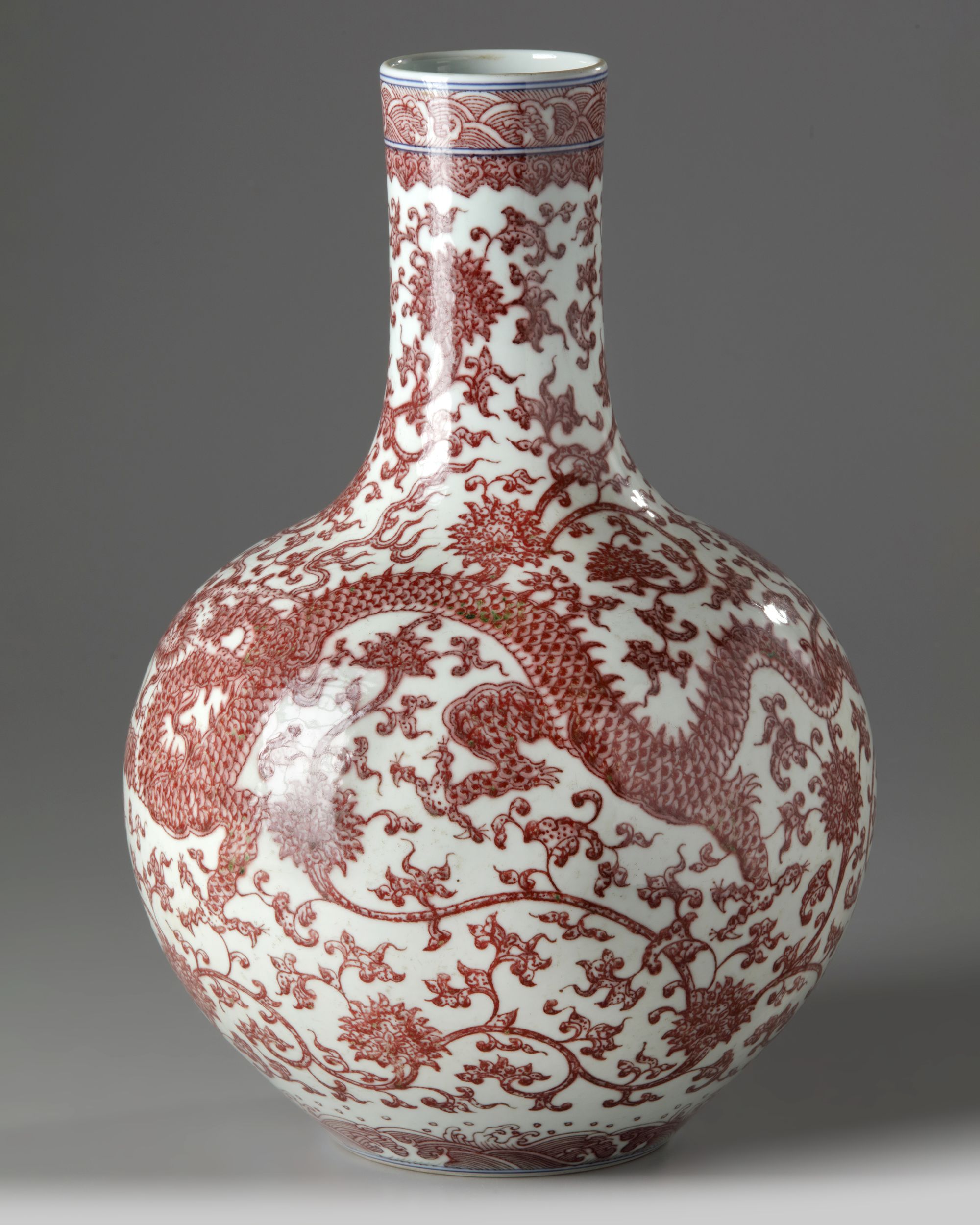 A CHINESE UNDERGLAZE COPPER-RED-DECORATED 'DRAGON' VASE, QING DYNASY (1644-1911)
