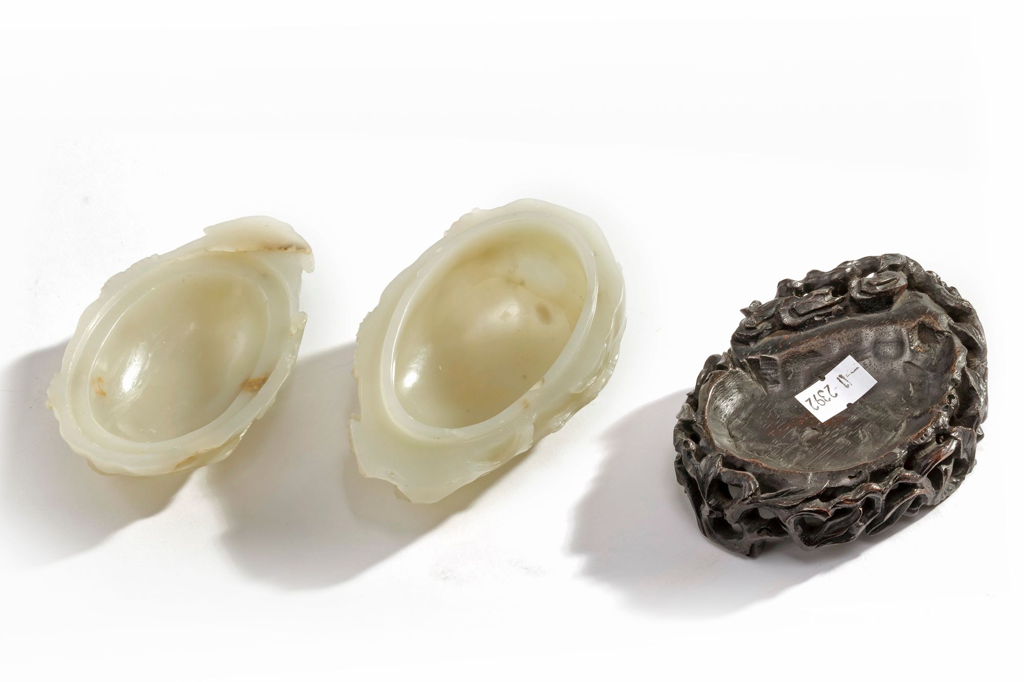With a wood stand carved and pierced as a leafy branch.