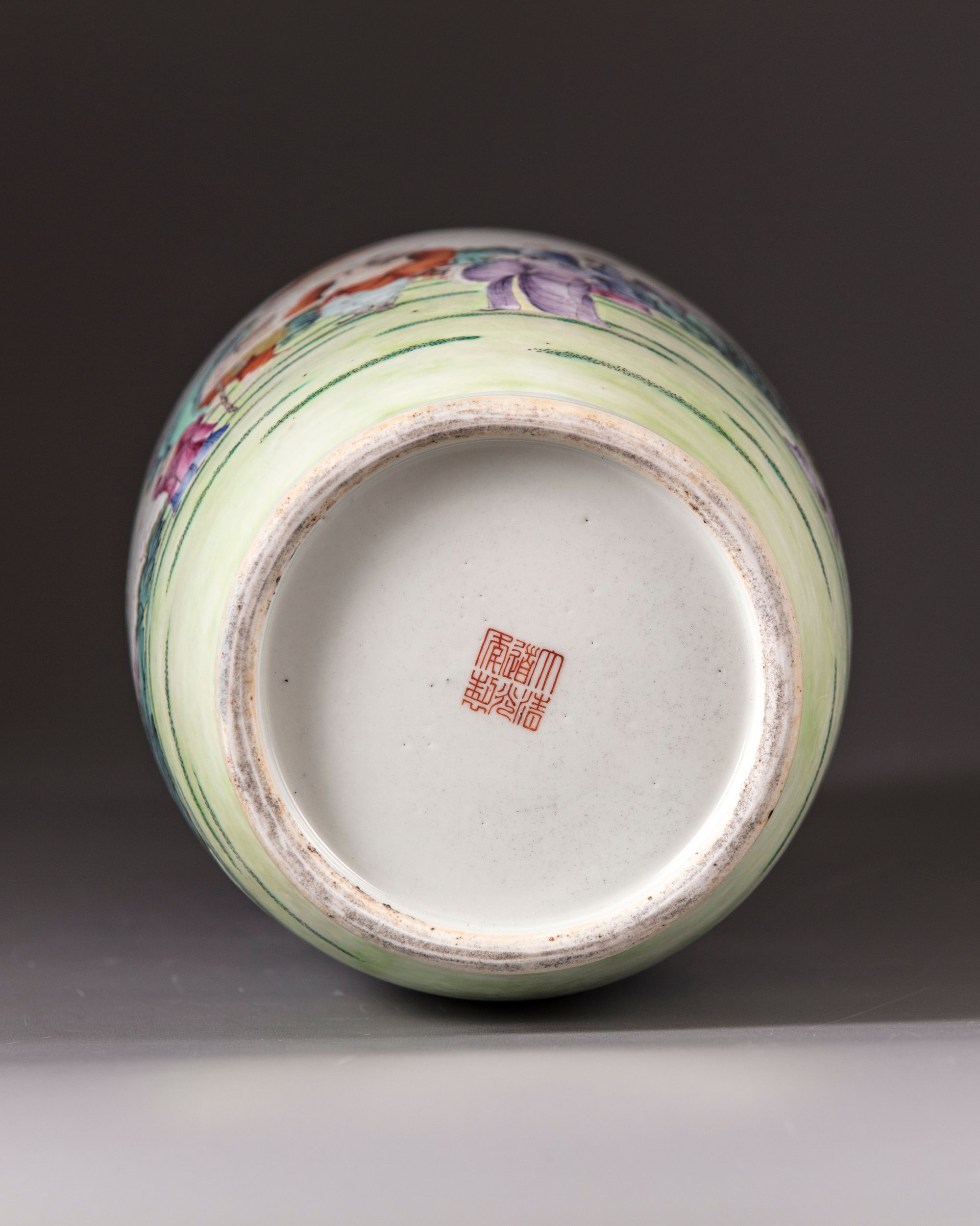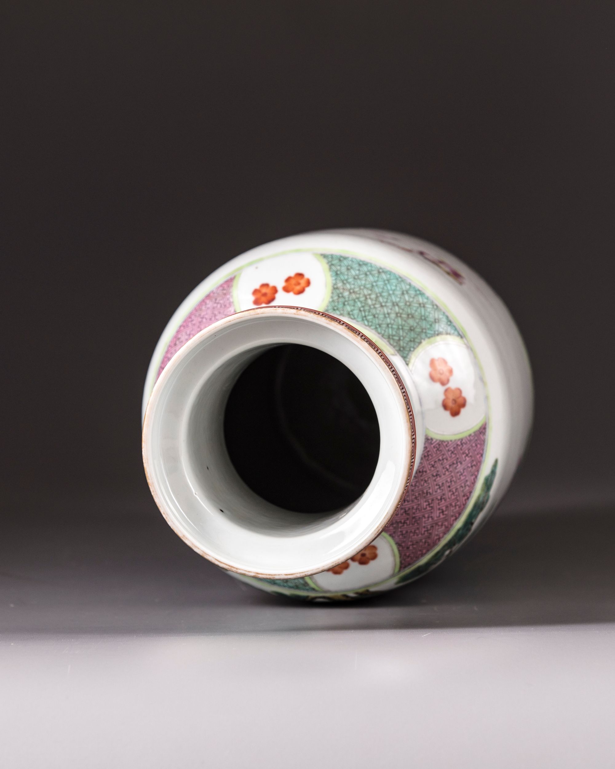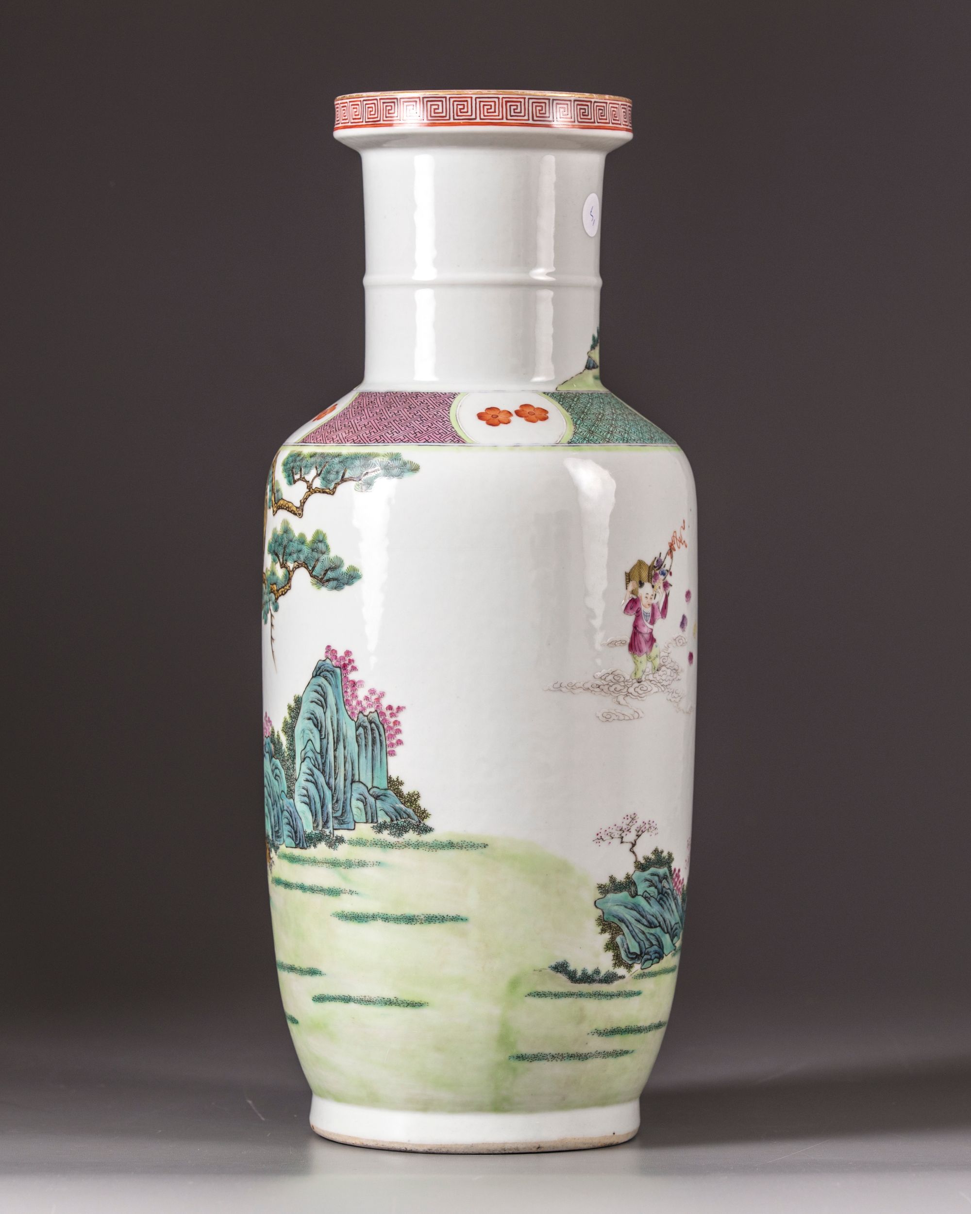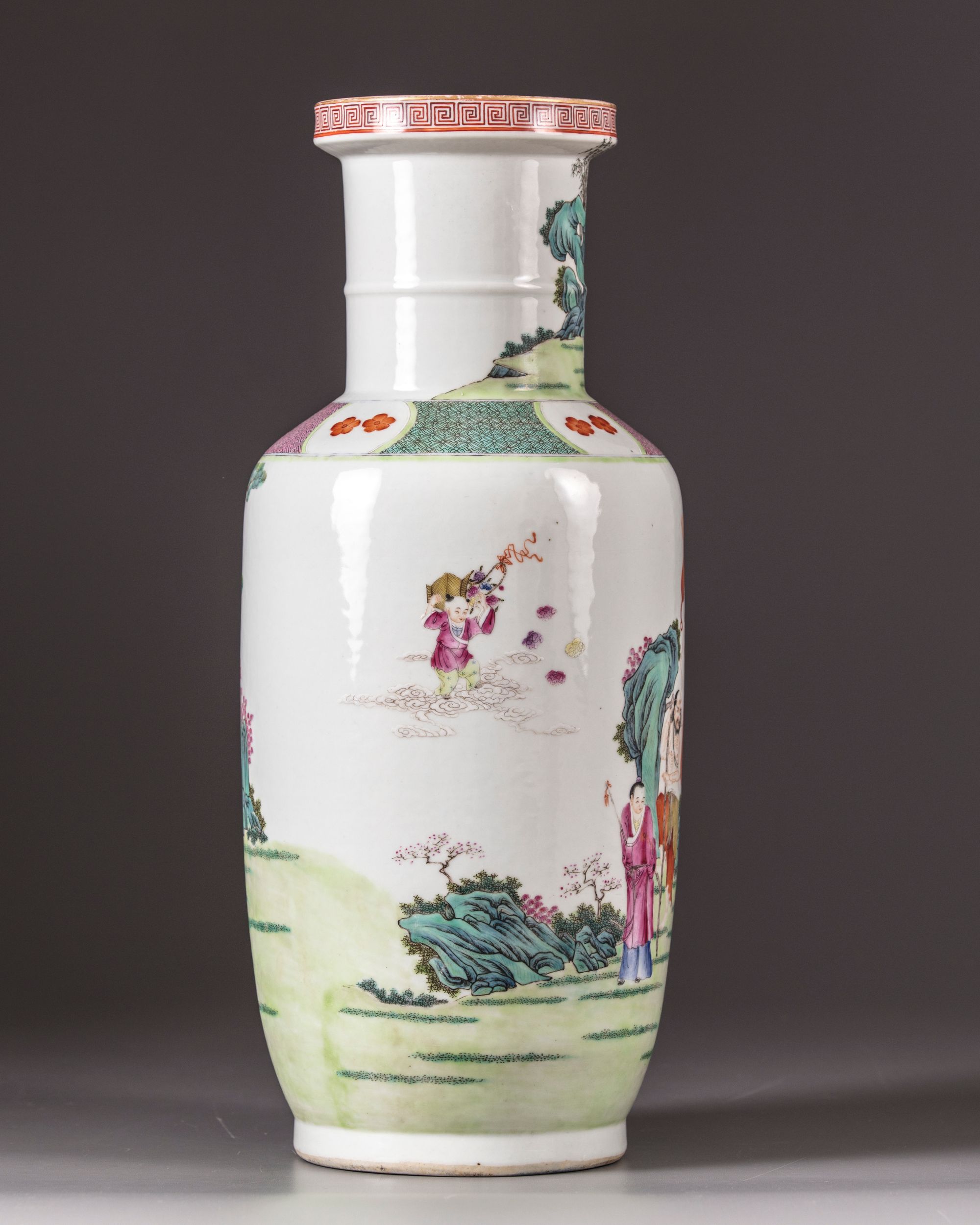 The neck is further decorated with a shou lao figure with boys at play with a diaper band containing cartouches of flowers.