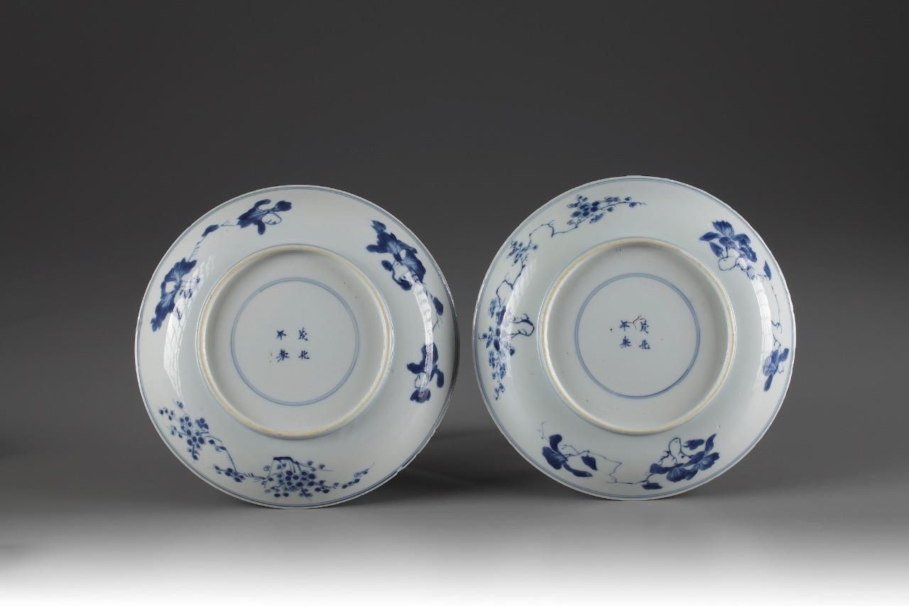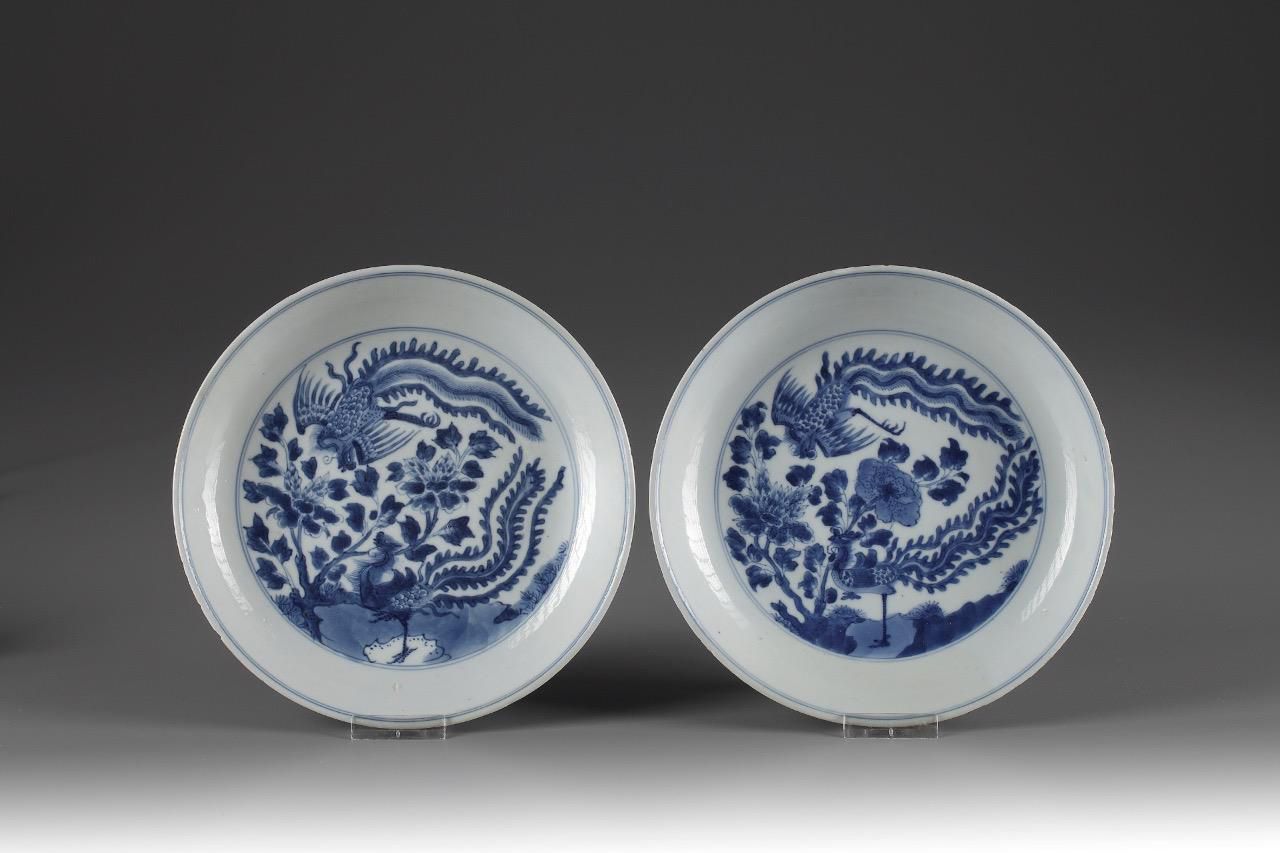 Each dish is decorated with two phoenixes amongst flowering peonies. The bases with an apocryphal Chenghua mark within a double circle.