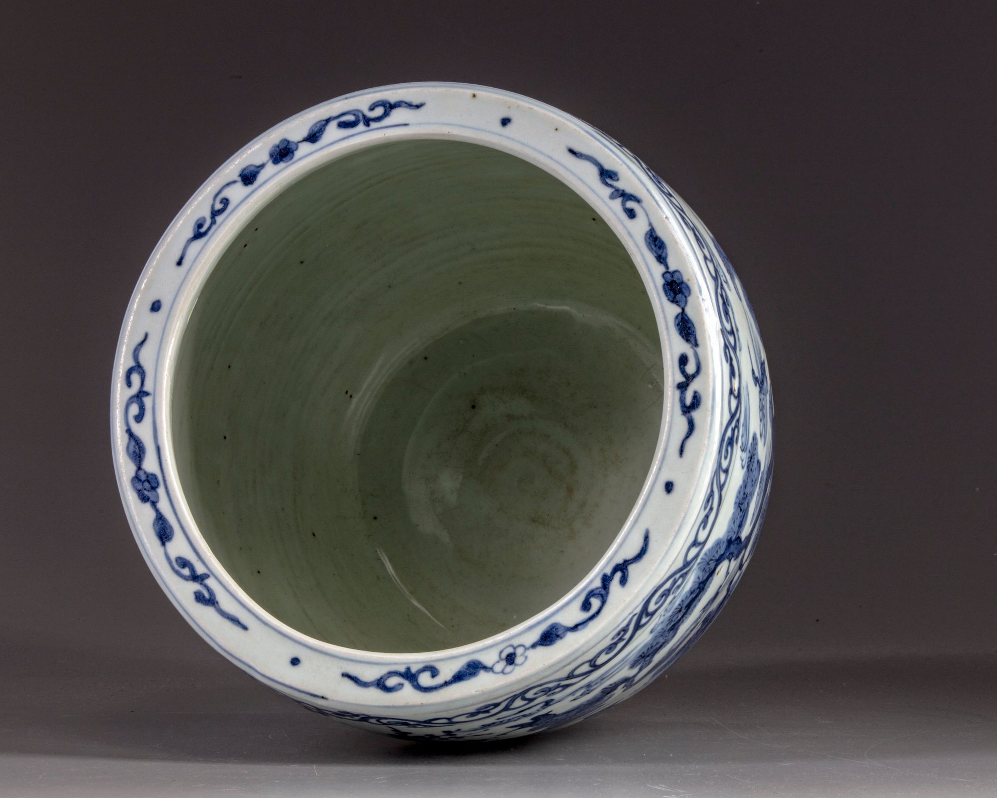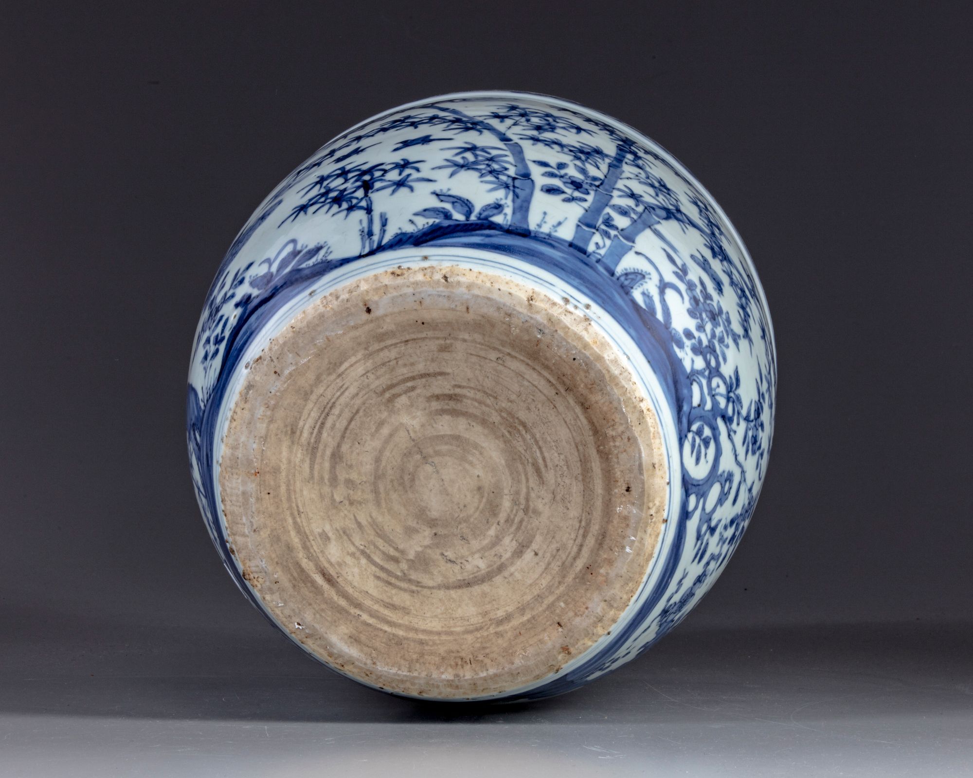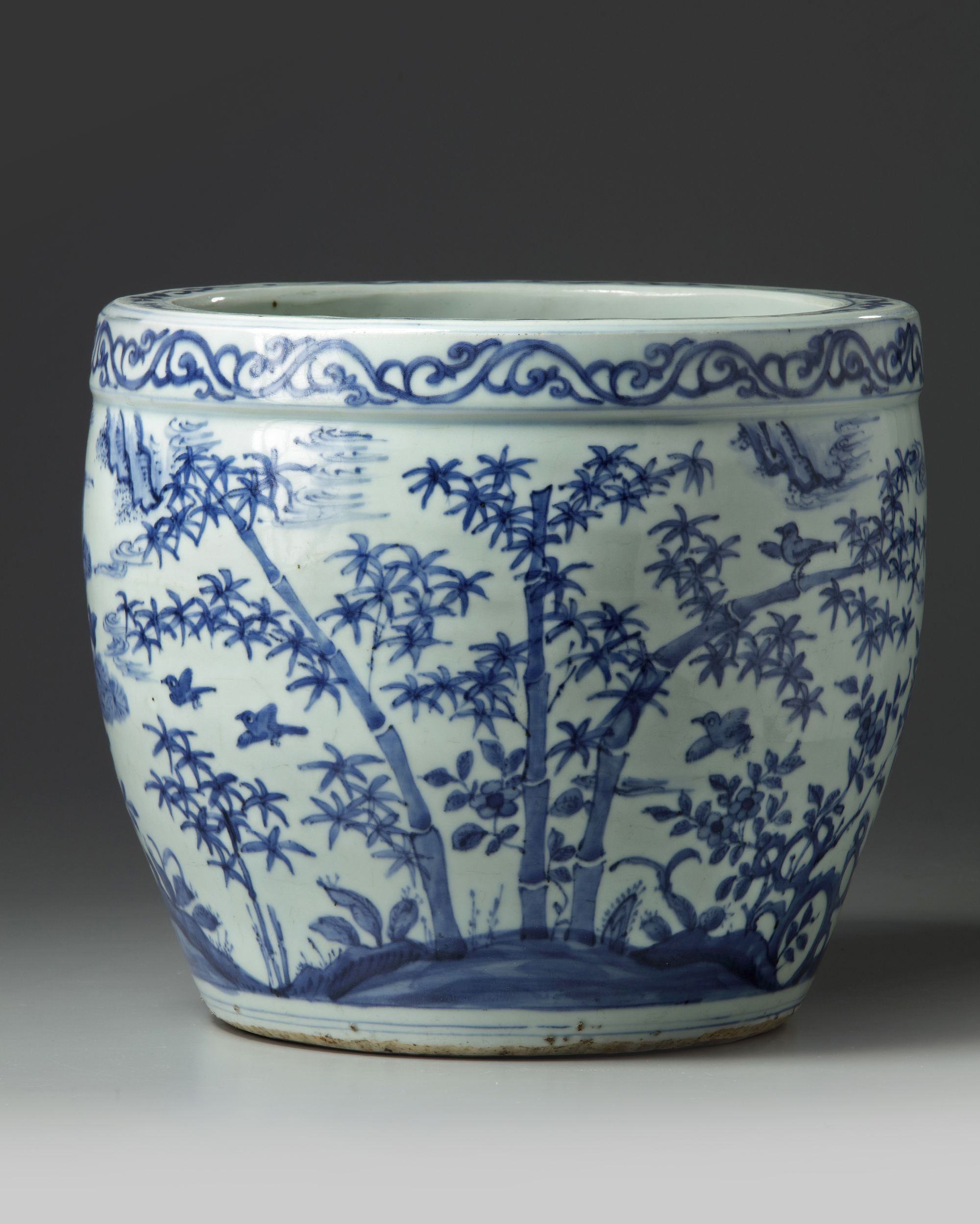 A Chinese blue and white 'Three Friends of Winter' jardiniere