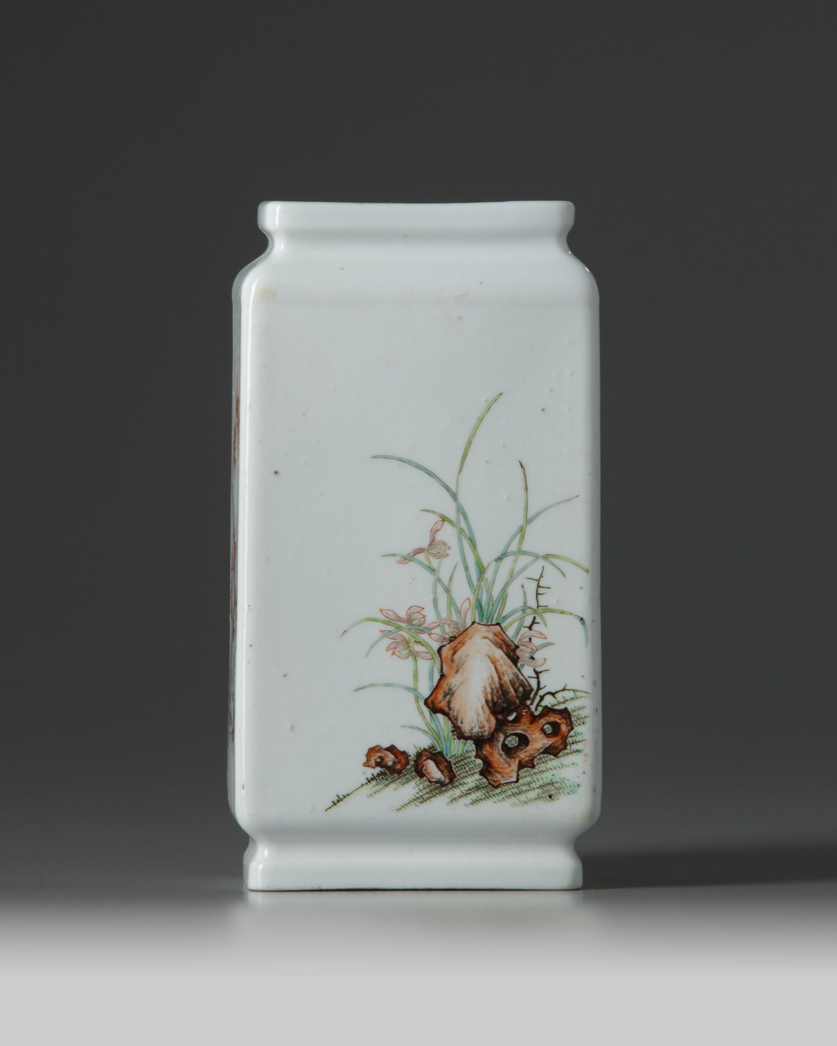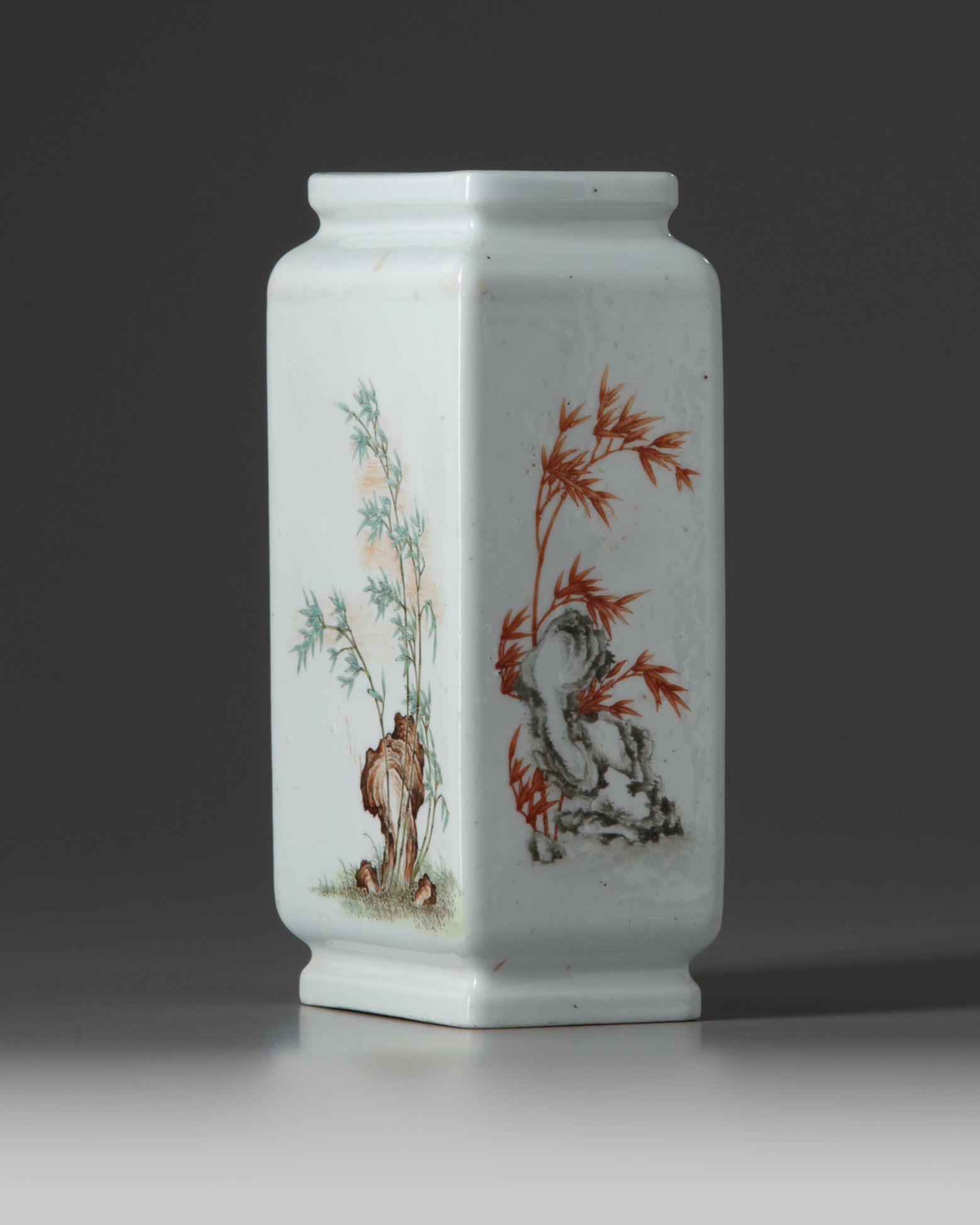 A Chinese famille rose ‘bamboo and orchid’ rectangular-section vase