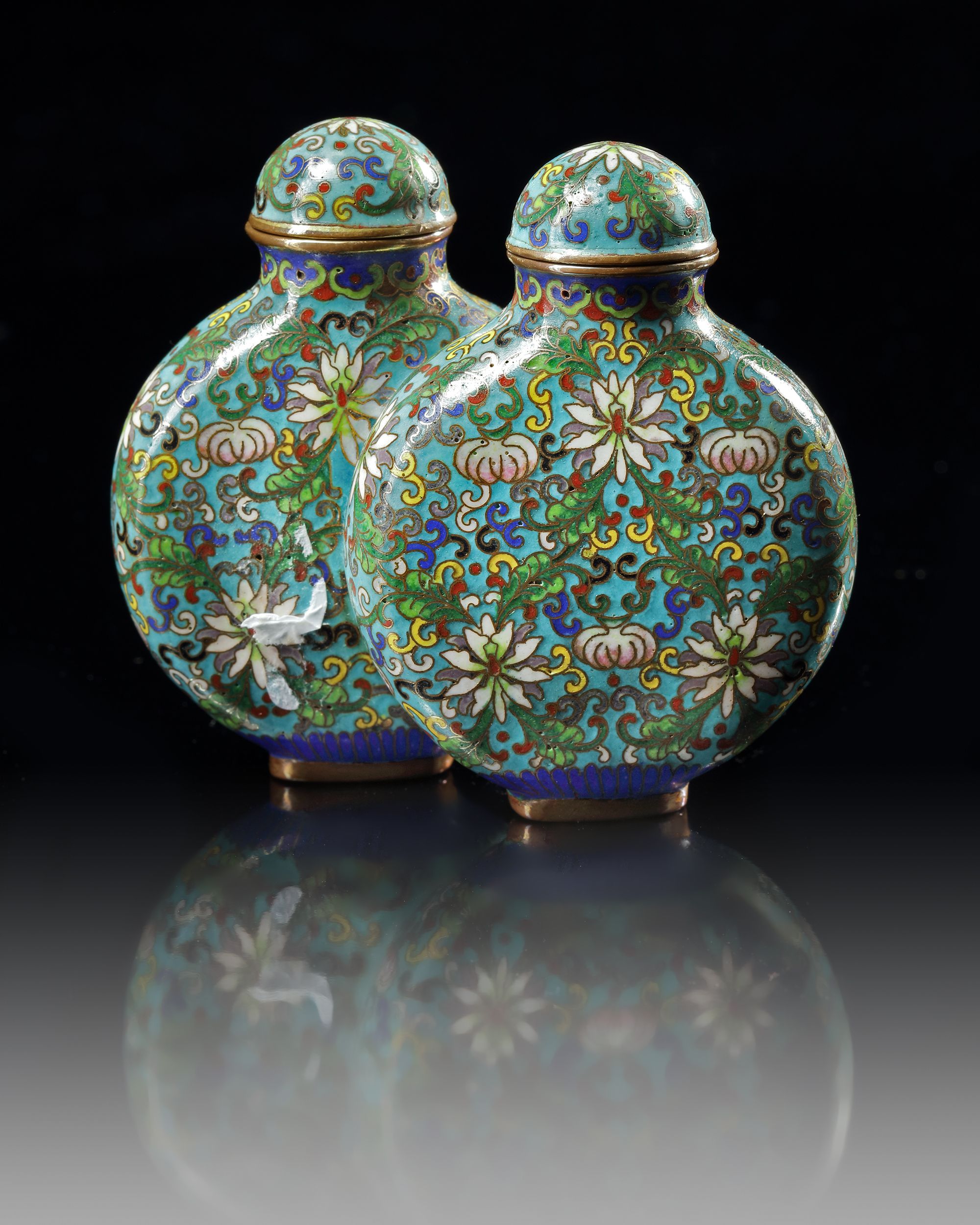 A CHINESE CLOISONNÉ ENAMEL CONJOINED SNUFF BOTTLE, 19TH-20TH CENTURY