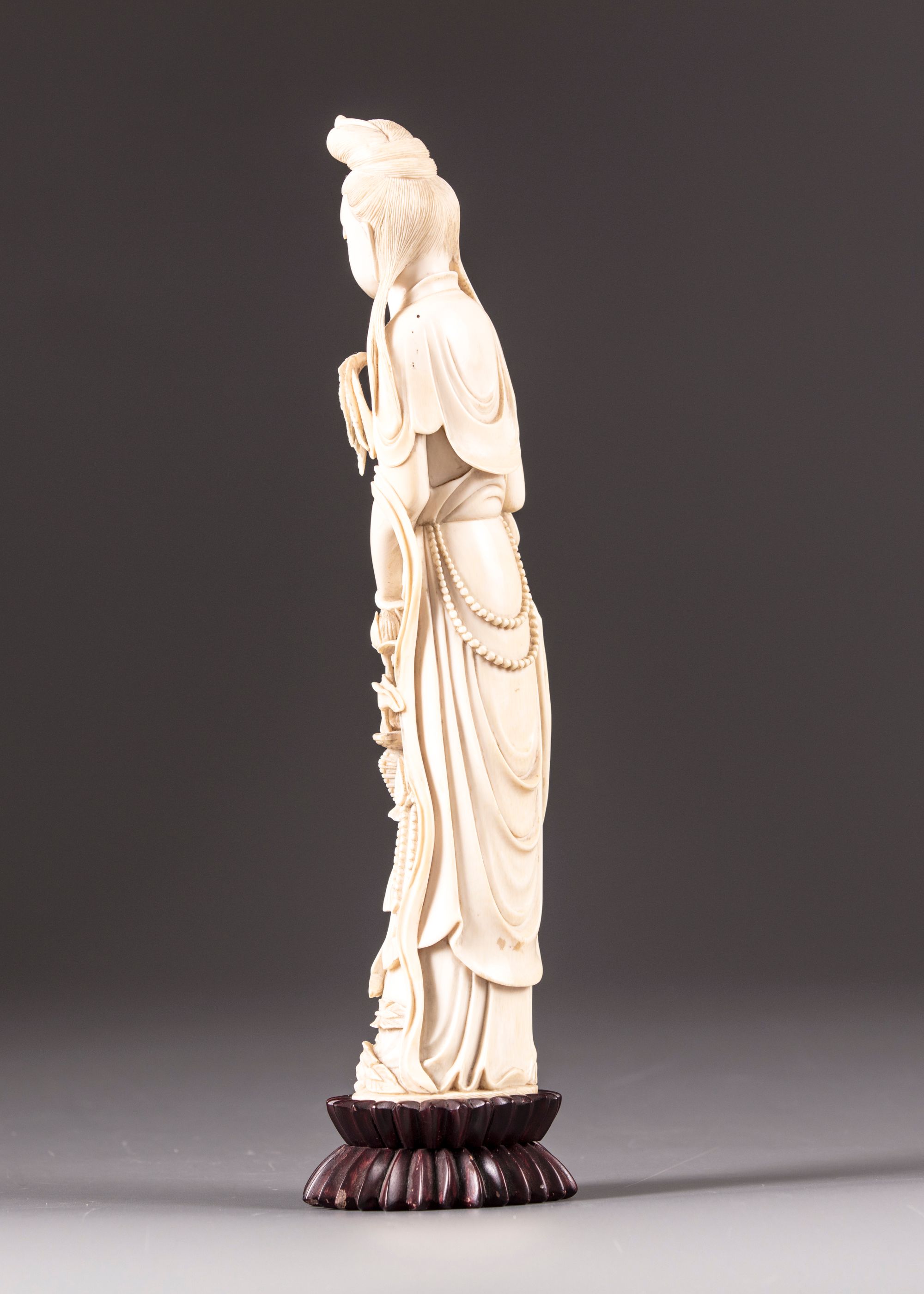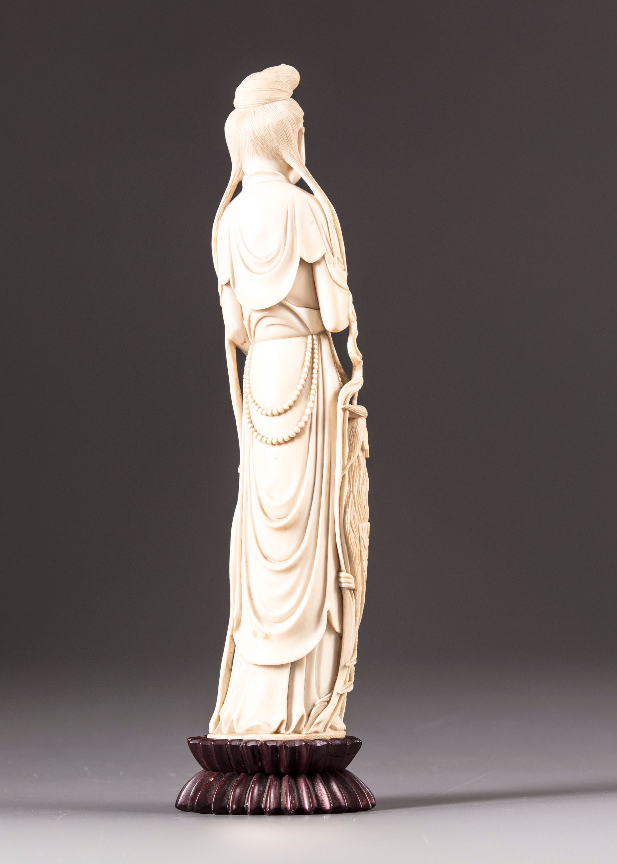 An ivory figure of a lady holding phoenix feathers