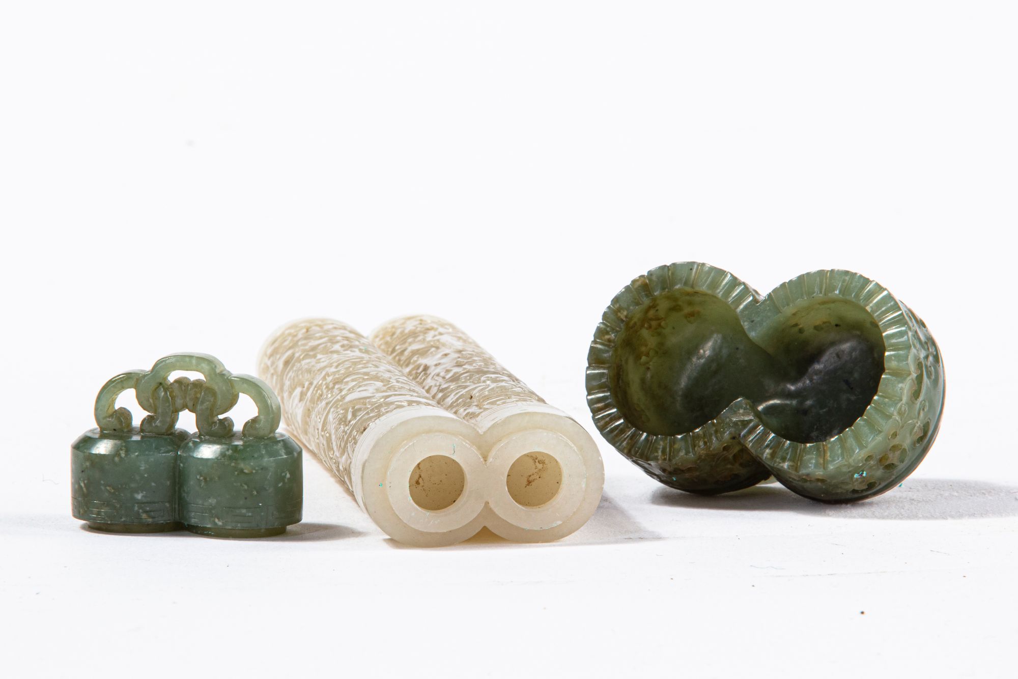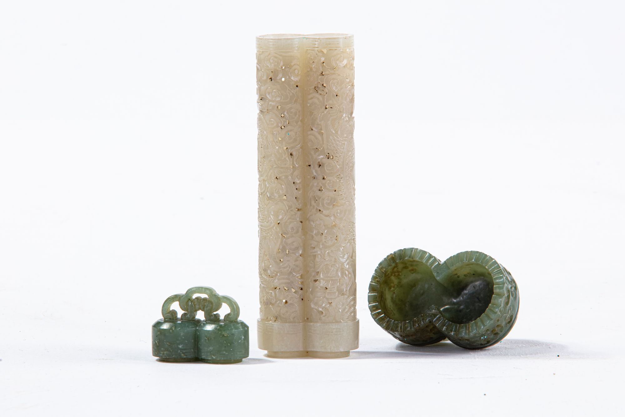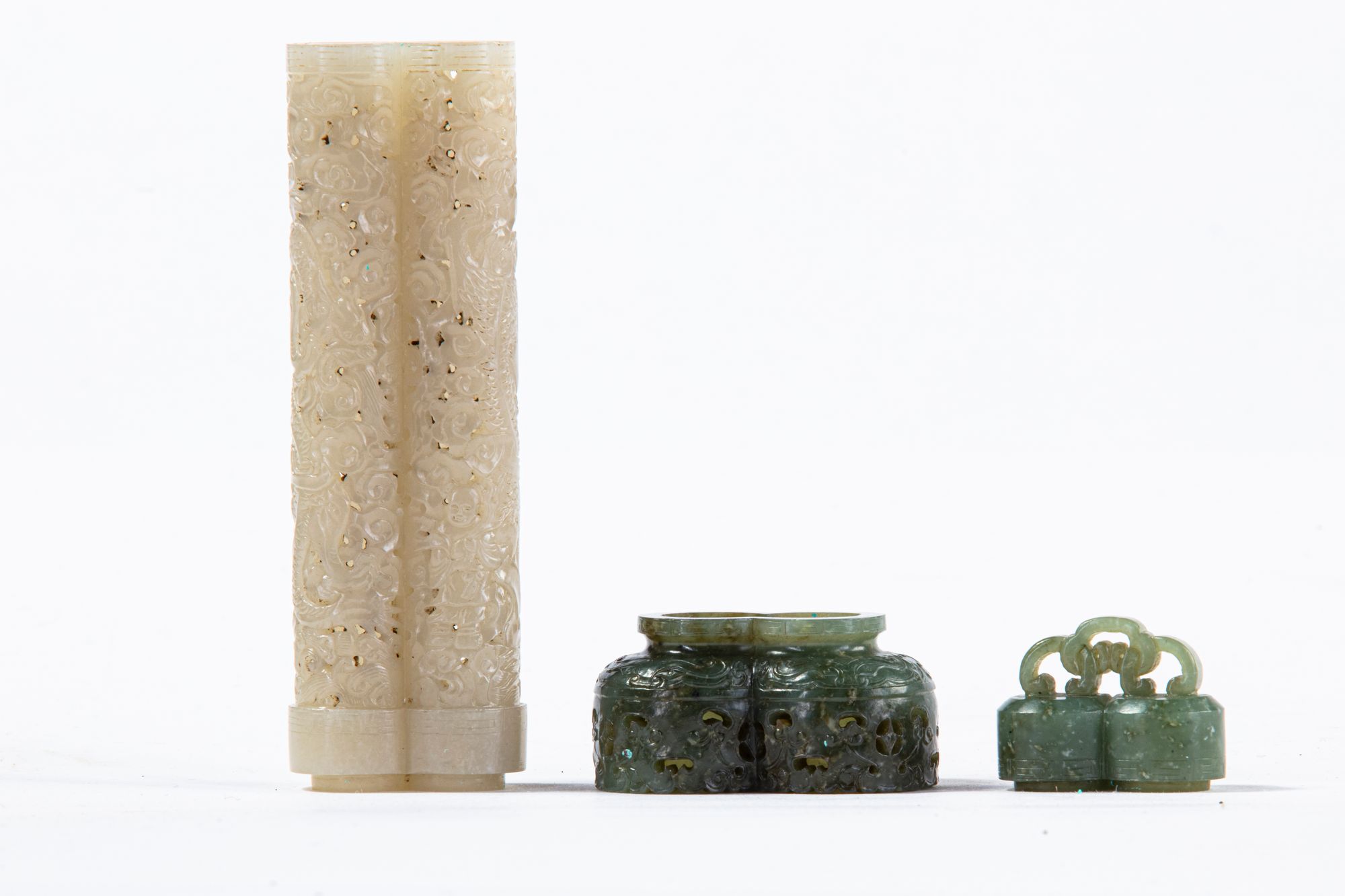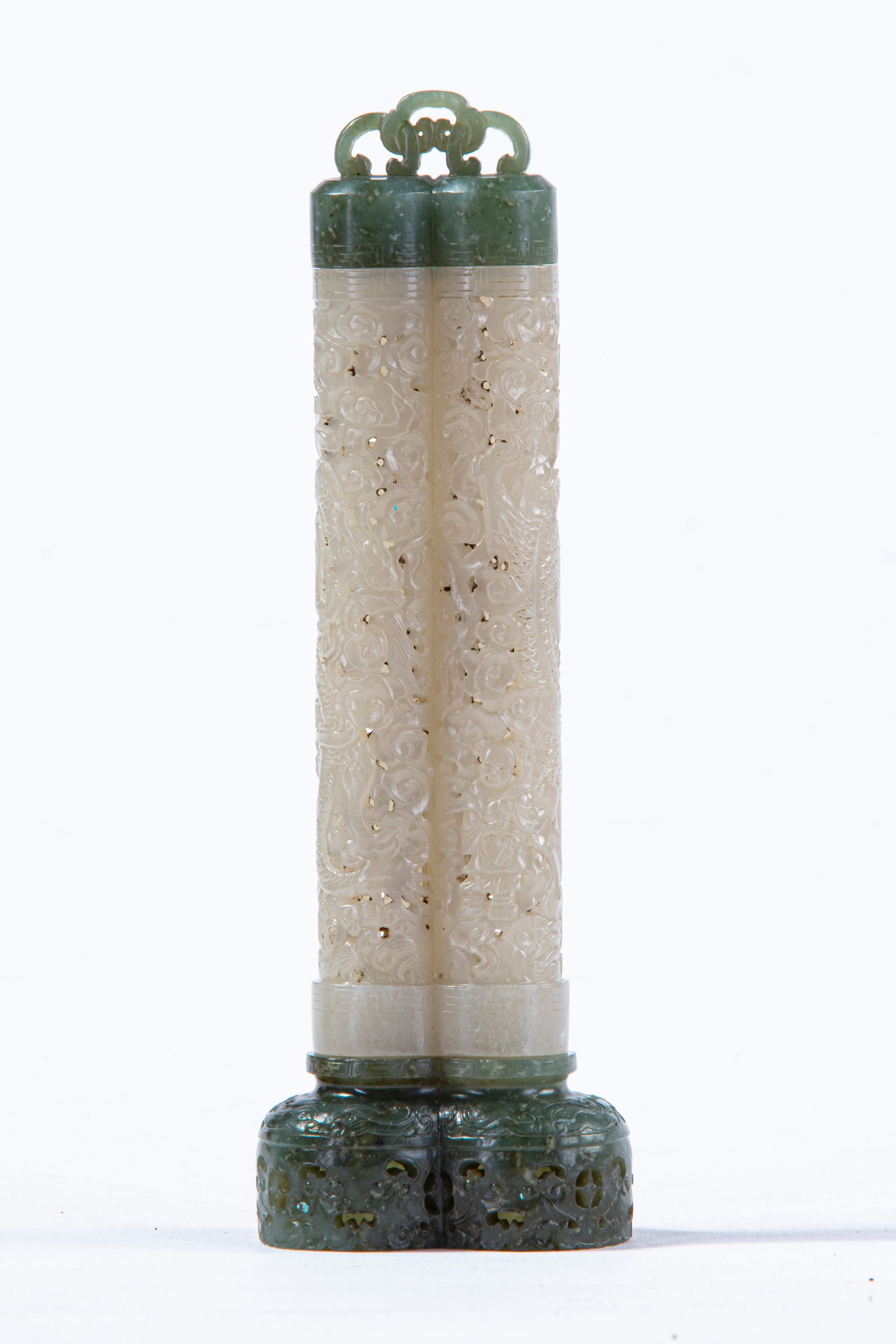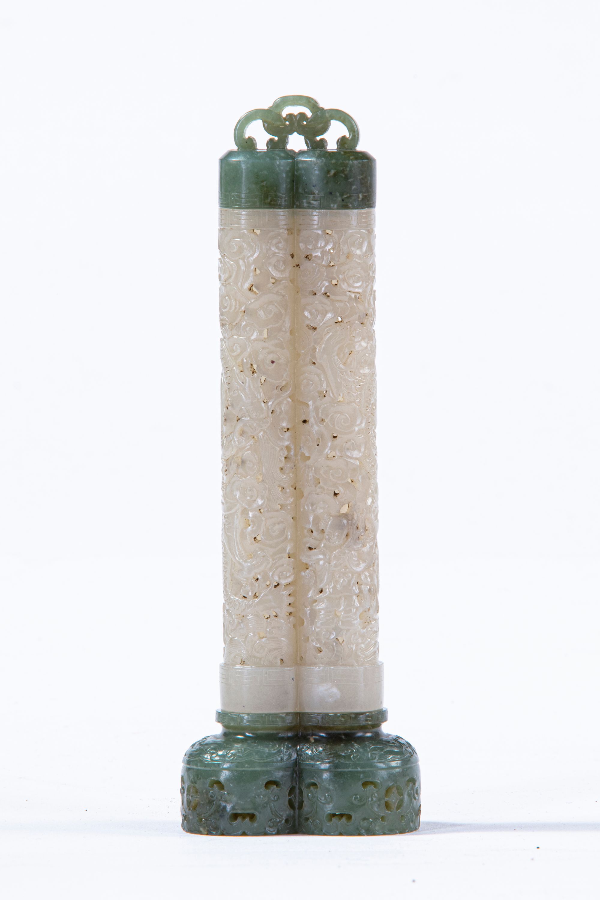 A CHINESE WHITE AND SPINACH GREEN JADE PARFUMIER, CHINA, 19TH-20TH CENTURY
