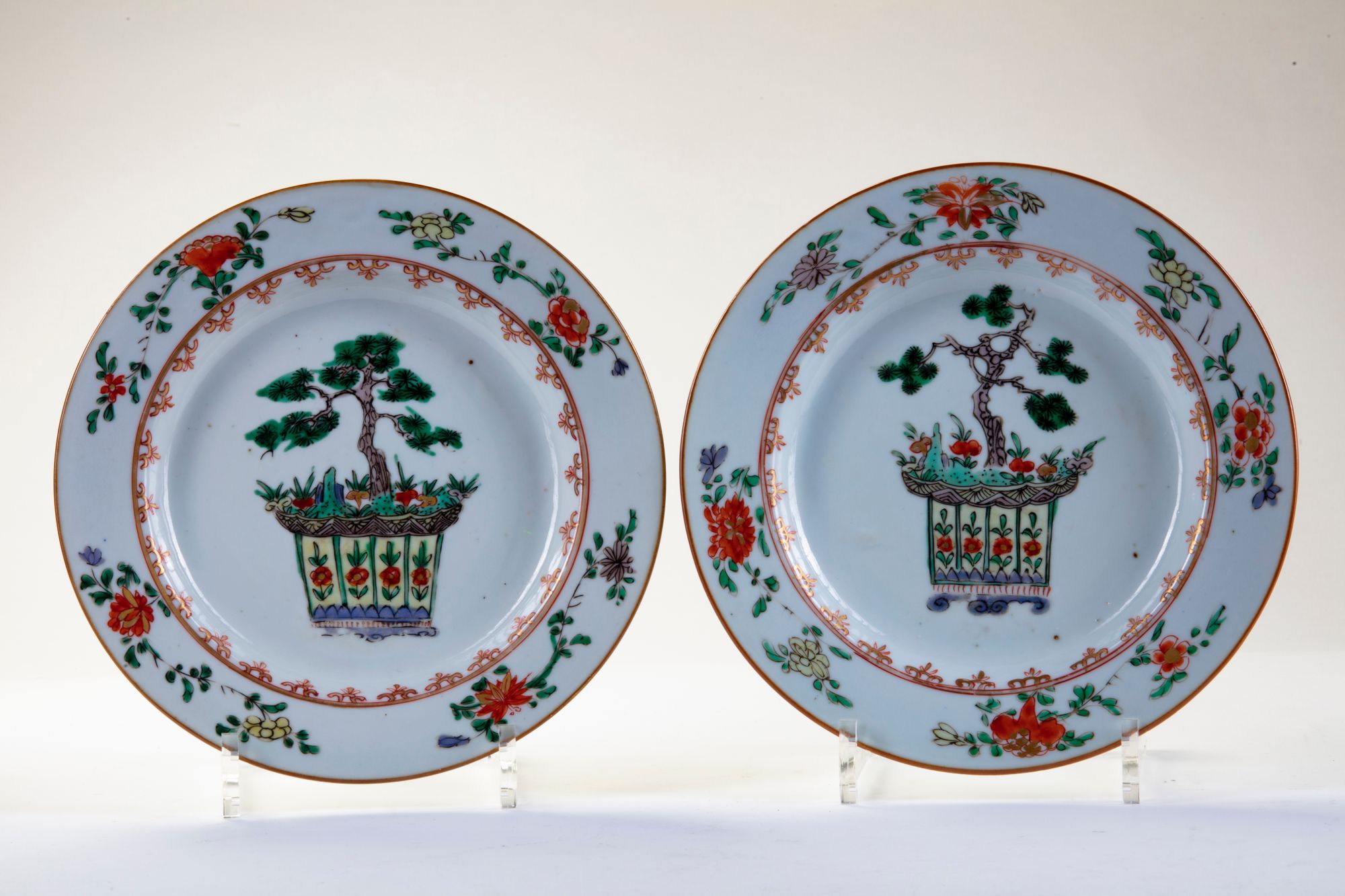 Decorated to the centre with a basket with a pine branch and flowers. The rim with flower sprigs. 22 cm high.