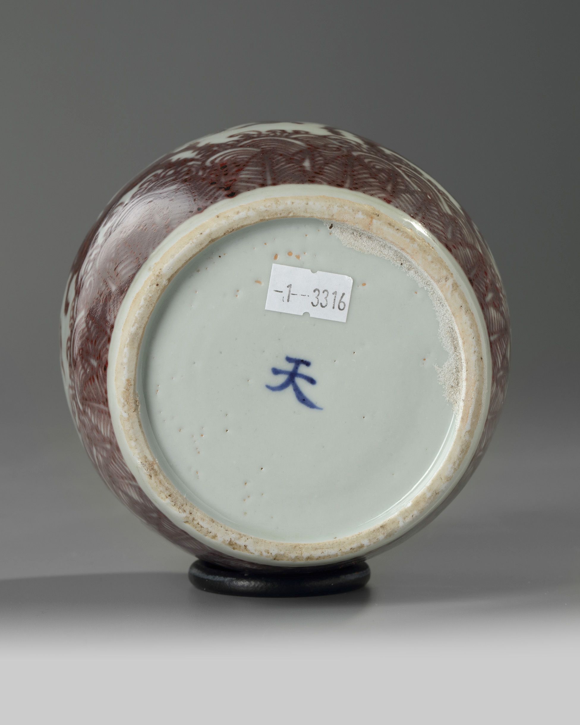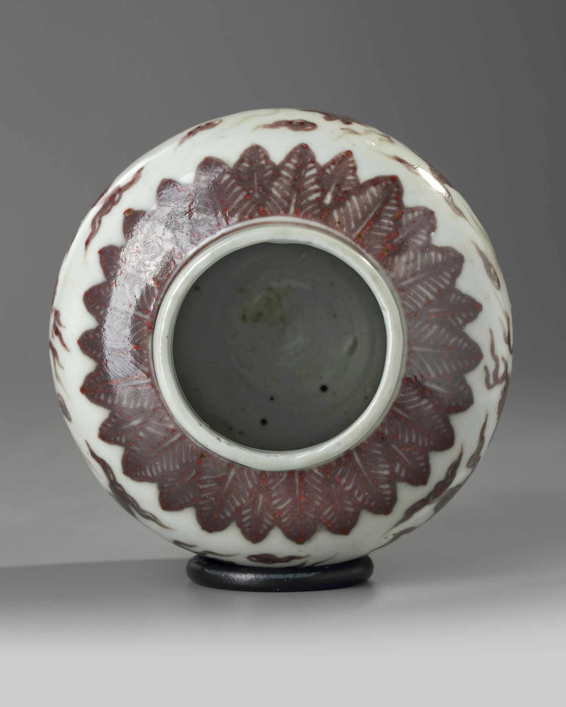 A Chinese underglaze copper-red-decorated 'sea horses' jarlet