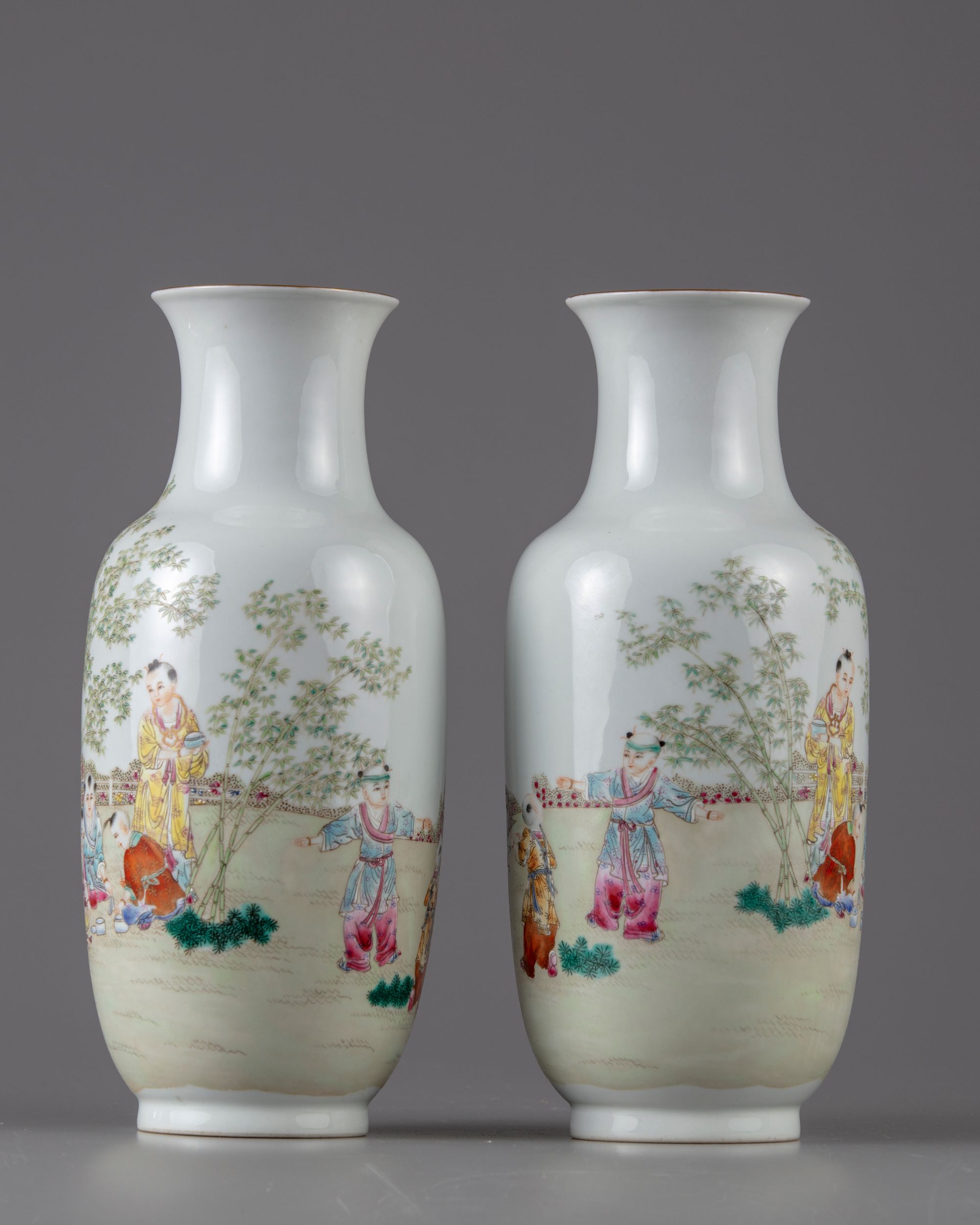 A PAIR OF CHINESE FAMILLE ROSE 'BOYS' VASES, 19TH-20TH CENTURY
