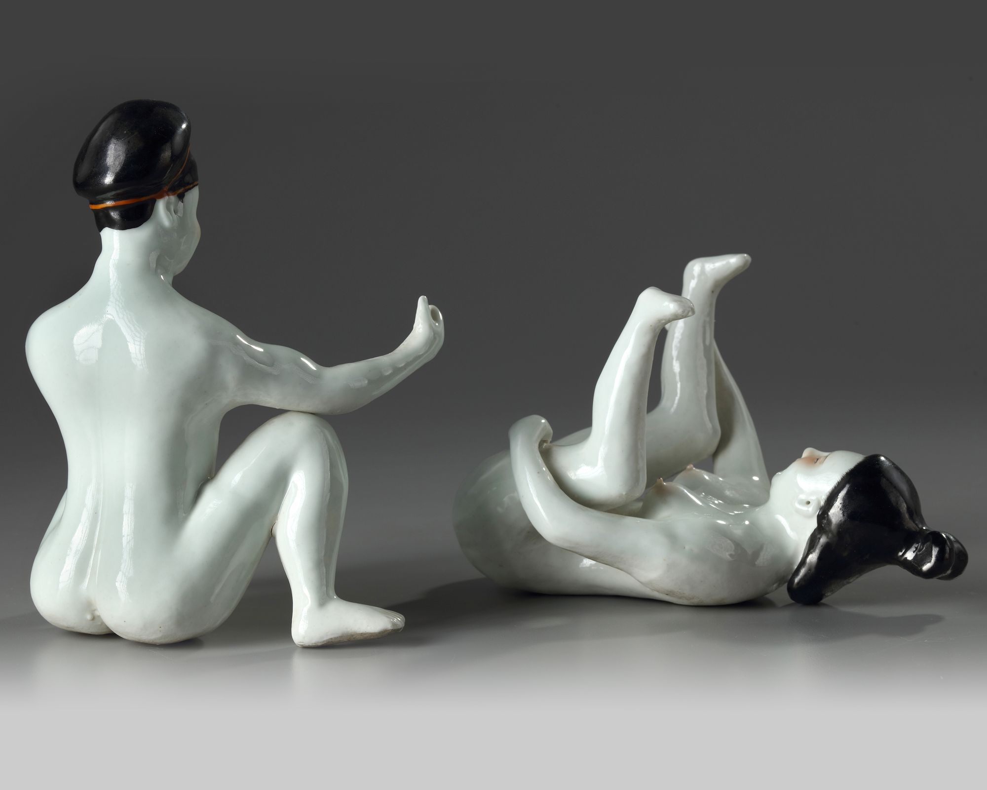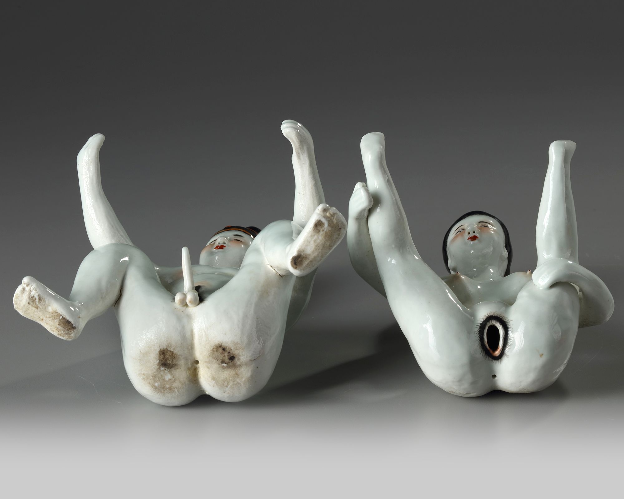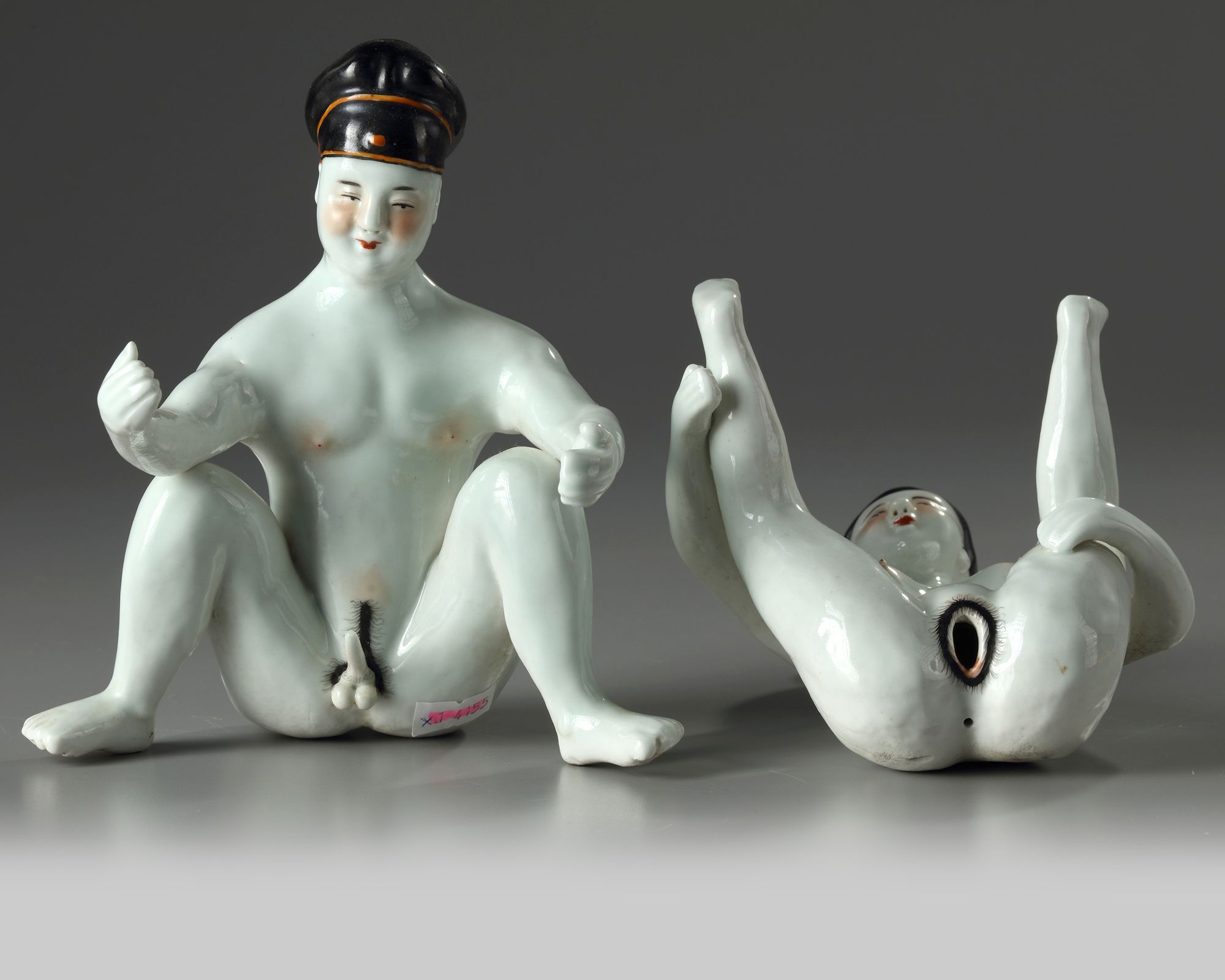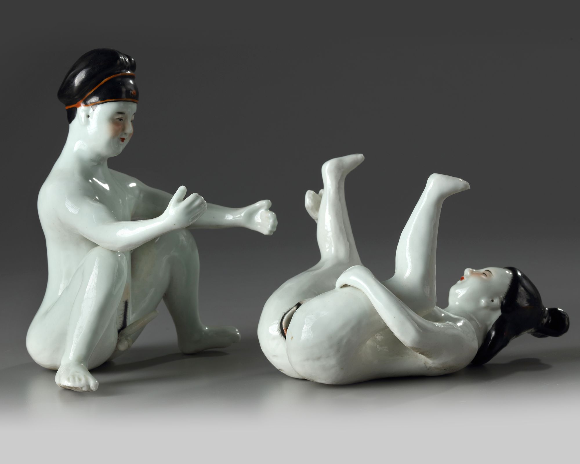 The lot comprises of two interlocking figures of a naked man and woman in an amorous pursuit.