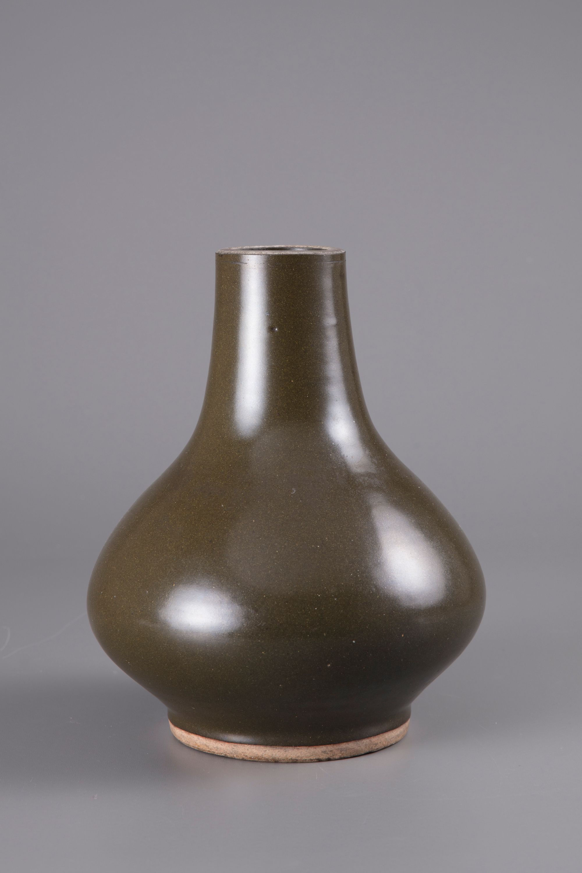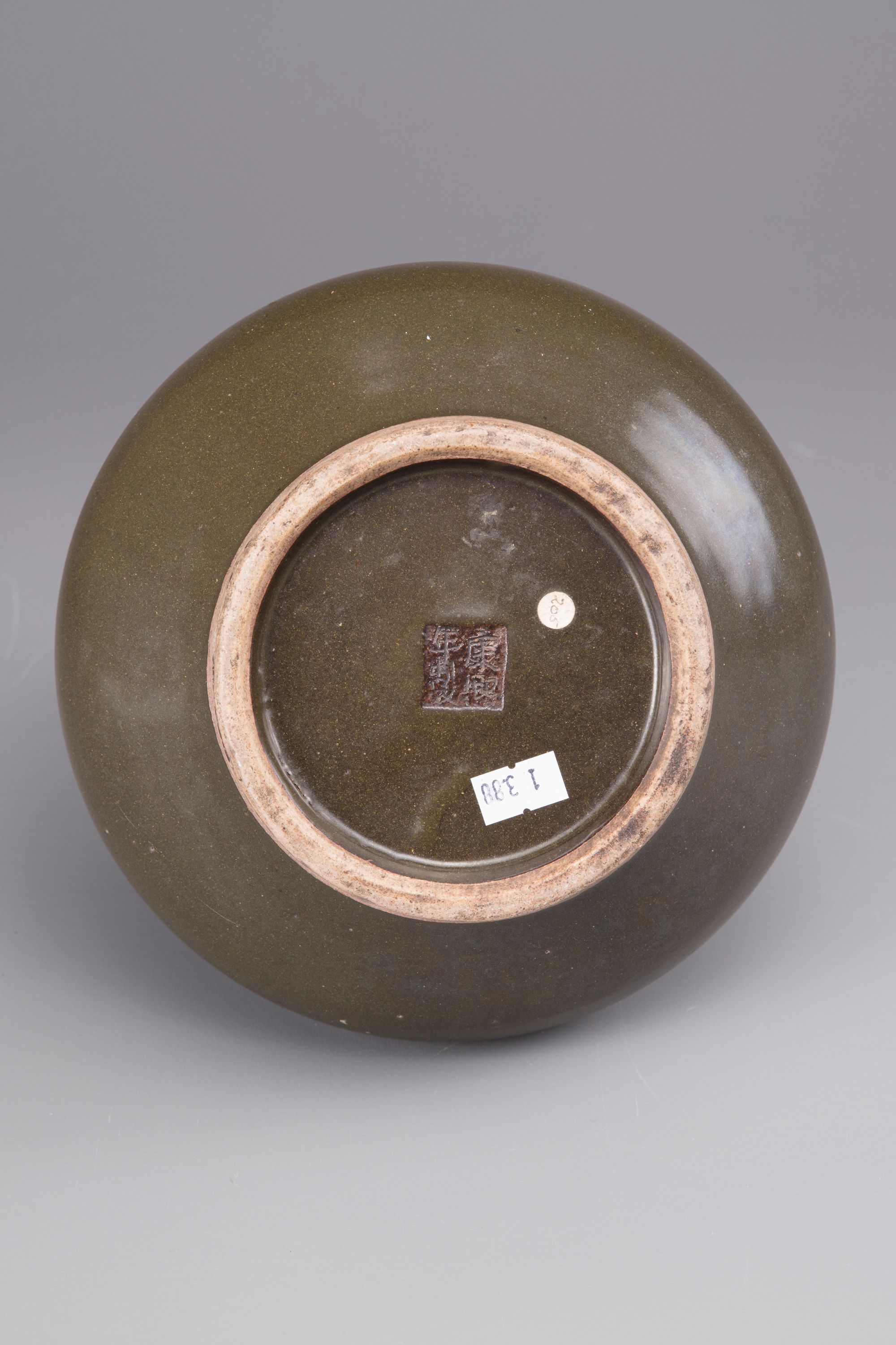 Of compressed globular form and decorated overall with a dark green tea-dust glaze.