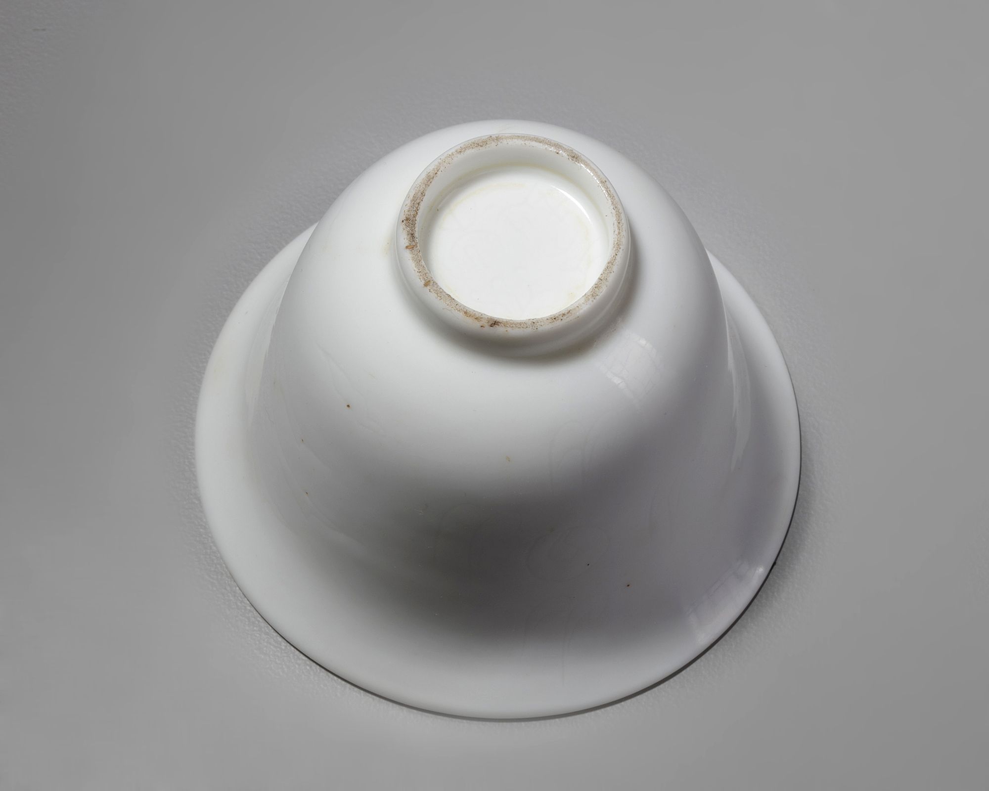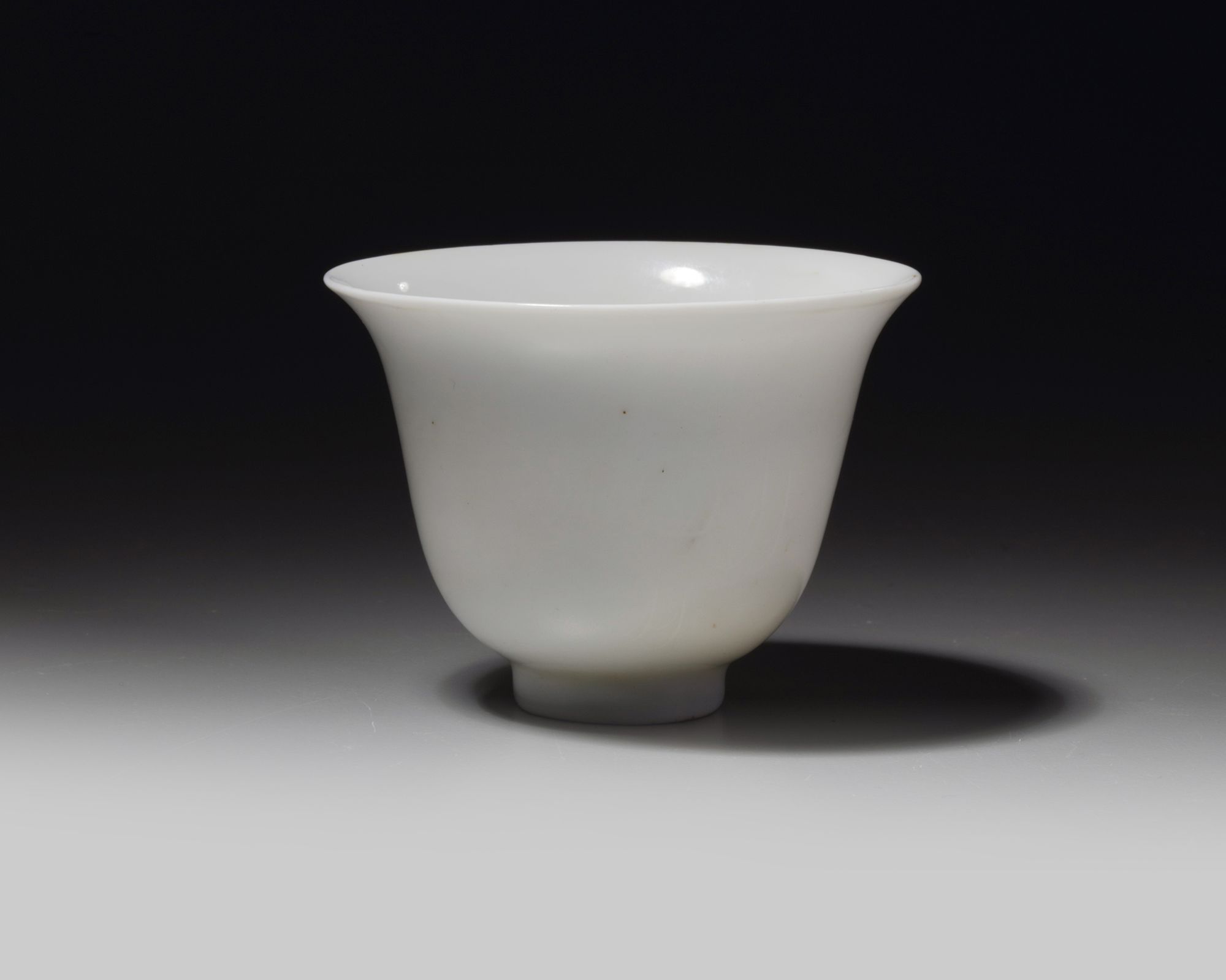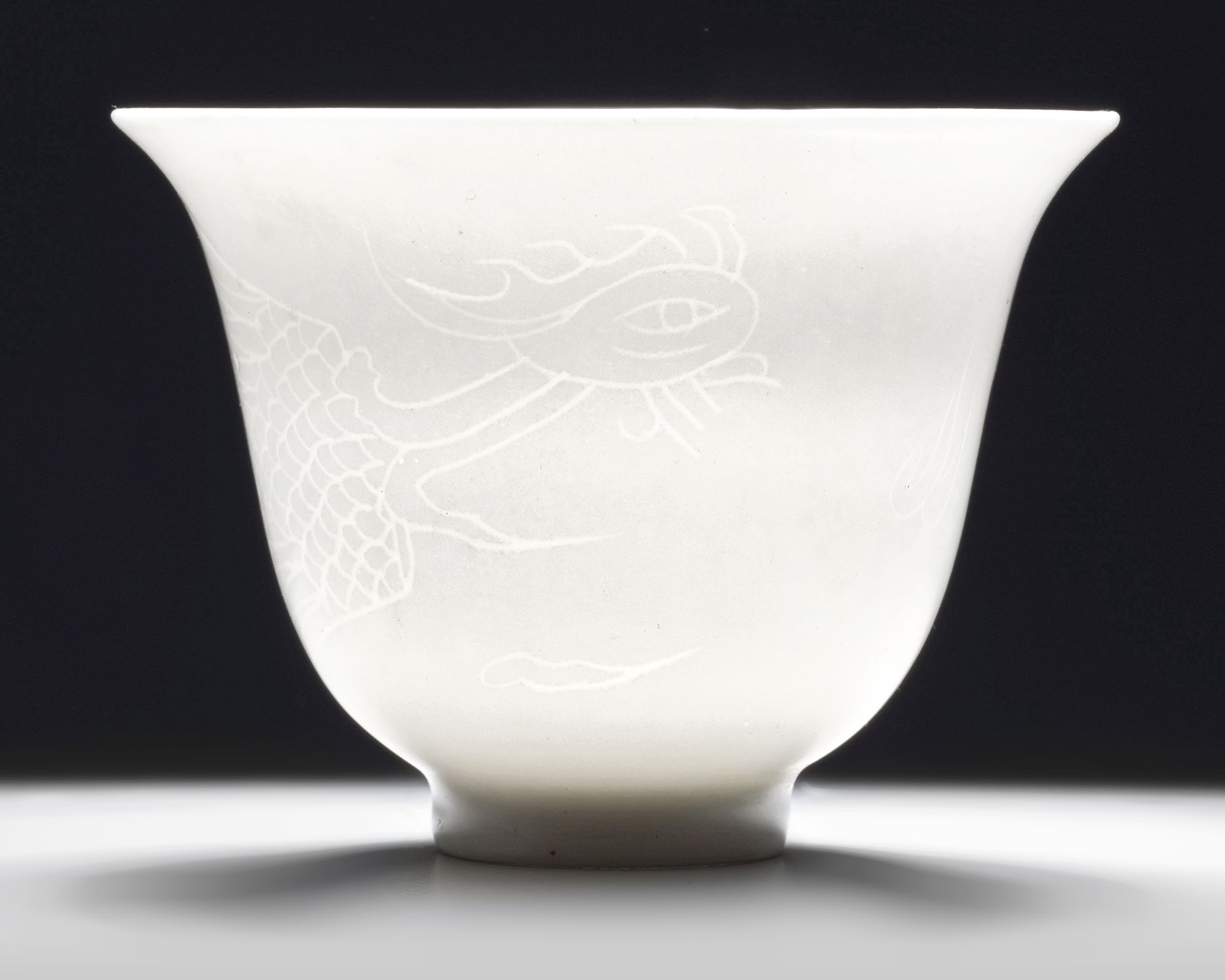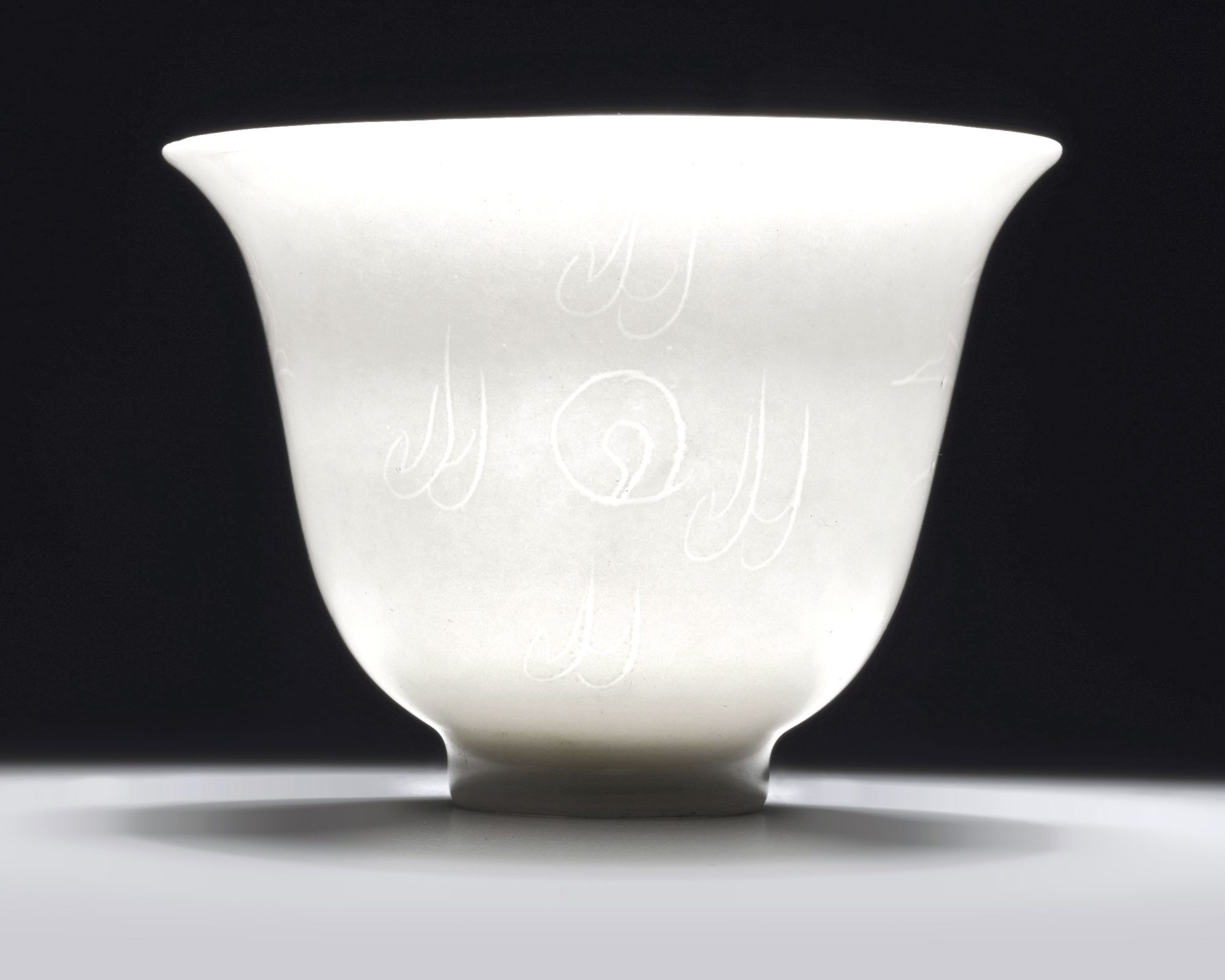 The walls of the cup are decorated in anhua with a phoenix in flight chasing the flaming pearl, the base with an apocryphal Yongle mark.