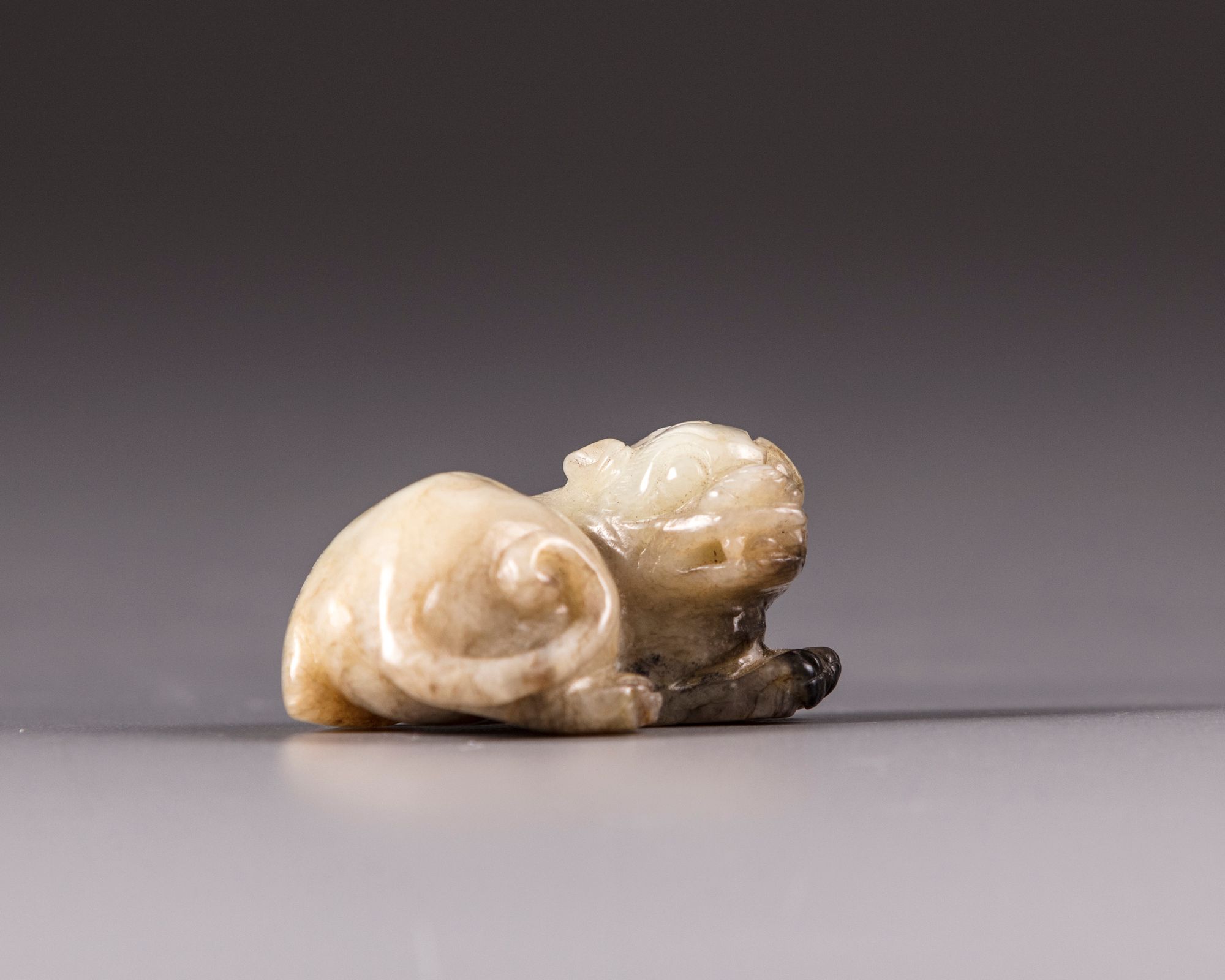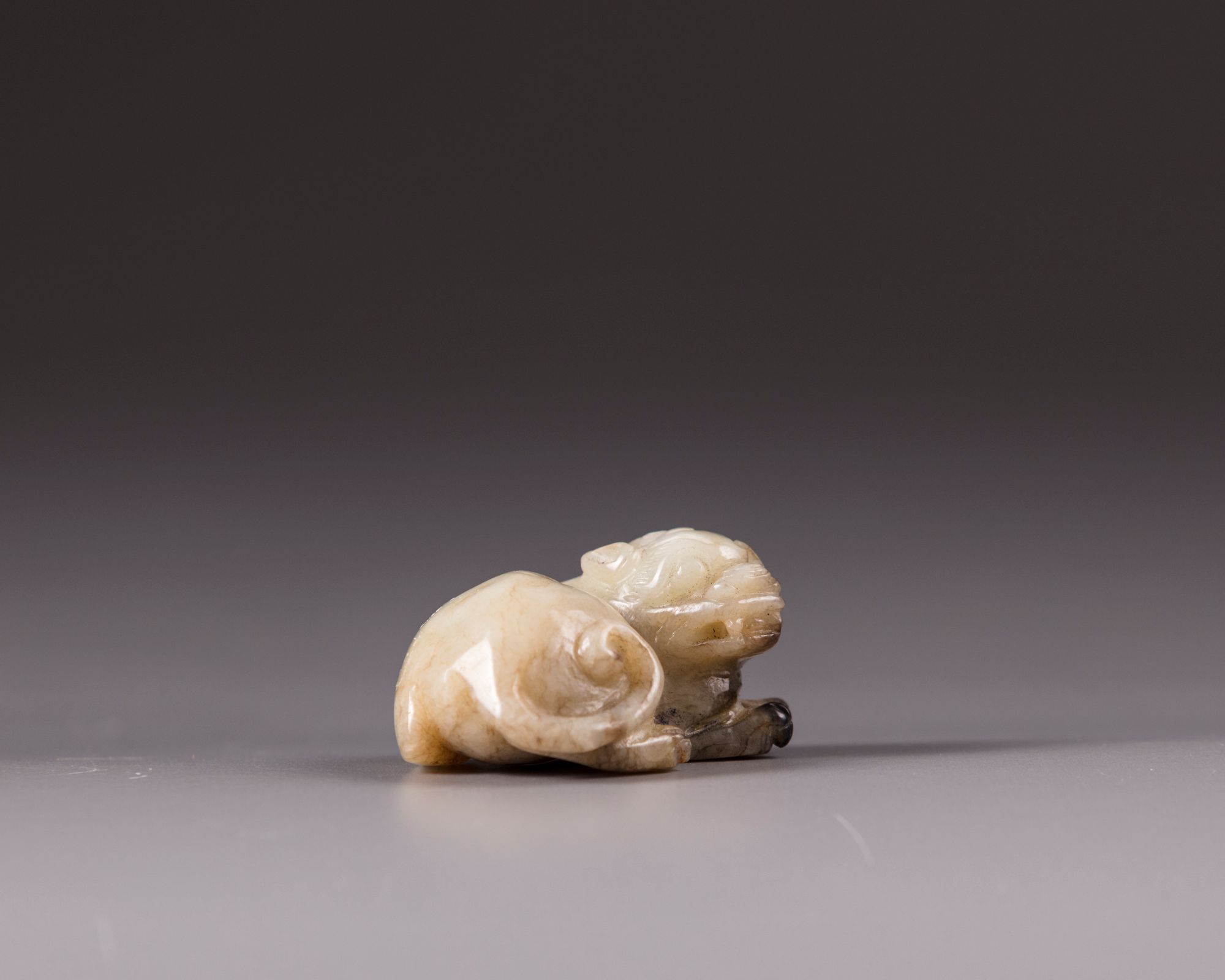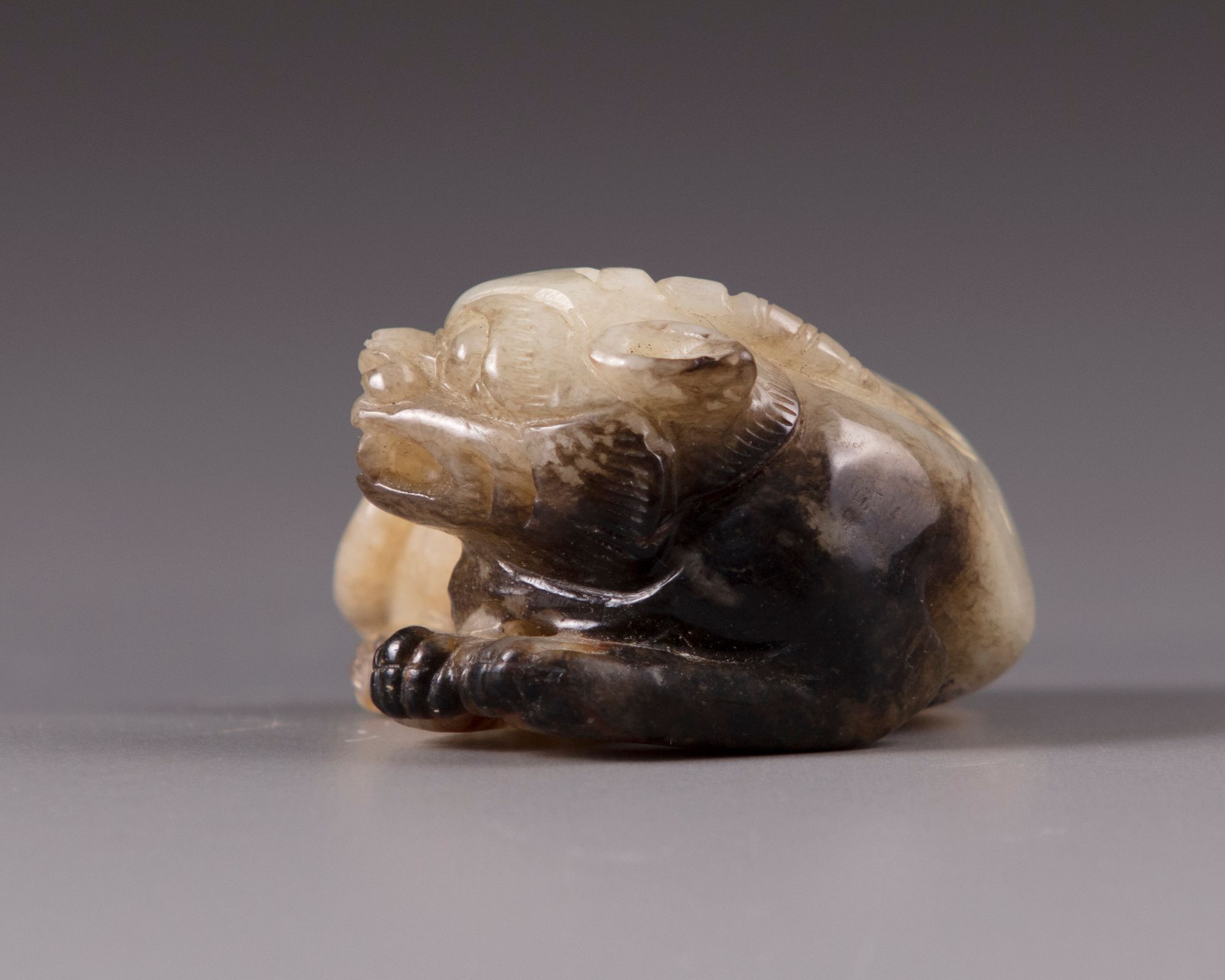 The jade is carved, depicting a seated Qilin.