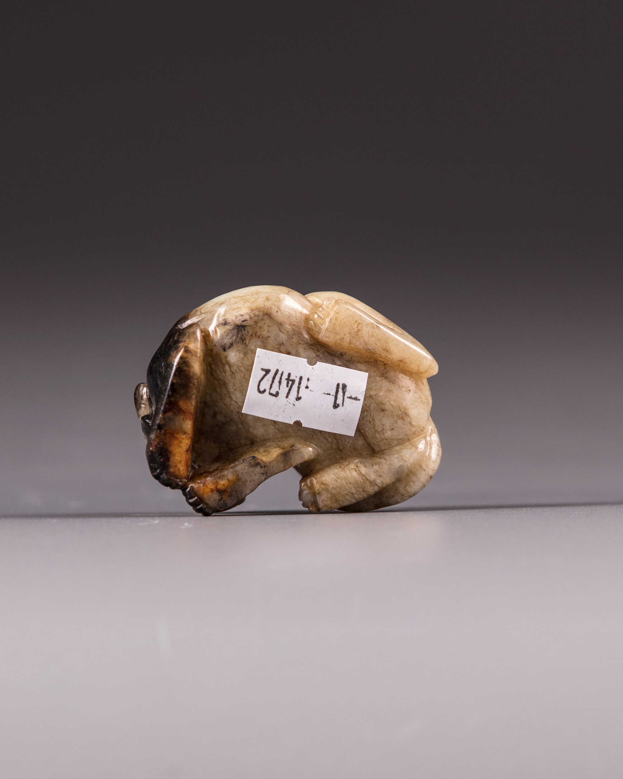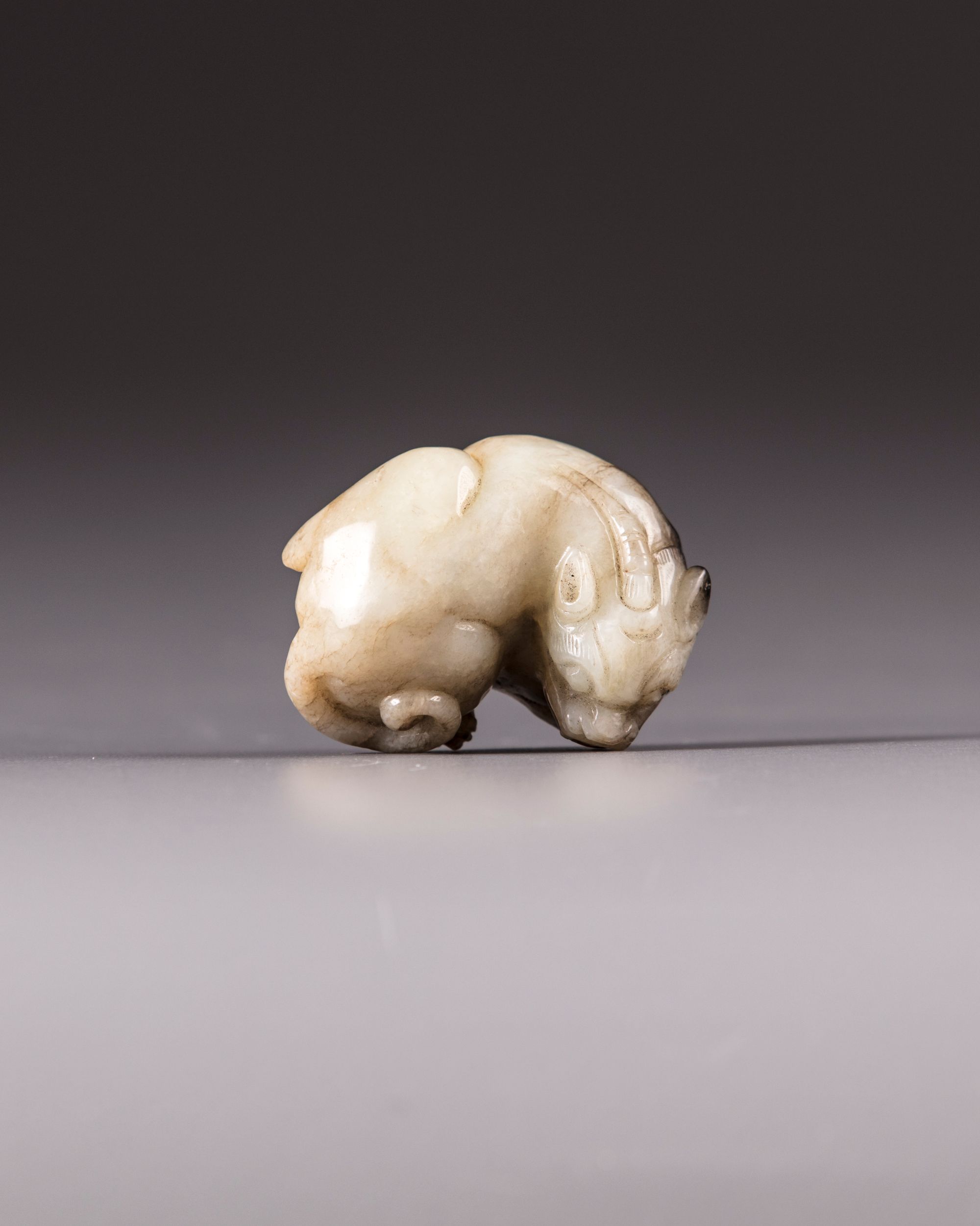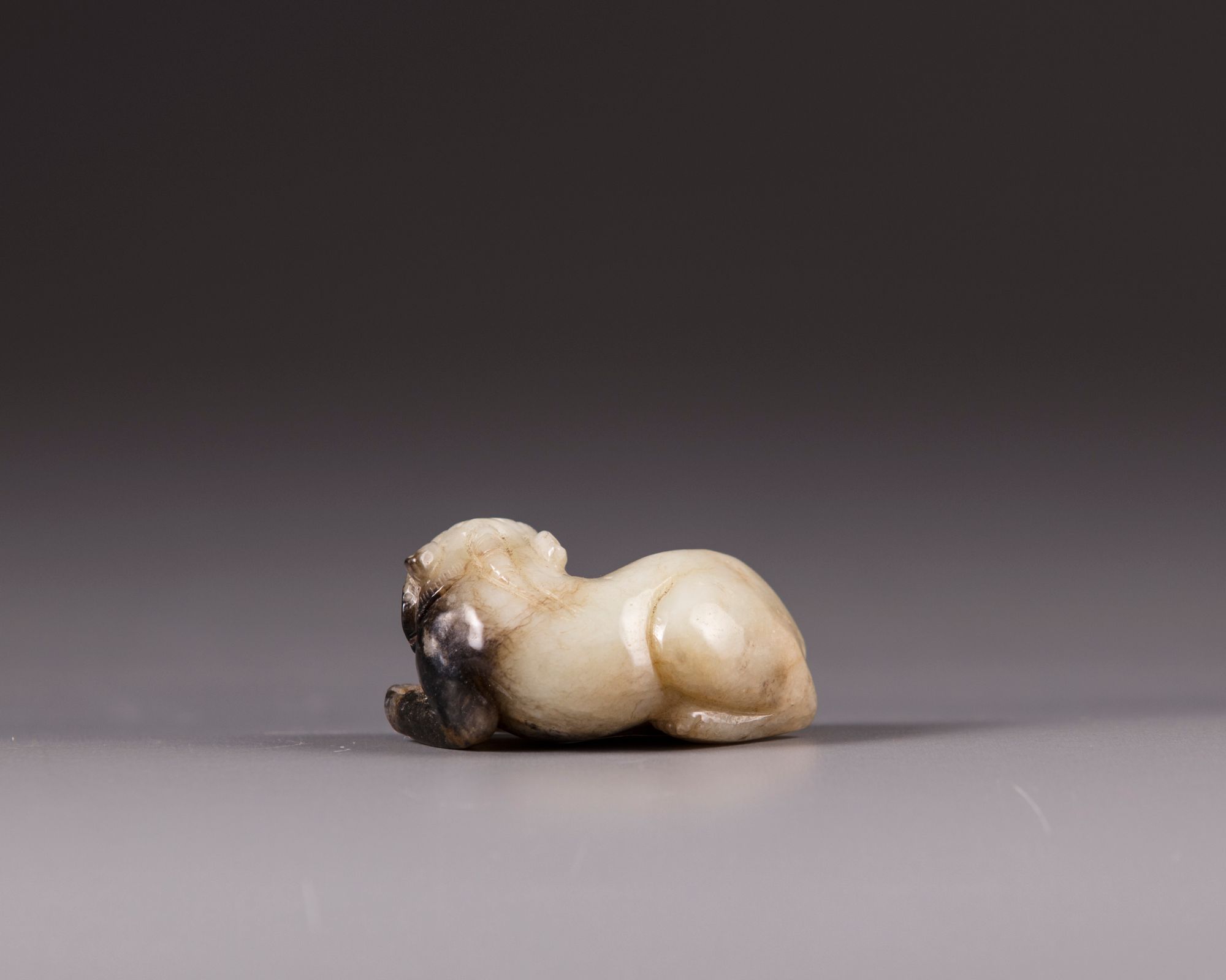 The jade is carved, depicting a seated Qilin.