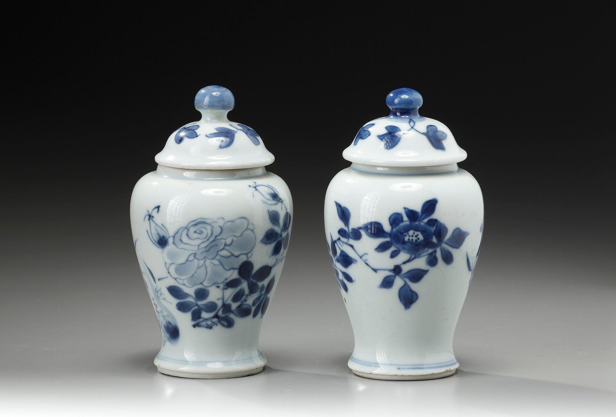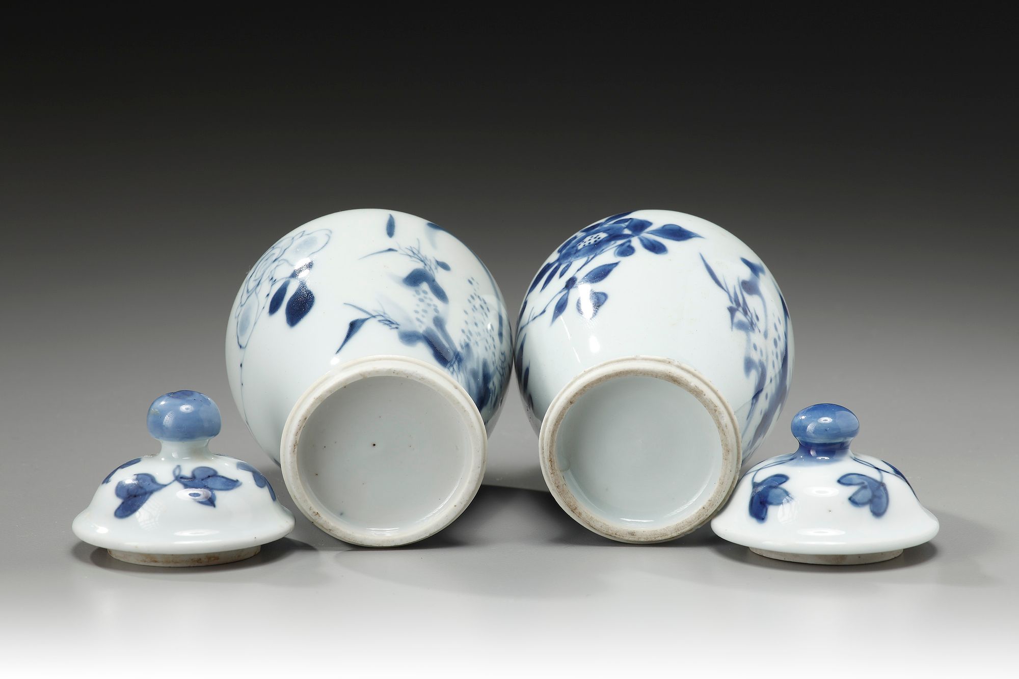 Decorated with flowering branches and rock work in underglaze blue.