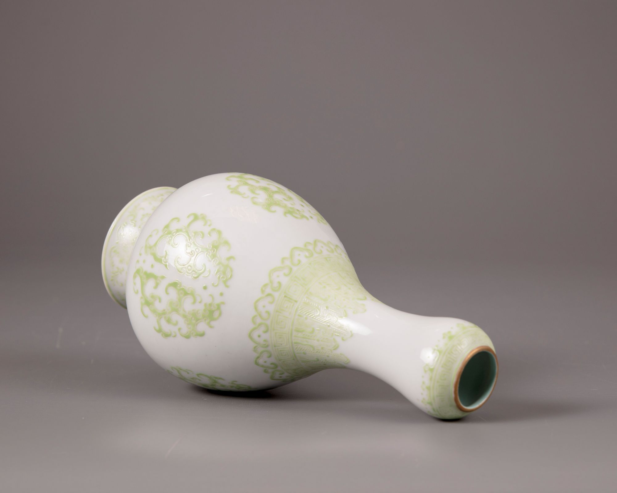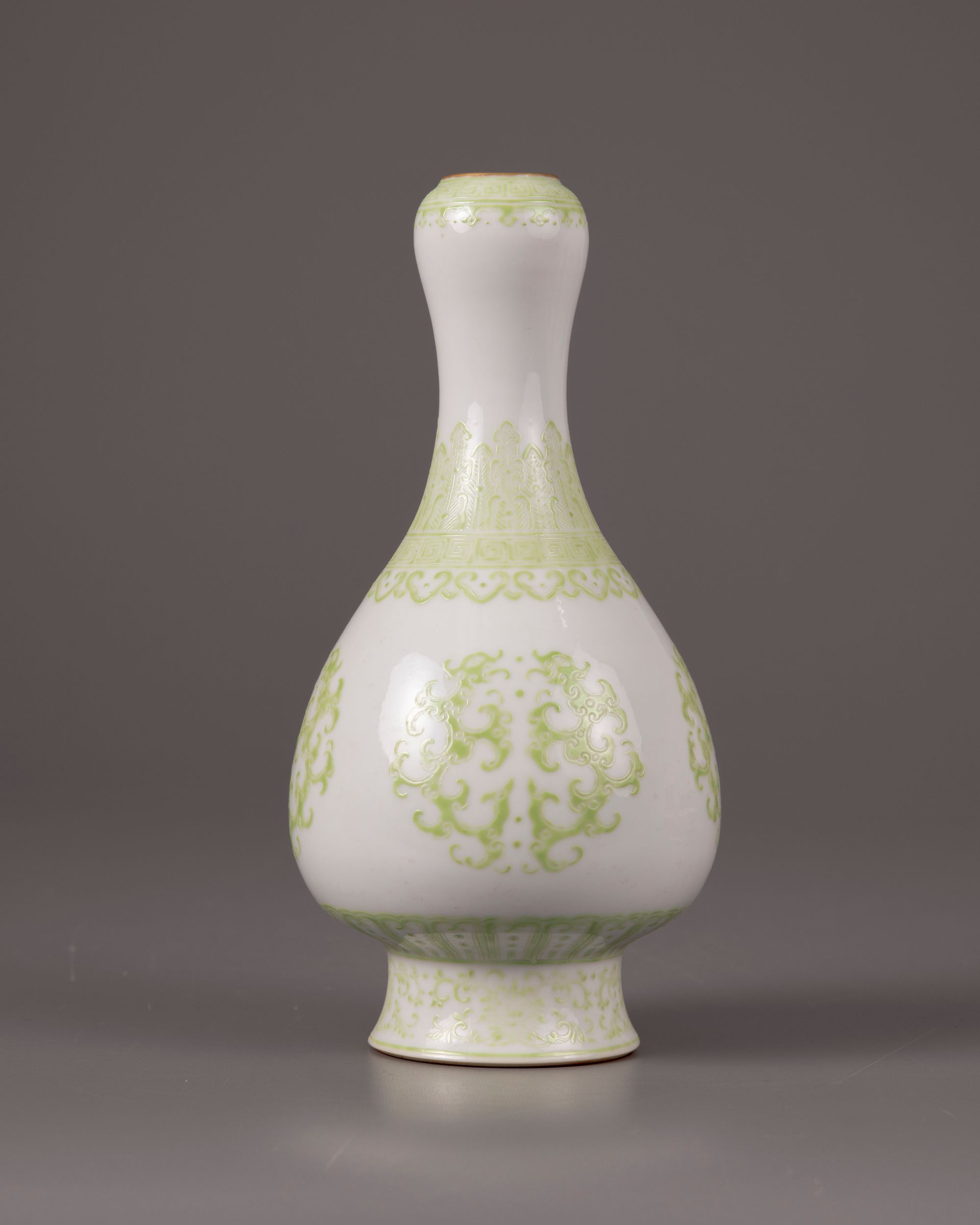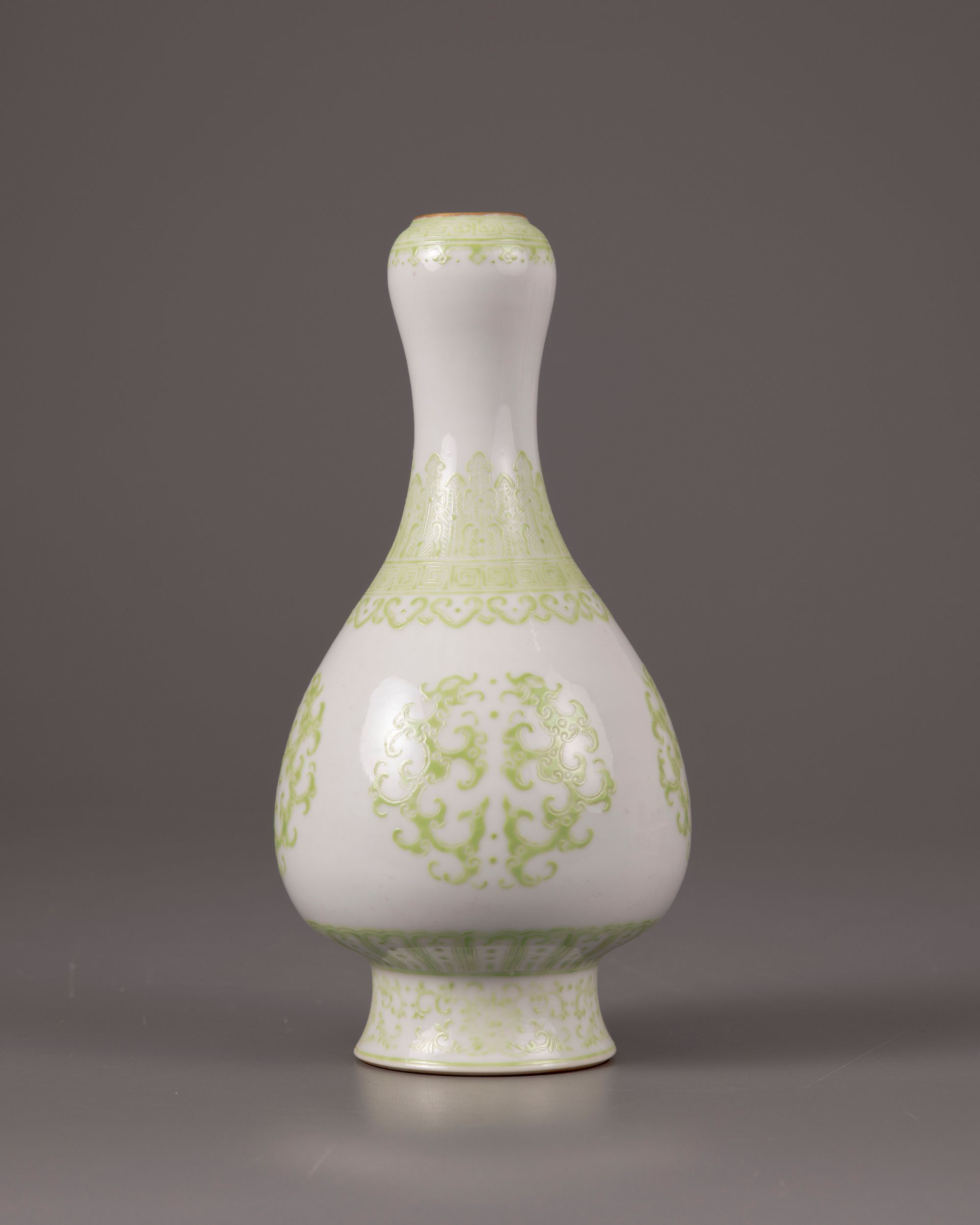 A Chinese lime-green-enamelled 'kui dragons' garlic neck vase