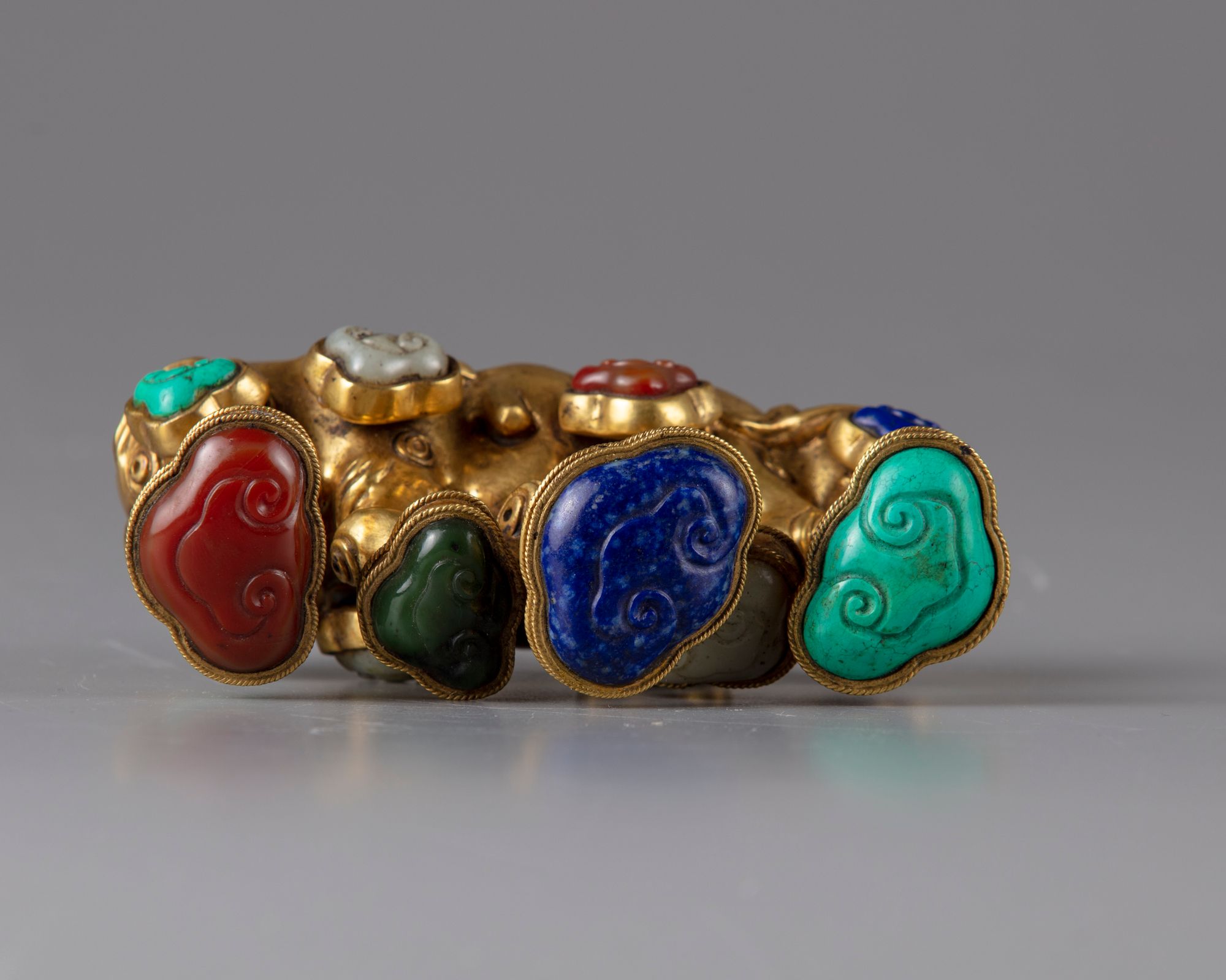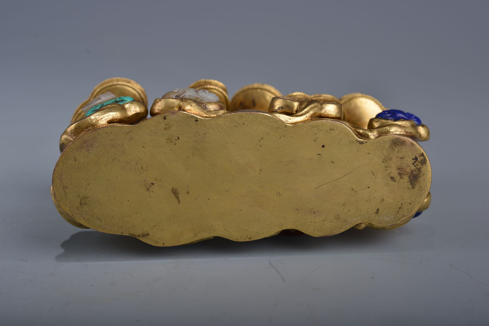 A CHINESE GILT BRONZE HARDSTONE INLAID-BRUSK REST, CHINA, 19TH CENTURY