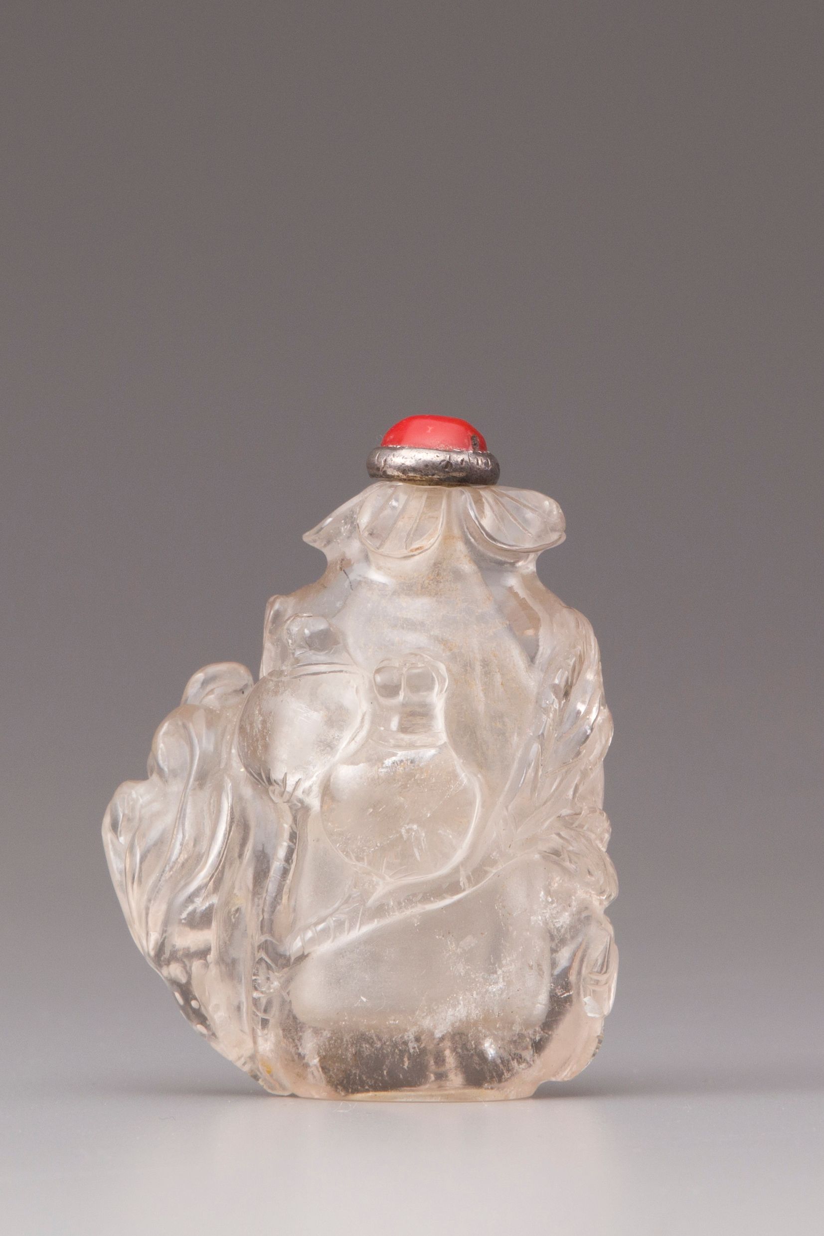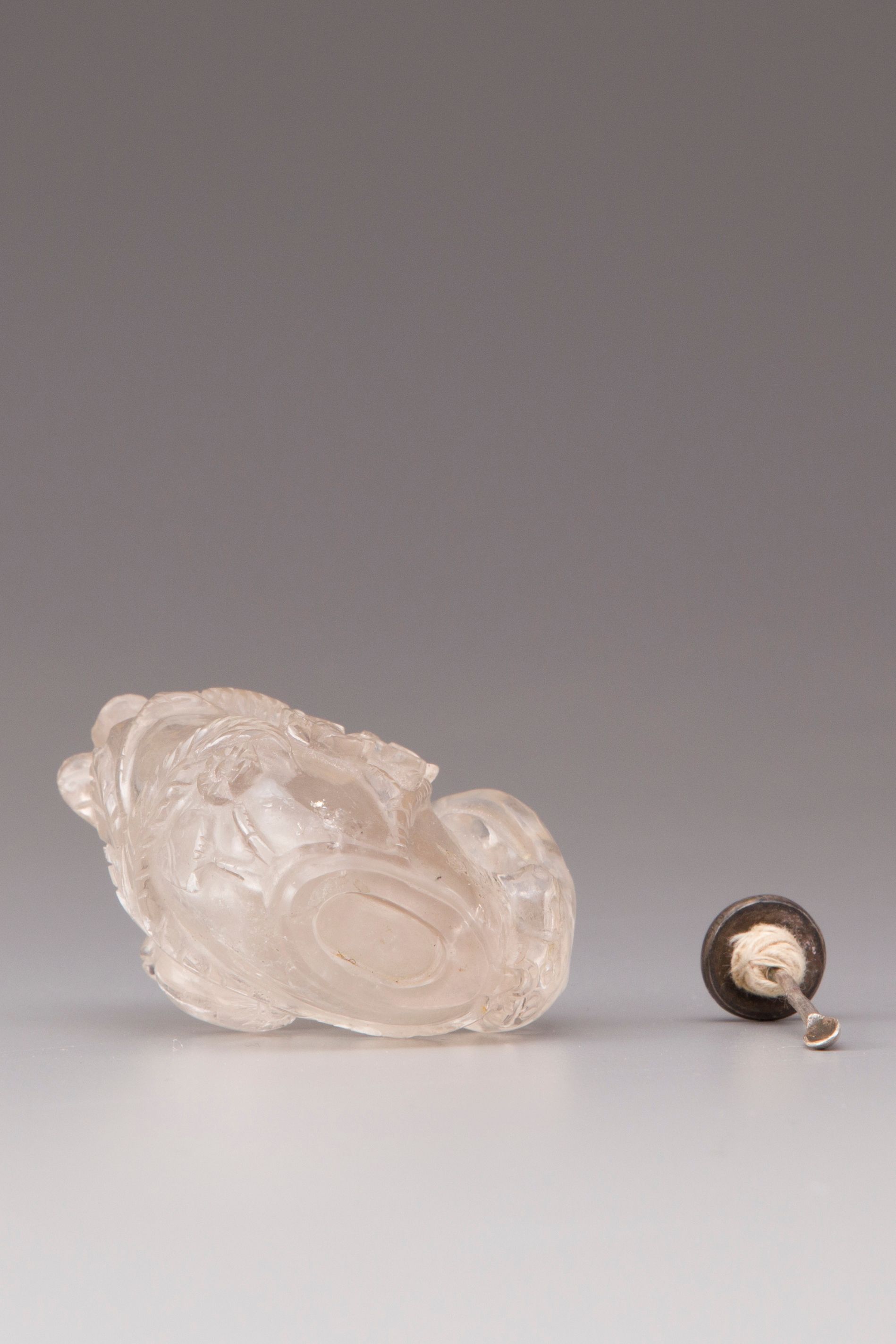 Carved with buddha's hand citron, pomegranate and flowers, with silver stopper set with a blood coral bead.