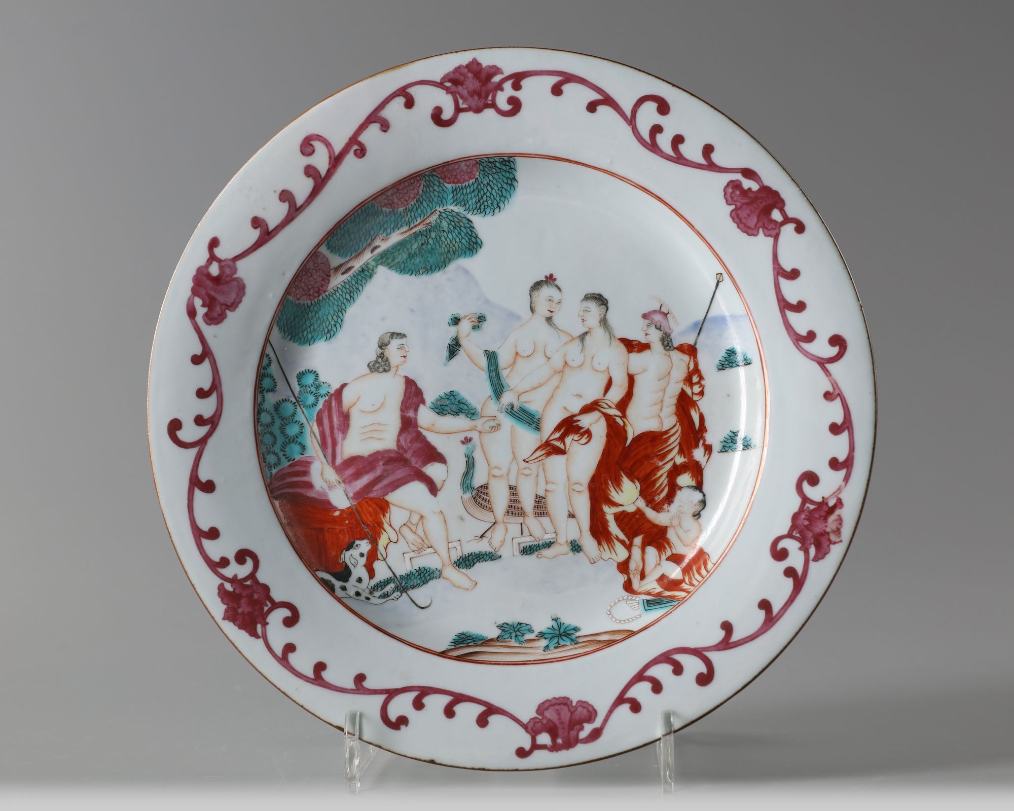 A Chinese famille rose ‘The Judgement of Paris’ dish