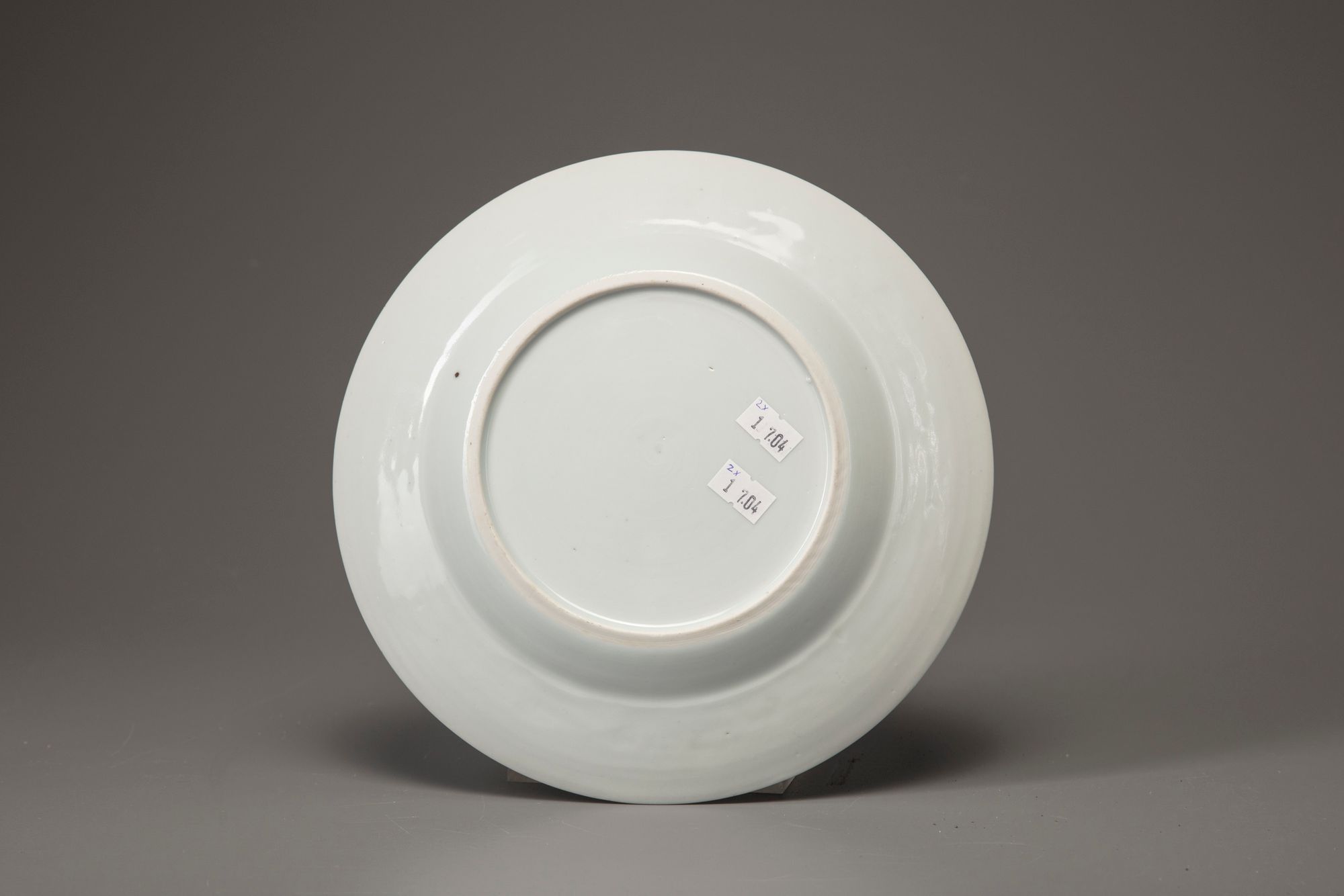 A blue and white charger and a blue and white dish