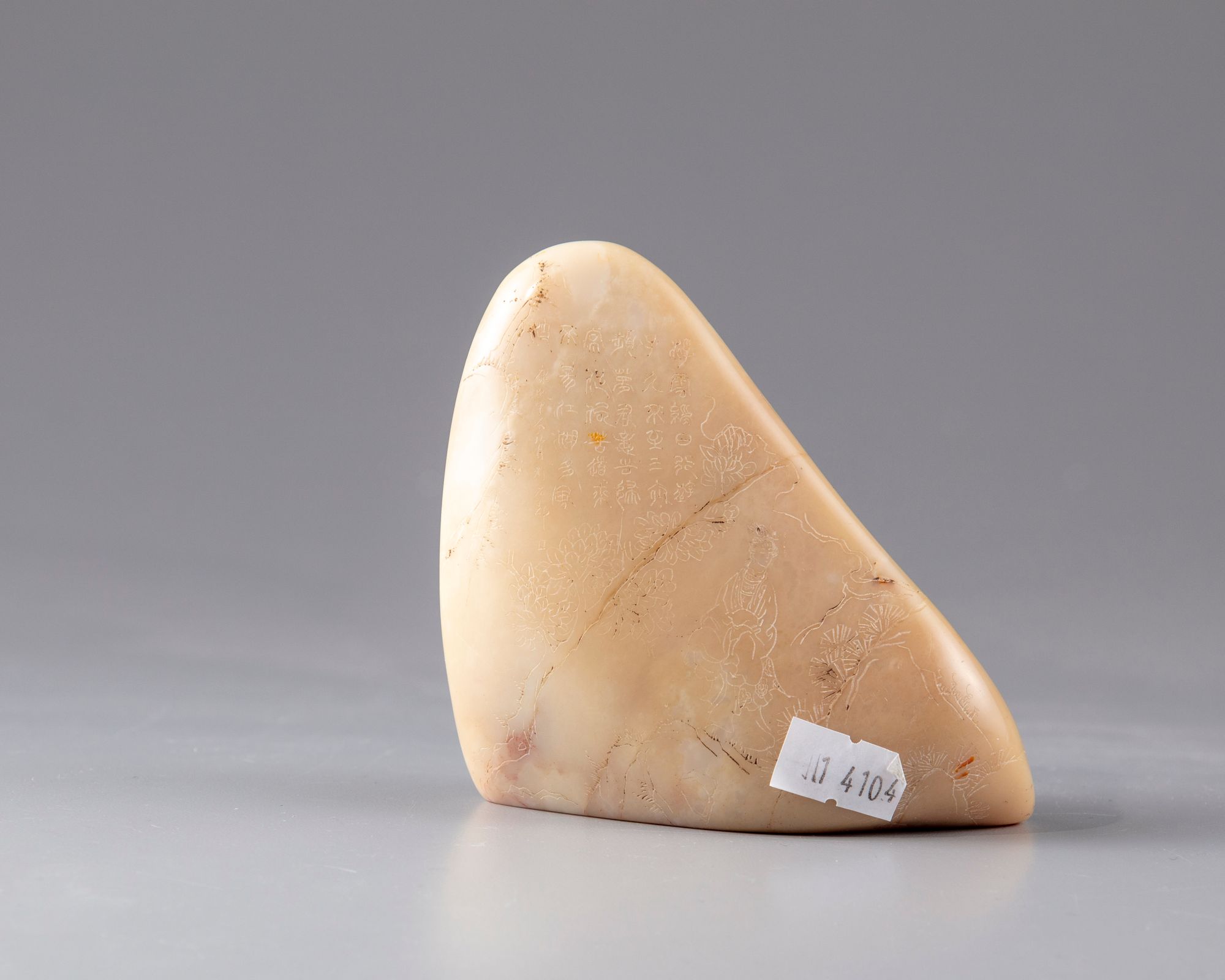 The sides are lightly carved with a lady seated under a tree branch with a "Chinese poem", further with standing figures.