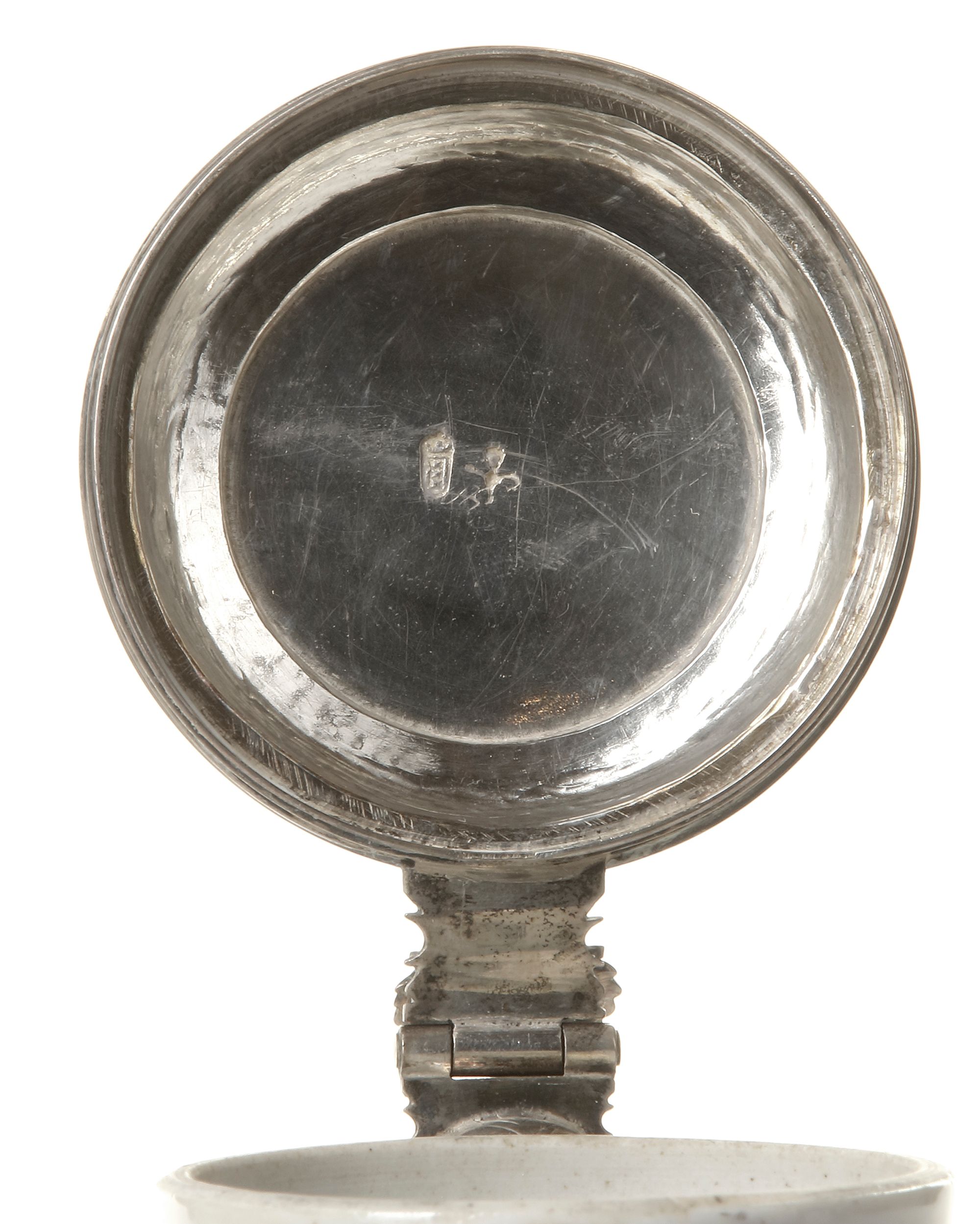 An identical milk jug, but with a porcelain silver mounted cover is in the Rijksmuseum collection, Amsterdam.