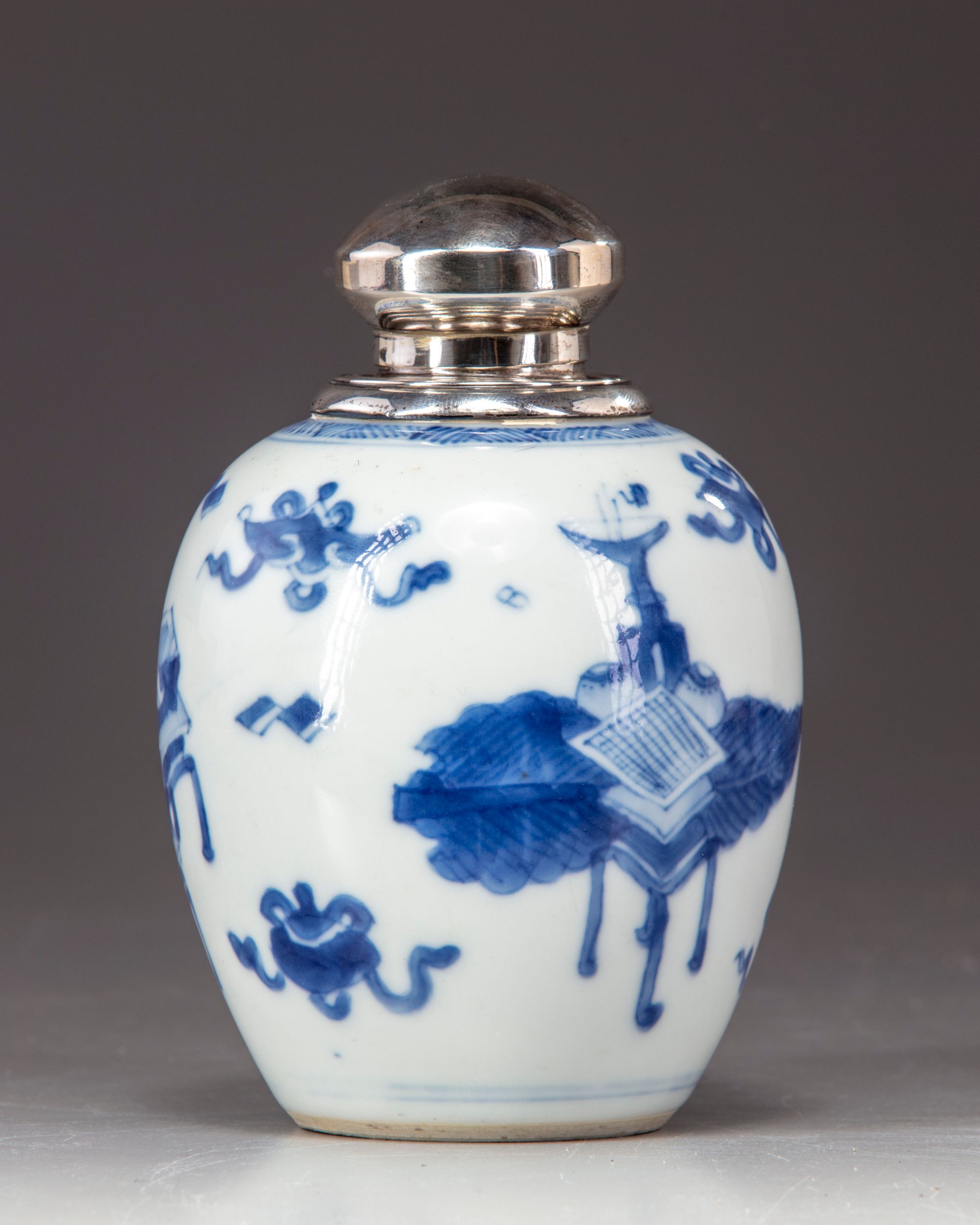 A small Chinese porcelain jar, decorated with precious objects " censer, vases, tables and boxes.