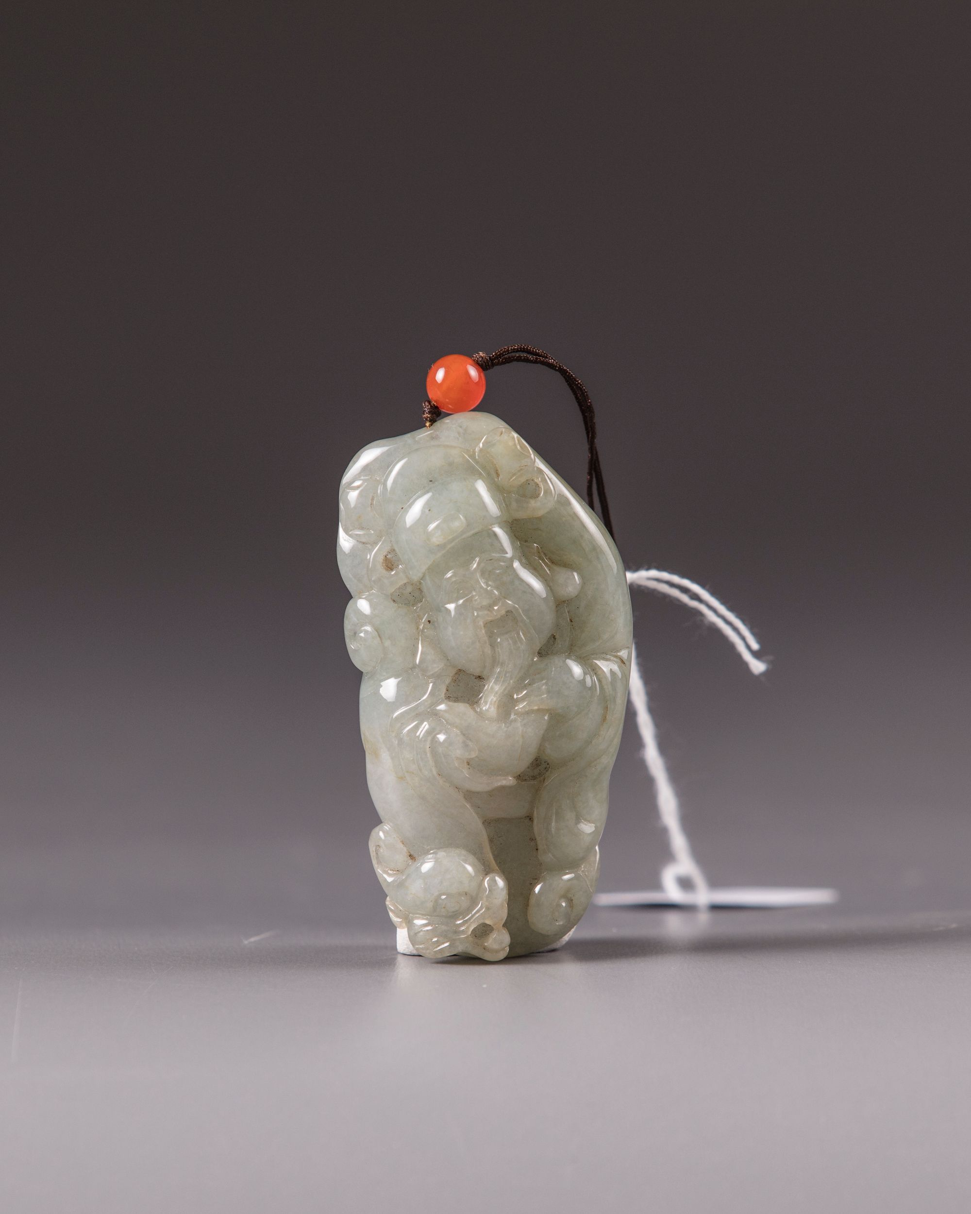 A Chinese jade carving of an elderly figure standing on a qilin
