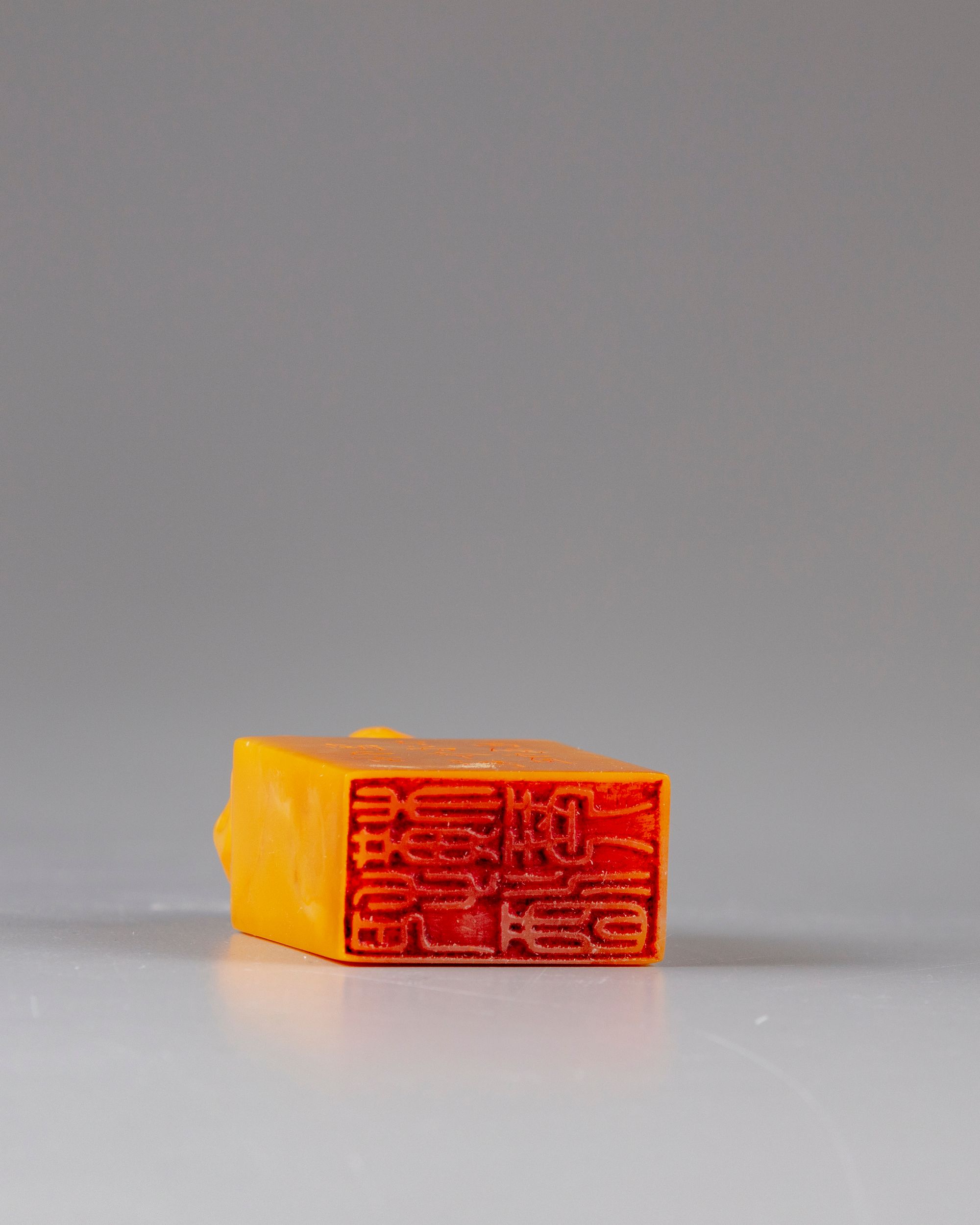 The top carved with a lion, with a lengthy inscription indicating the date and the carver’s name.