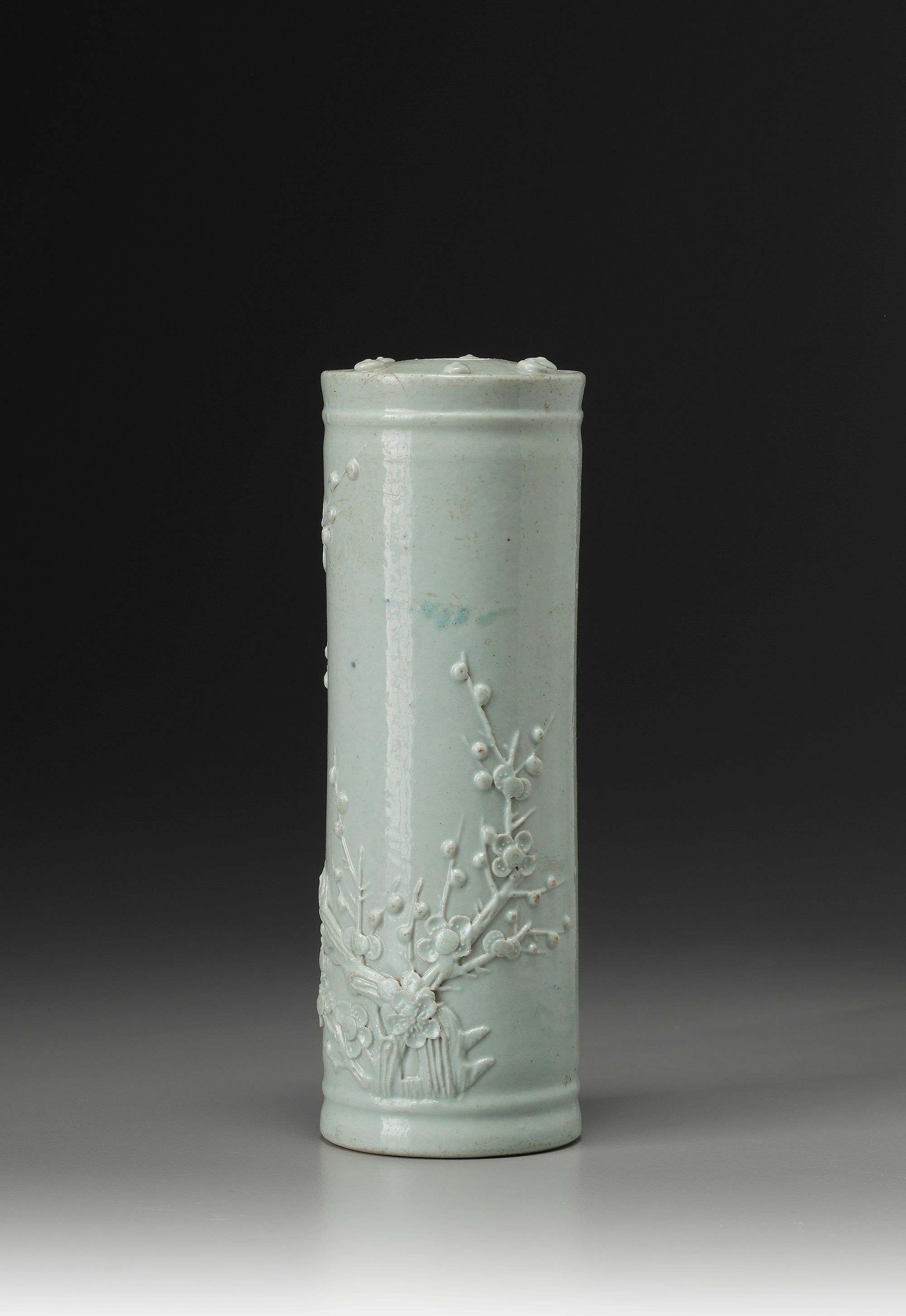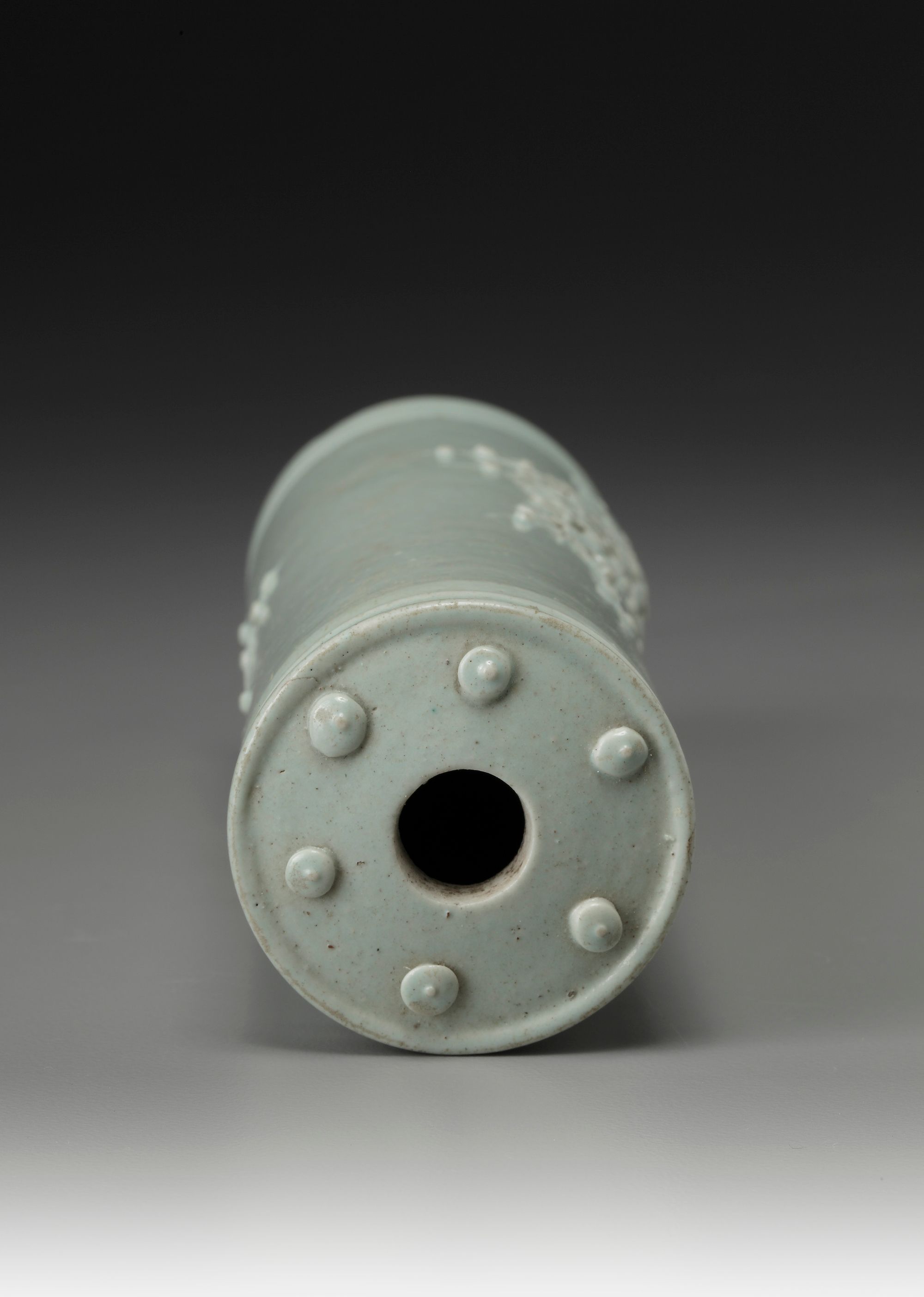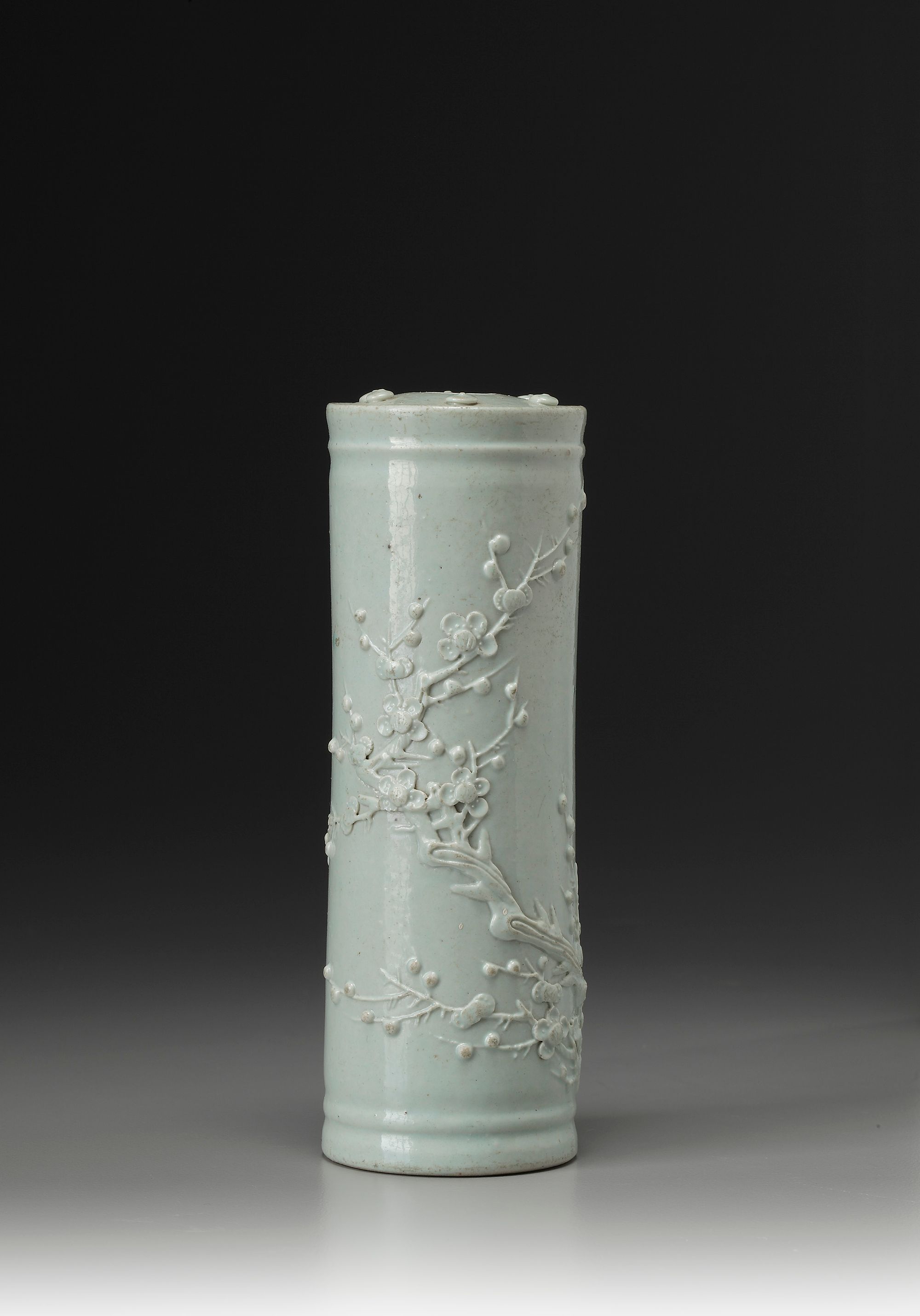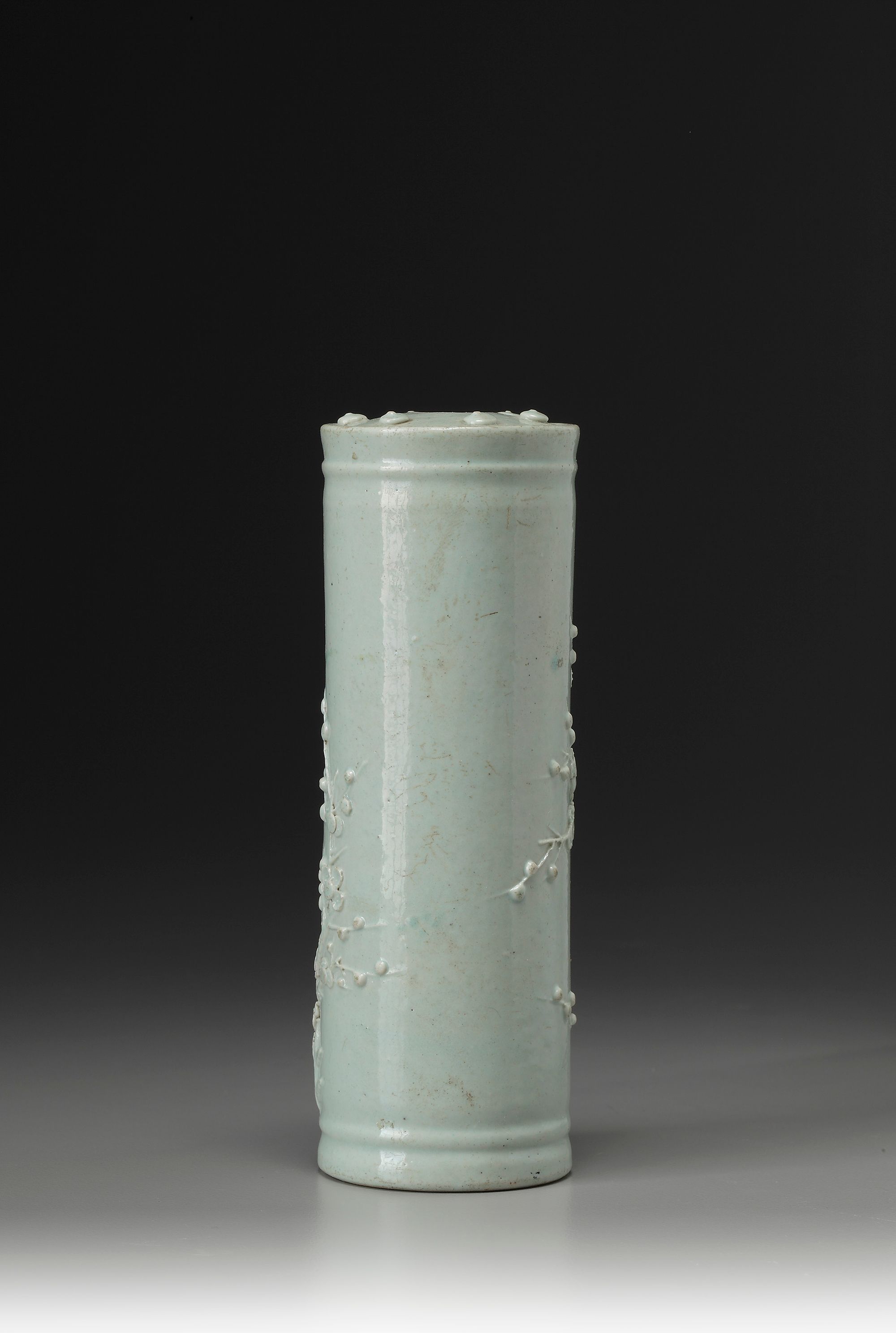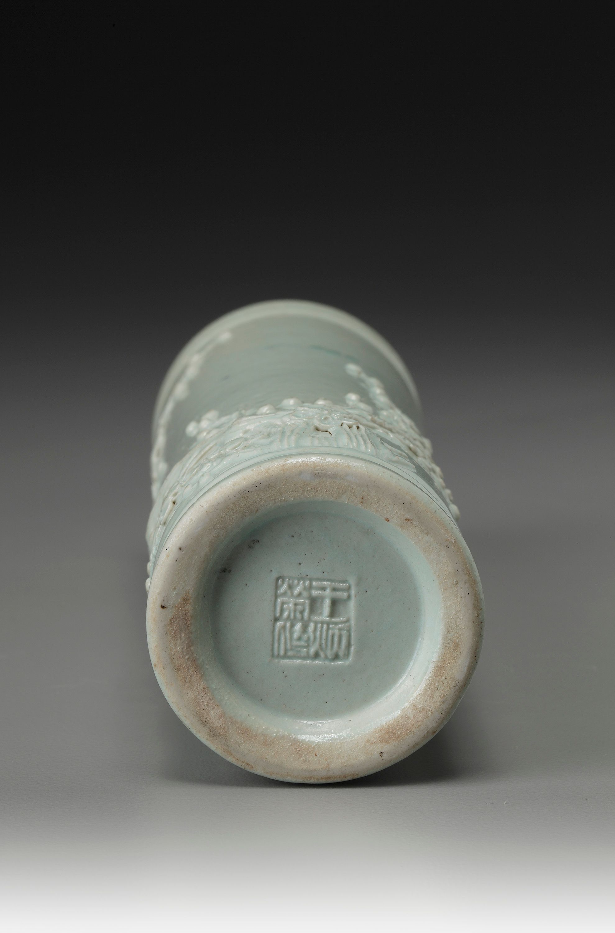 Celadon-glazed and decorated with flowering peach-tree. The base with four-character mark of "Wang Bingrong zuo".