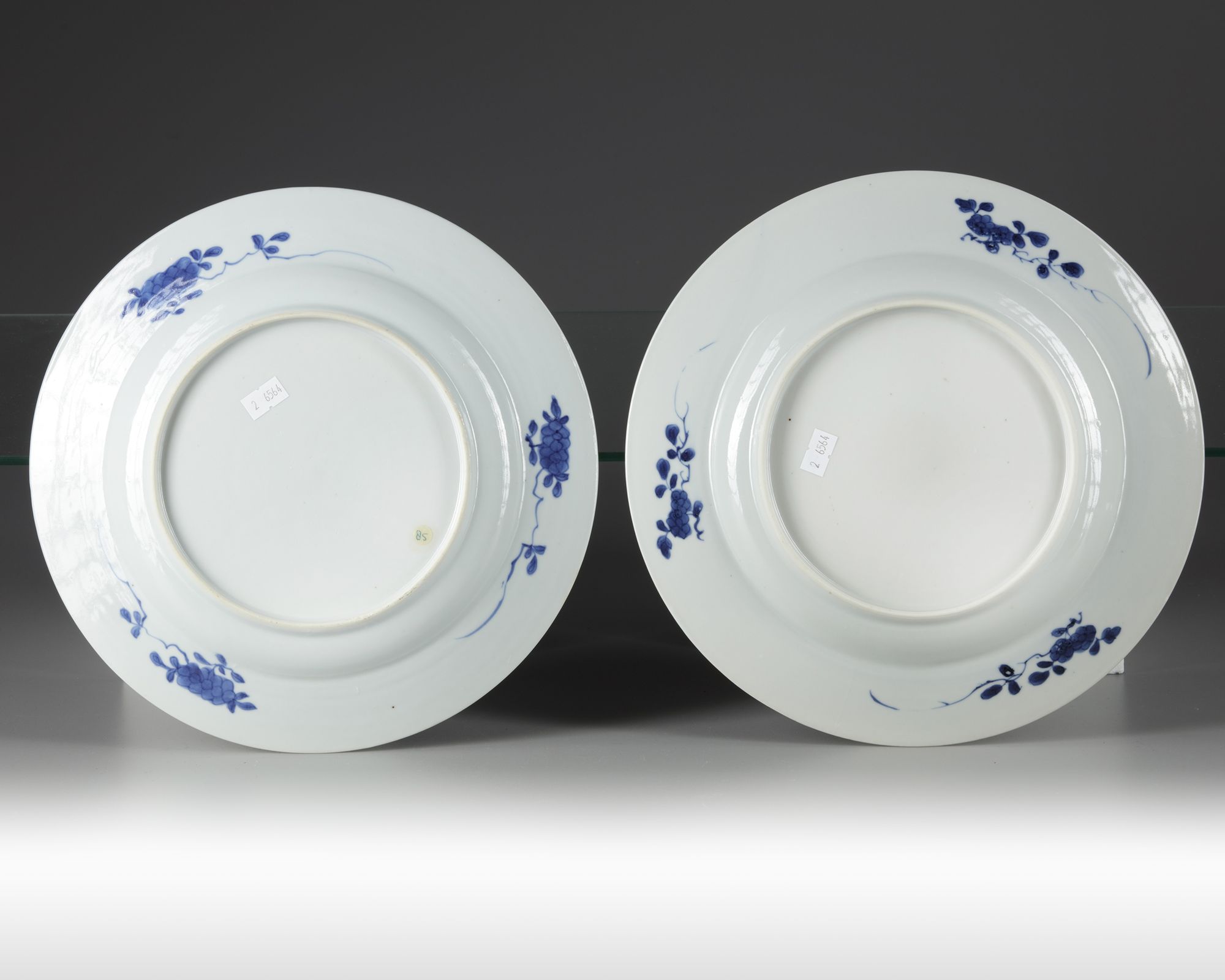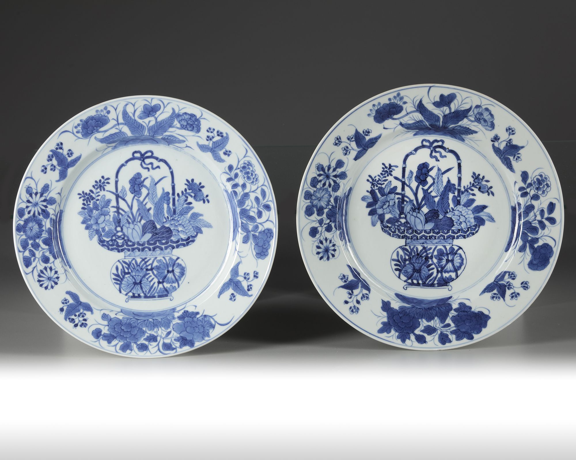 A pair of Chinese blue and white 'flower basket' dishes