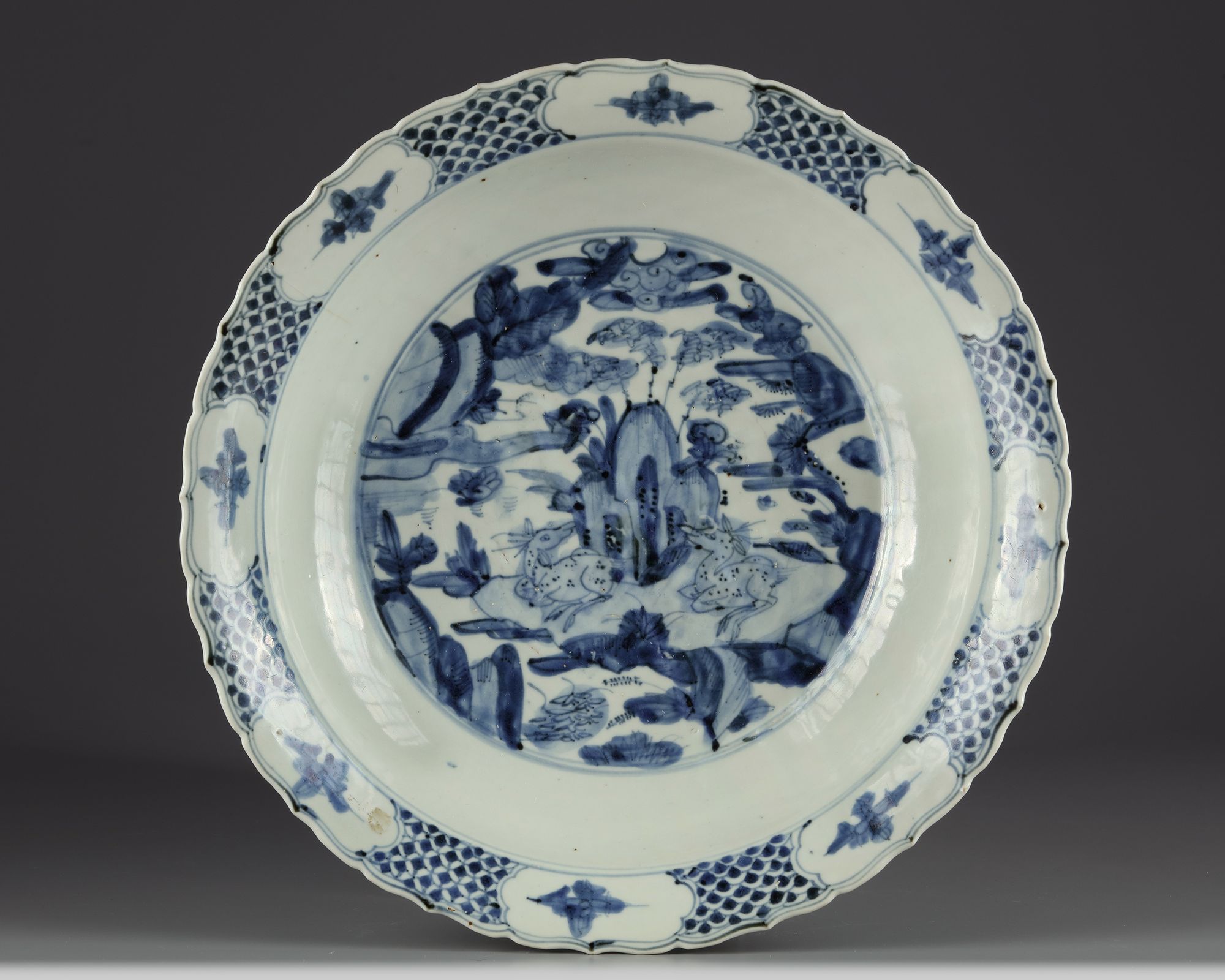 A CHINESE BLUE AND WHITE ZHANGZHOU 'SWATOW 'TWIN DEEAR' CHARGER, 16TH-17TH CENTURY