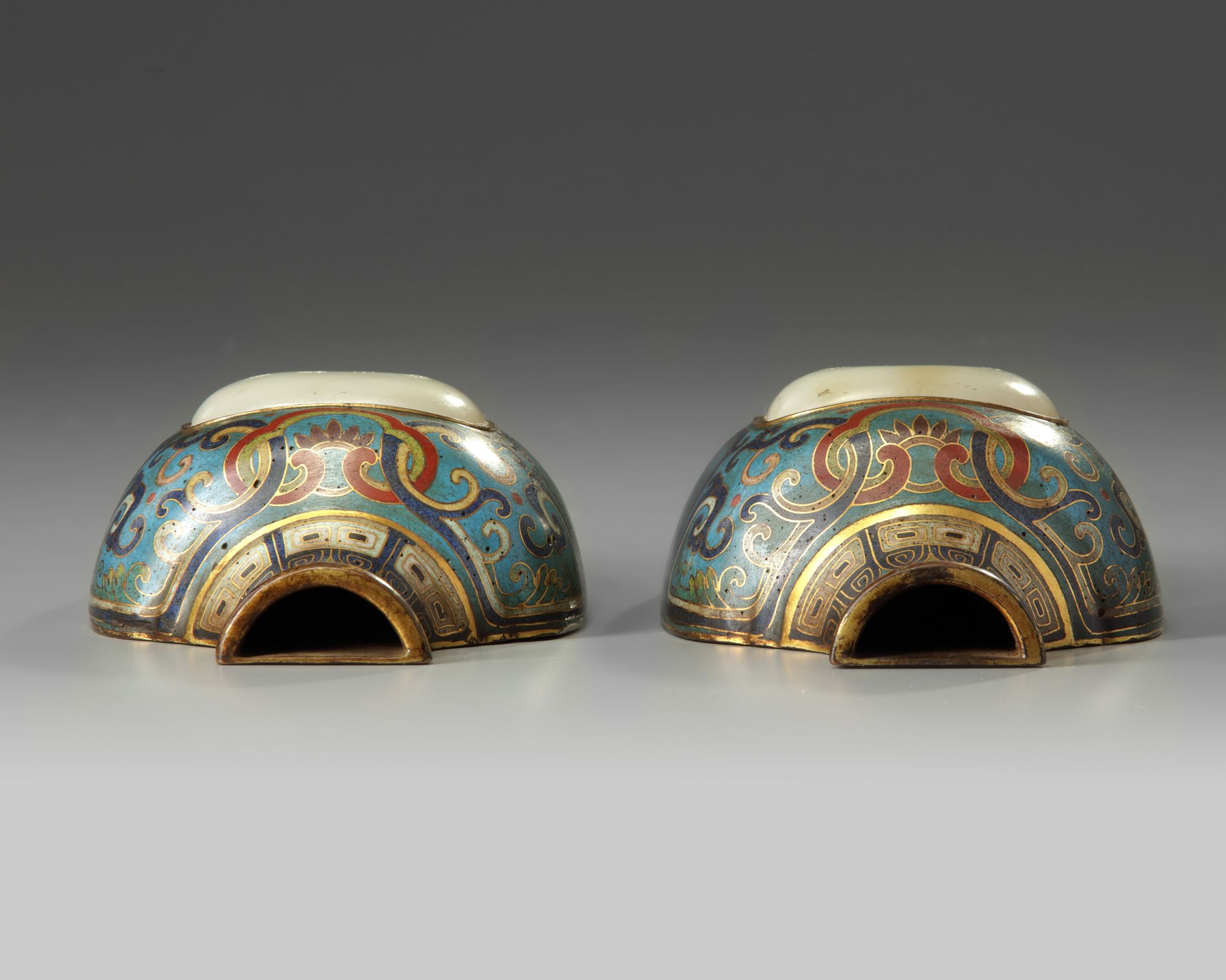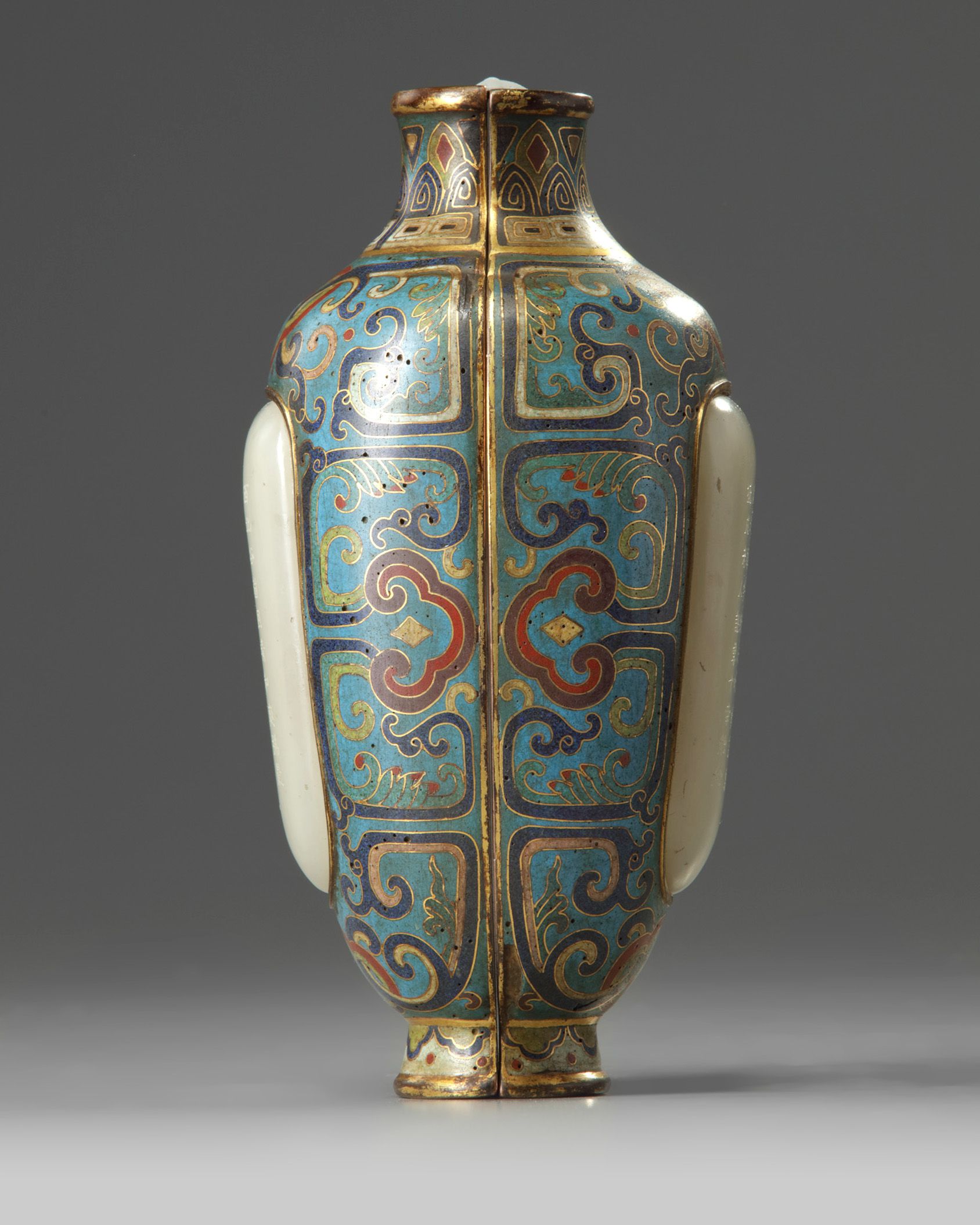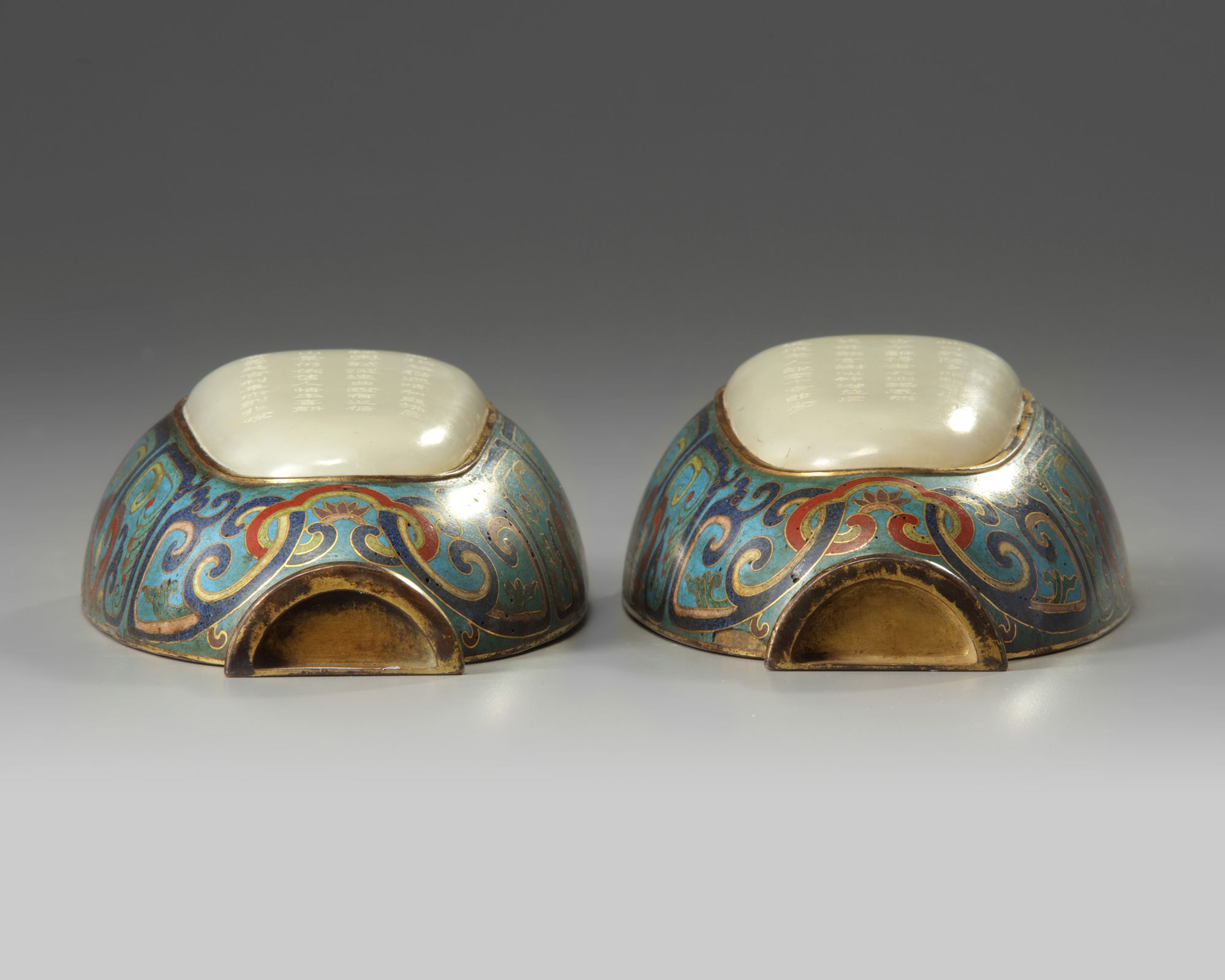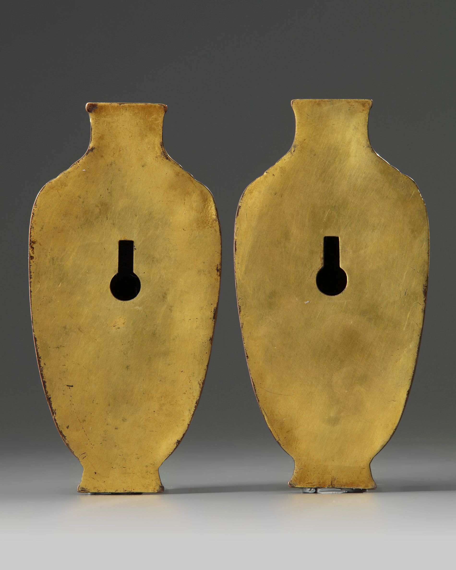A pair of Chinese white-jade inset cloisonné enamel wall vases