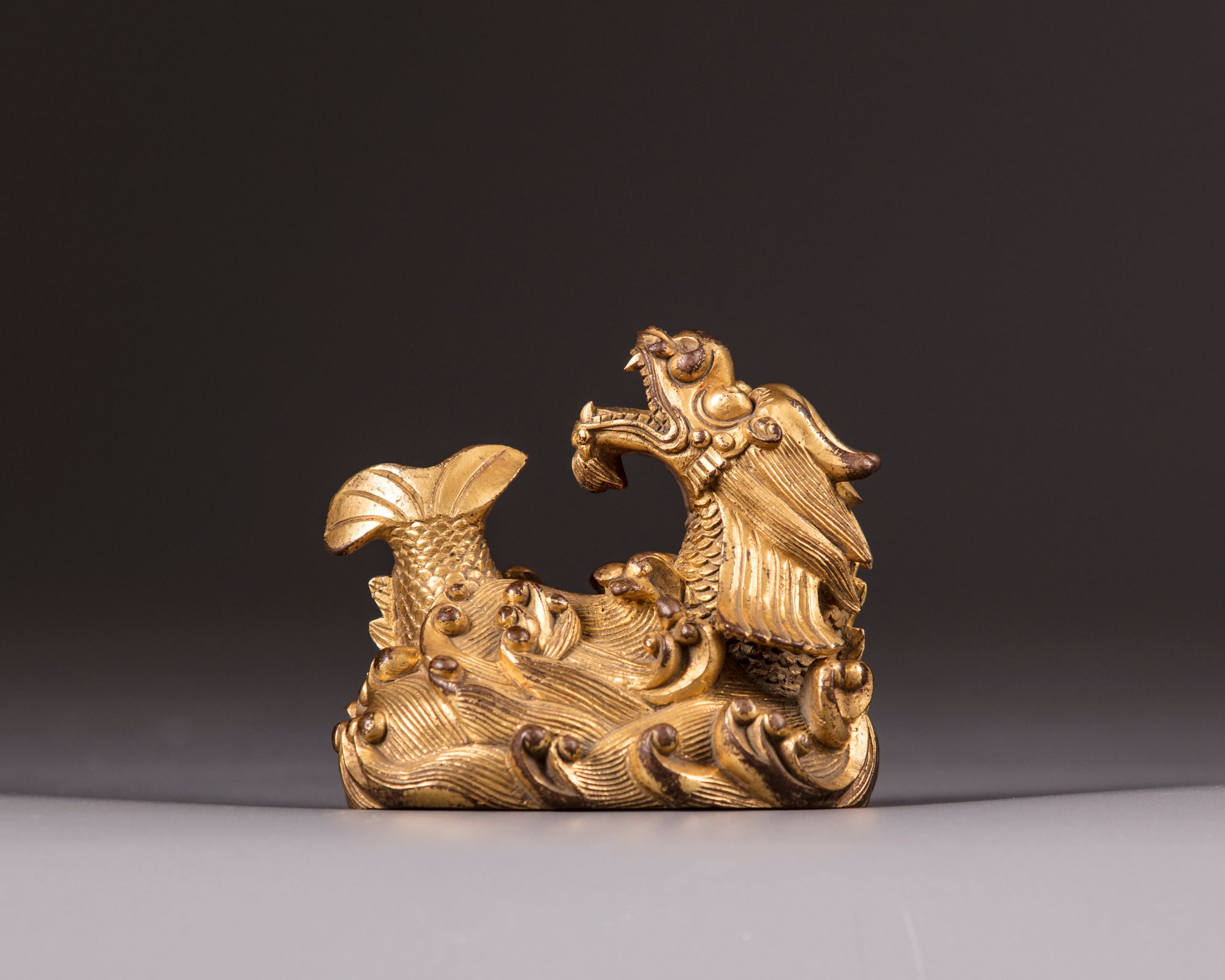 Catalogue notes: The imagery of a dragon carp comes from the myth that a carp that can leap over Dragon's Gate falls on the Yellow River would itself turn into a dragon. This represents the wish for the much coveted success in civil service examinations.