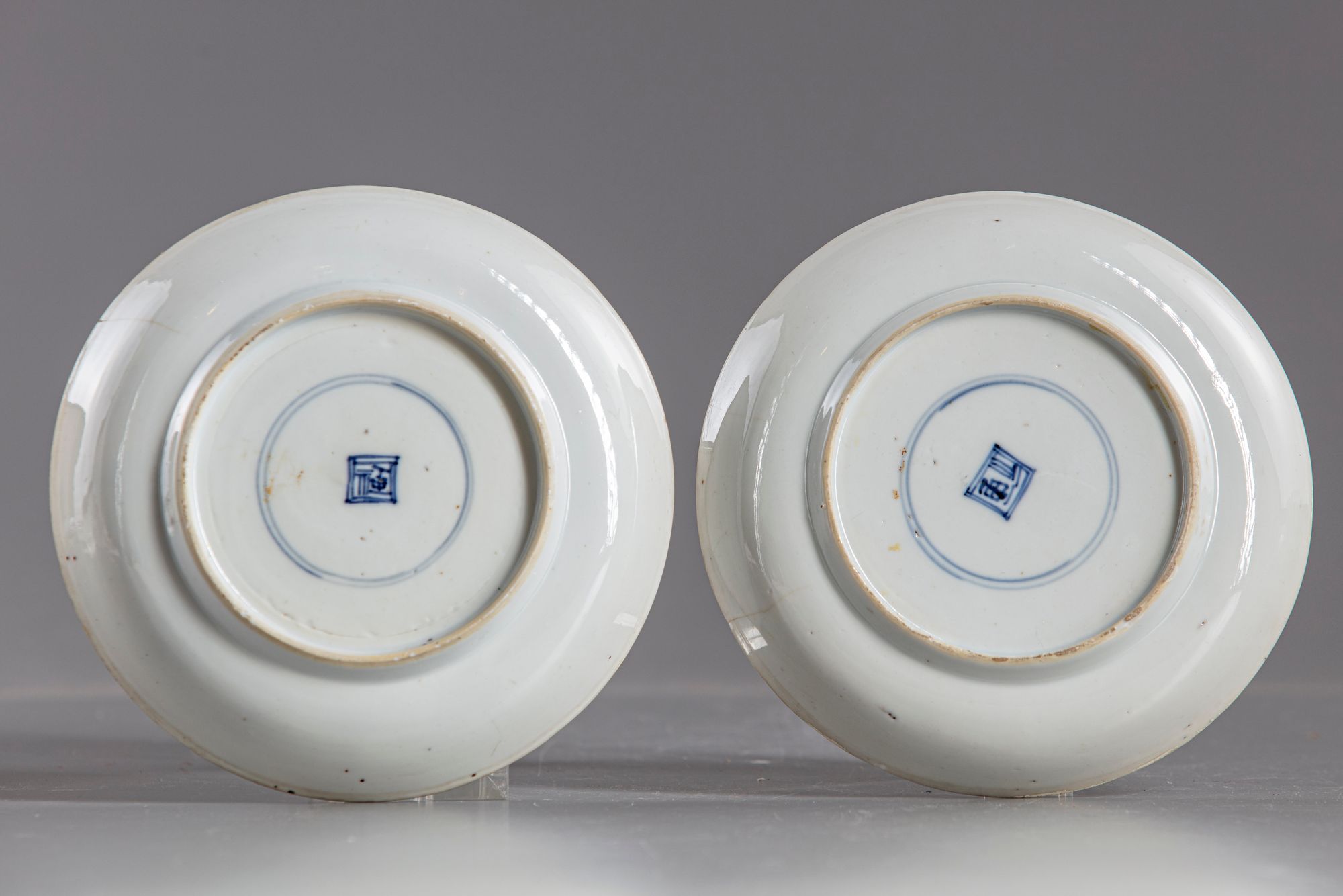 Two Chinese famille verte dishes, decorated to the centre with a gilt flaming pearl, surrounded by precious objects and animals.