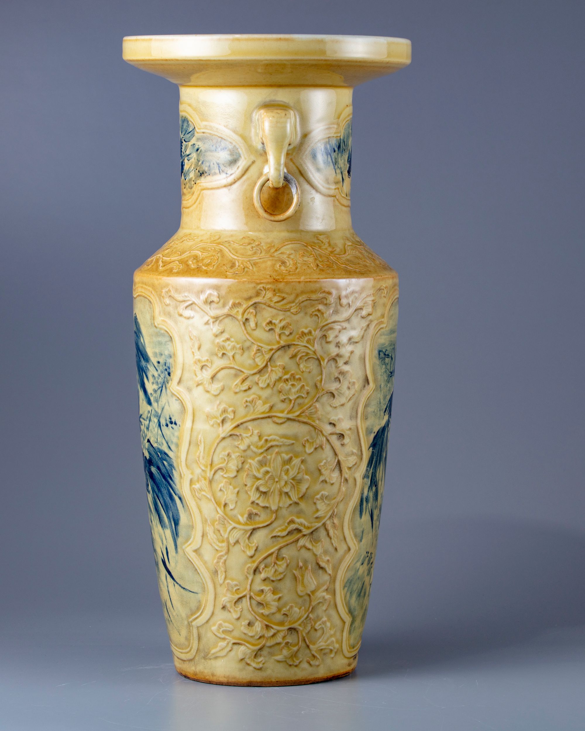 The vase is further decorated in low relief with lotus,buds and foliage leaves.