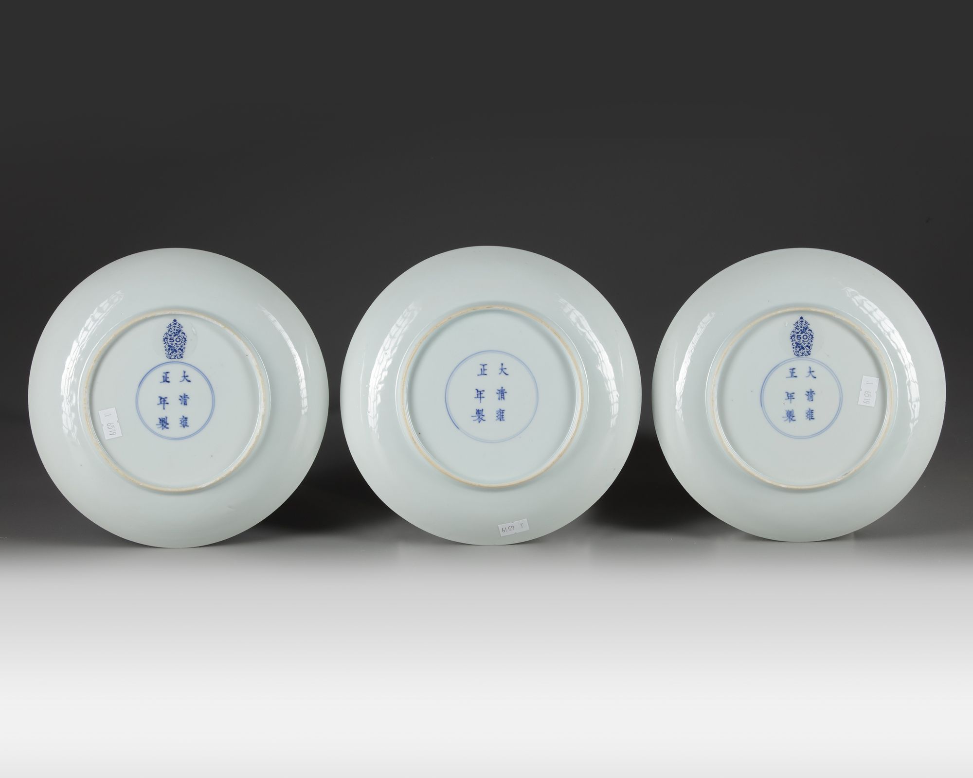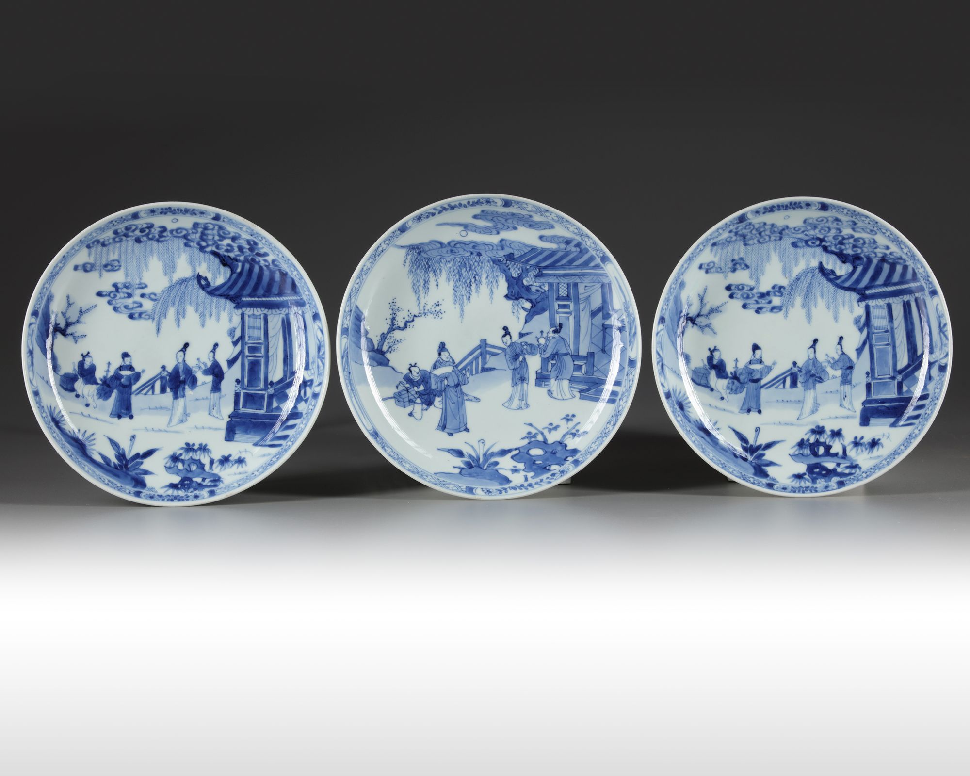 A set of three Chinese blue and white 'Romance of the Western Chamber' dishes