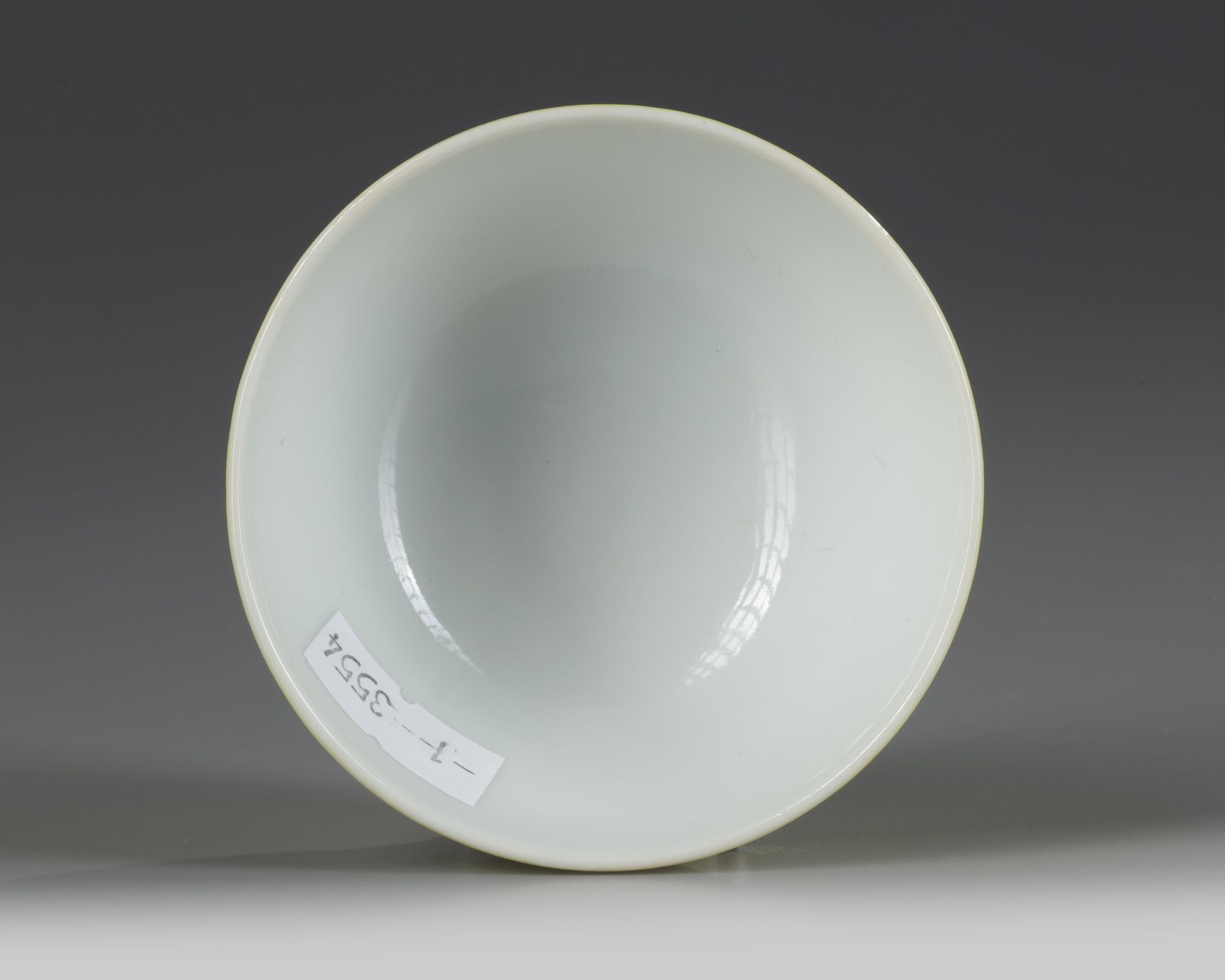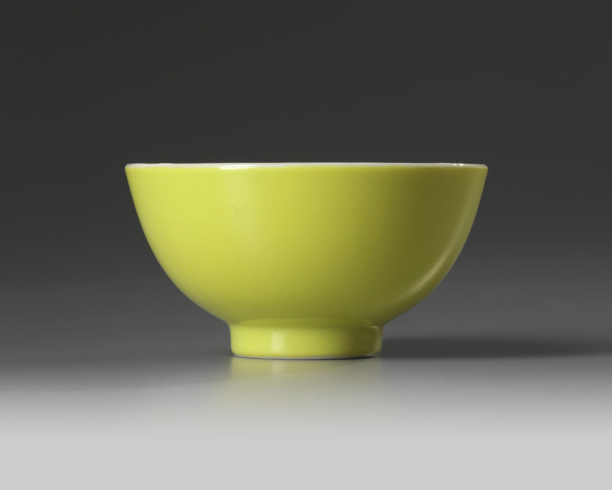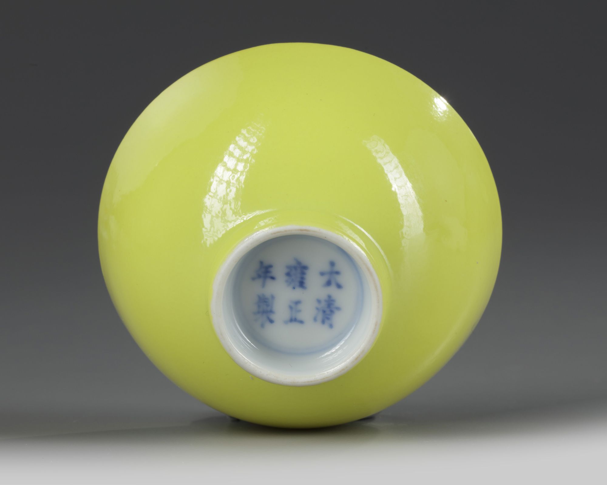 The cup is glazed to the exterior with a bright lemon yellow glaze. The base with an apocryphal Yongzheng mark.