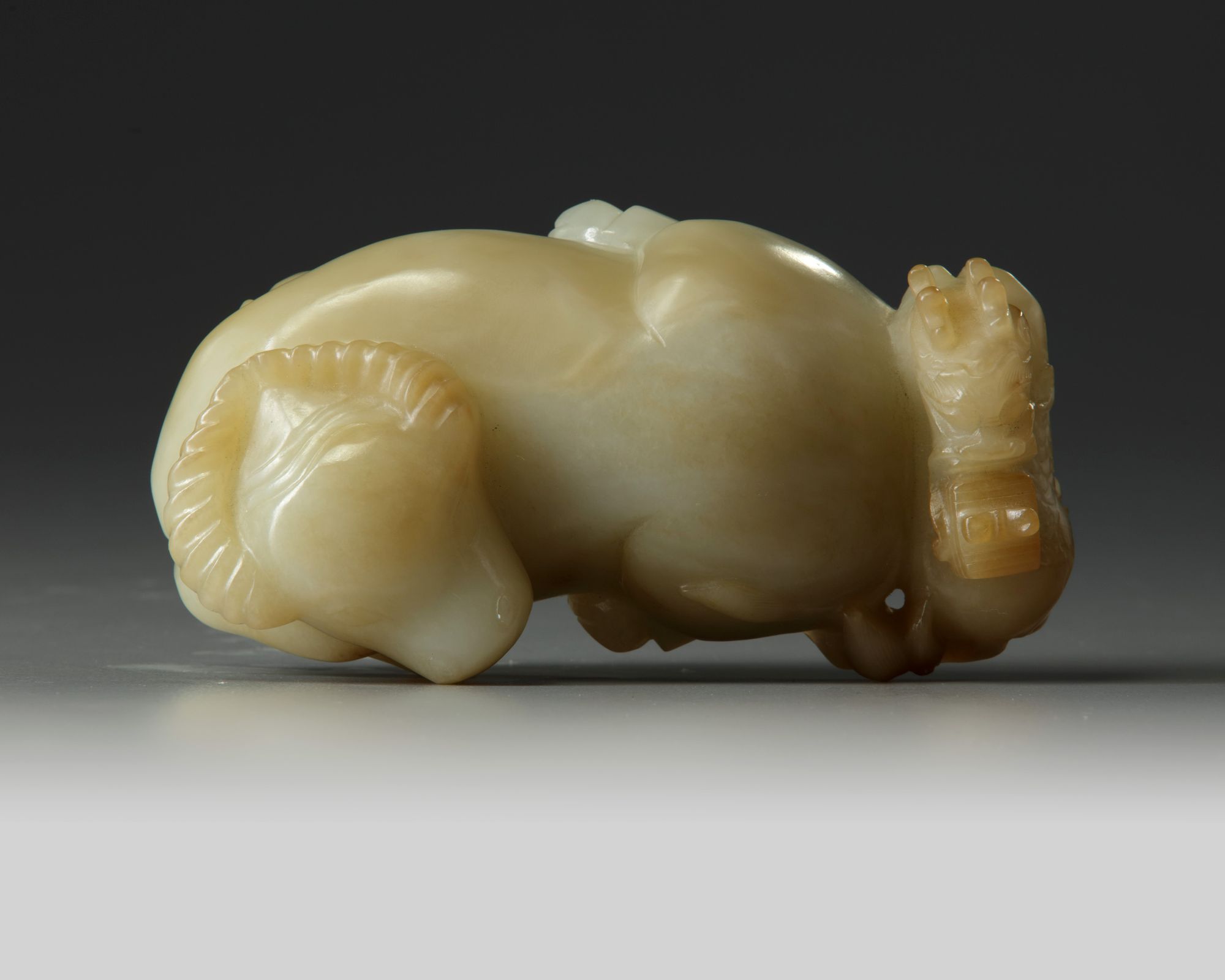 A Chinese celadon jade water ‘buffalo and qilin’ group