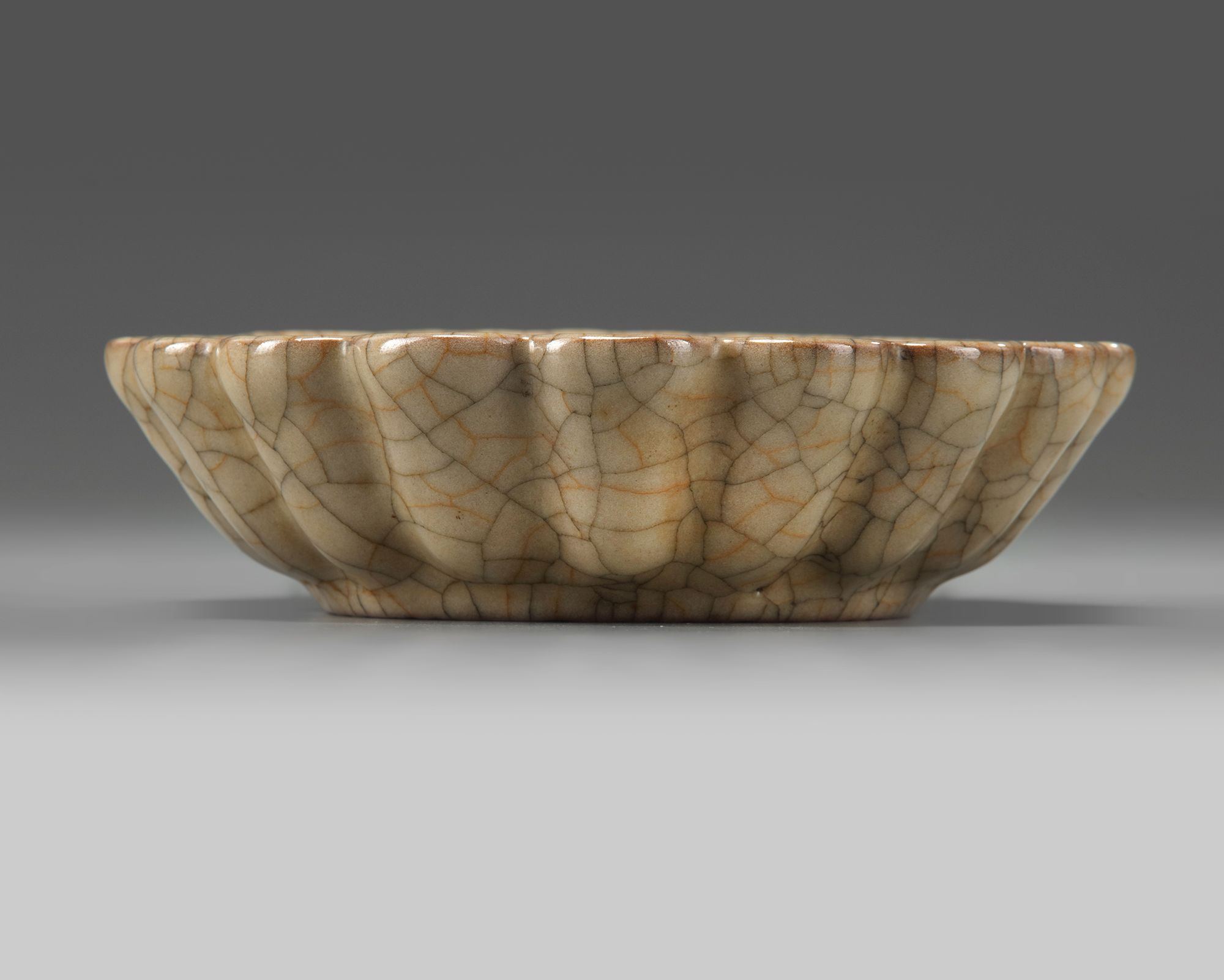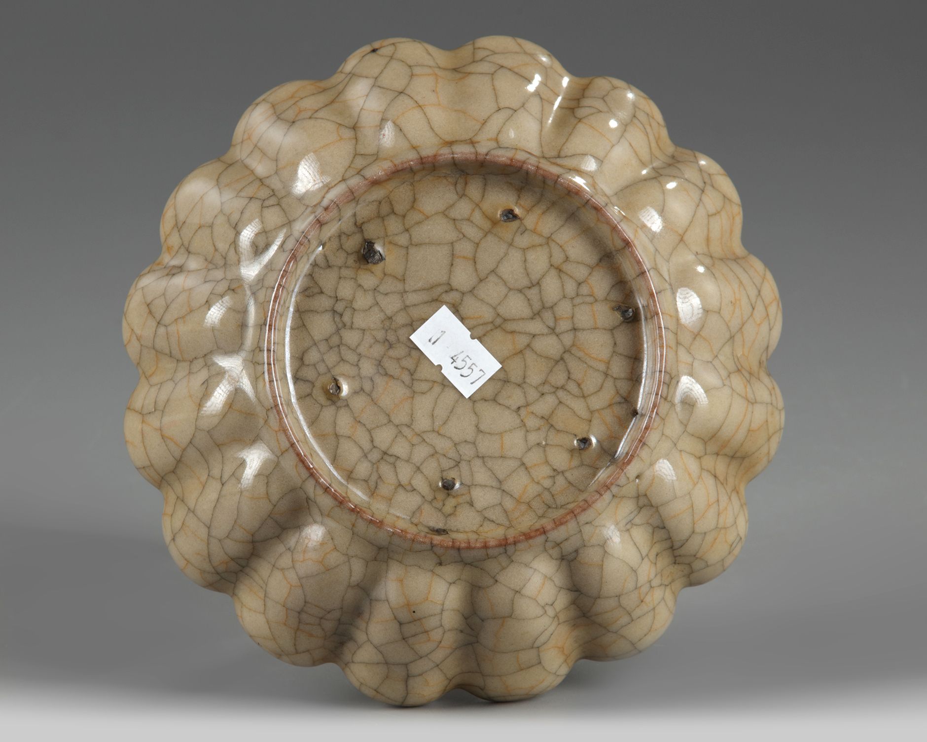 A CHINESE CRACKLE-GLAZED FOLIATE DISH, 20TH CENTURY