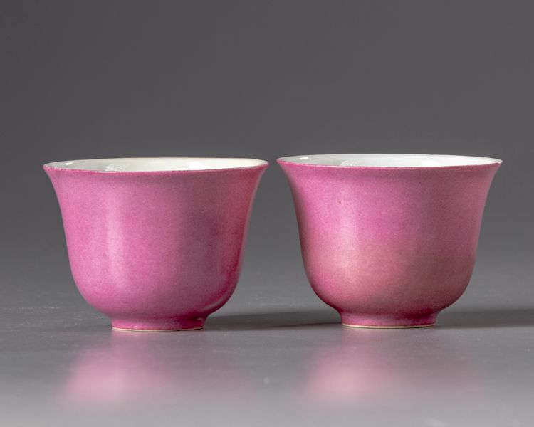 Standing on a small footring with a flaring mouth, covered in rose glaze,the bottom with a Chinese four character mark.