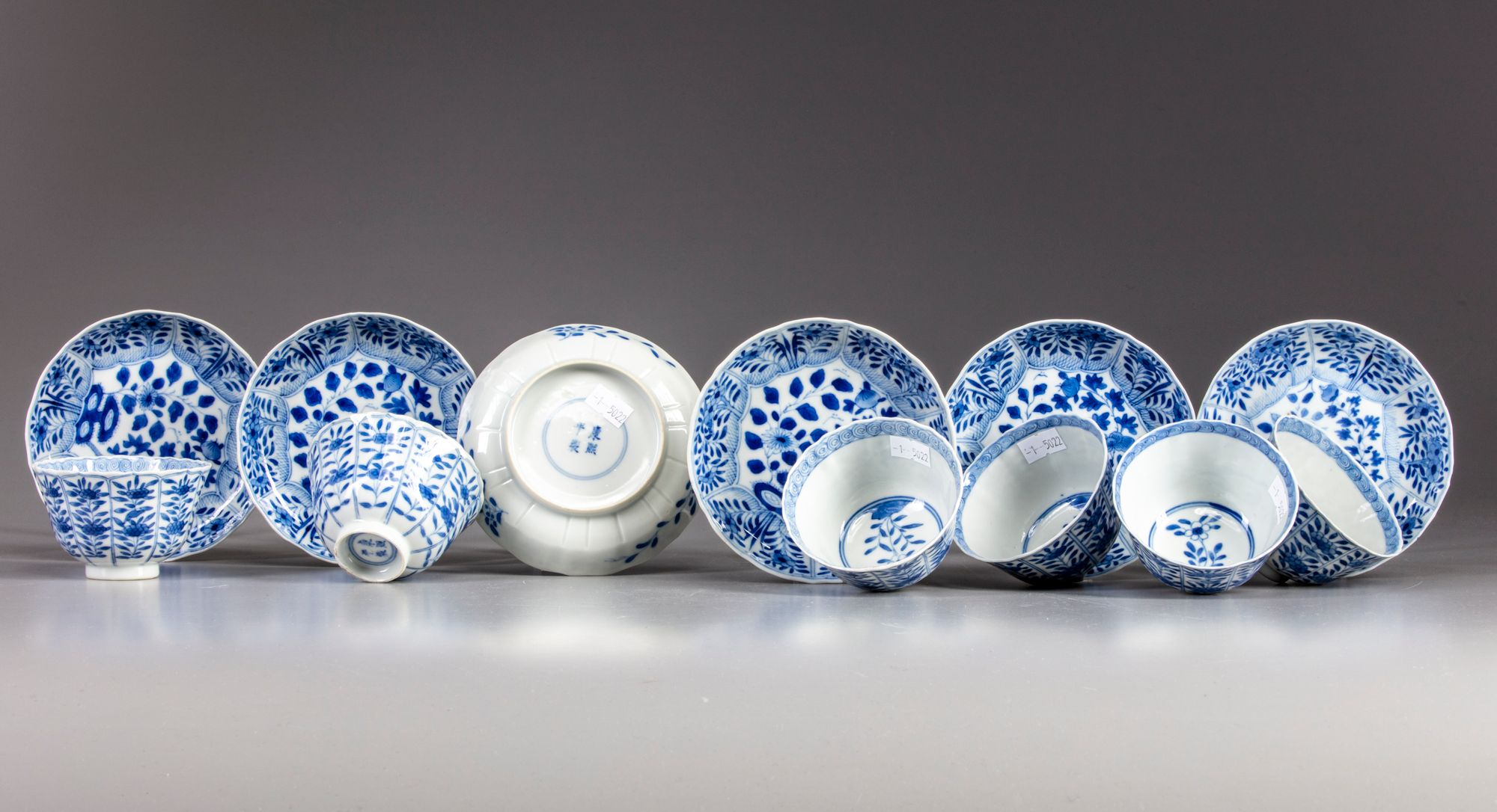 Decorated to the centre with a blossoming tree , surrounded by panels enclosing flowers sand foliage, The bottom with a Chinese Kangxi six character mark.