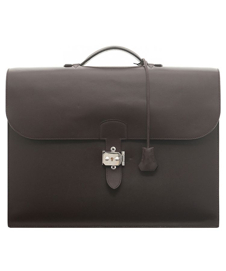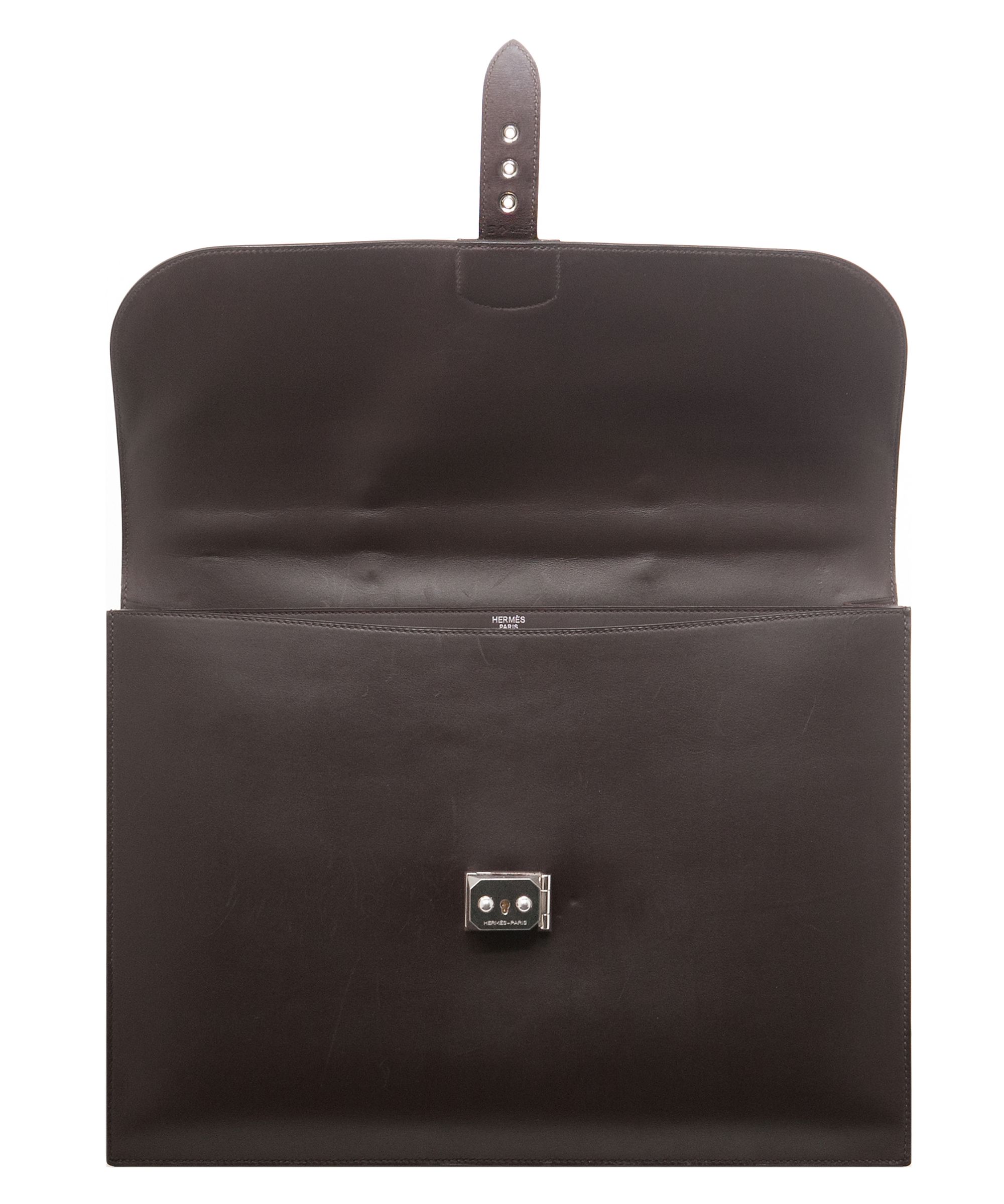 The Hermès Sac à Dépêches Briefcase is perfect for the sophisticated man or woman that needs to store their documents and laptops in style. It has a flap front with unique push lock mechanism made of palladium hardware. It has a divided interior with two side gussets.