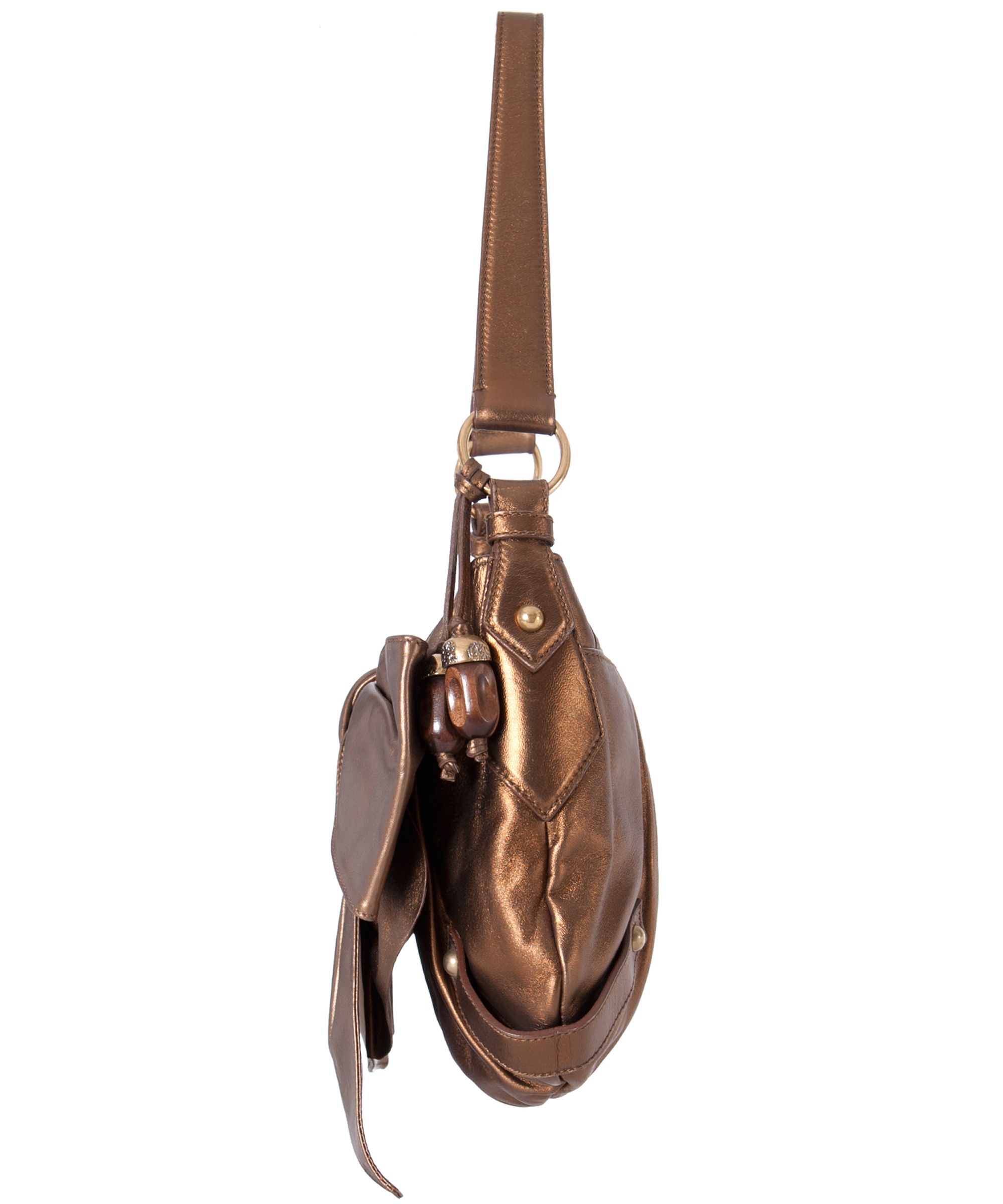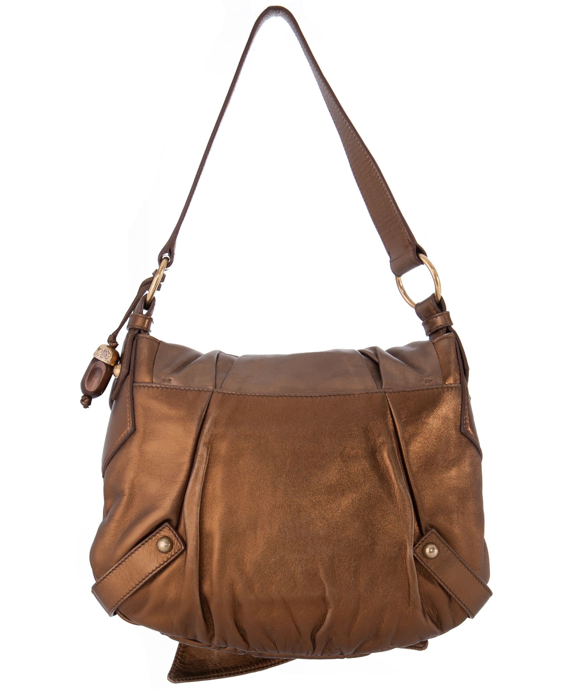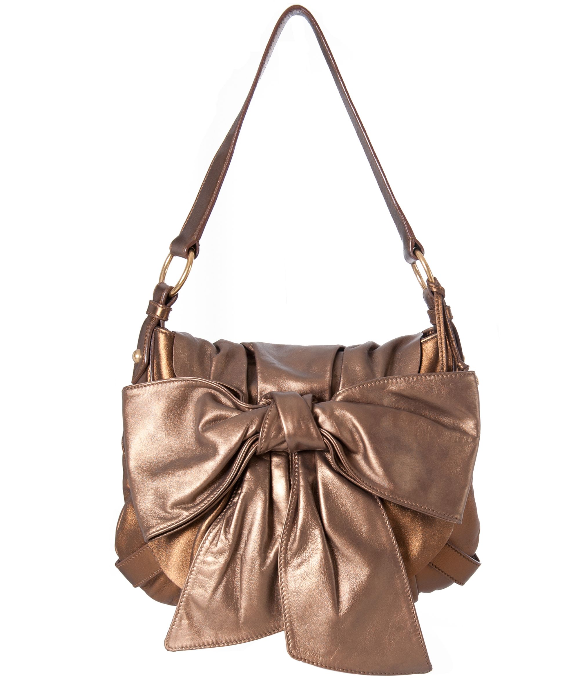 This Yves Saint Laurent metallic bow bag is adorable! The soft bronze leather is just gorgeous as it gleams in the light, but it’s the feminine bow with detachable, dangling beads that really catches the eye immediately. This gleaming bag is suitable for holiday parties and special events!