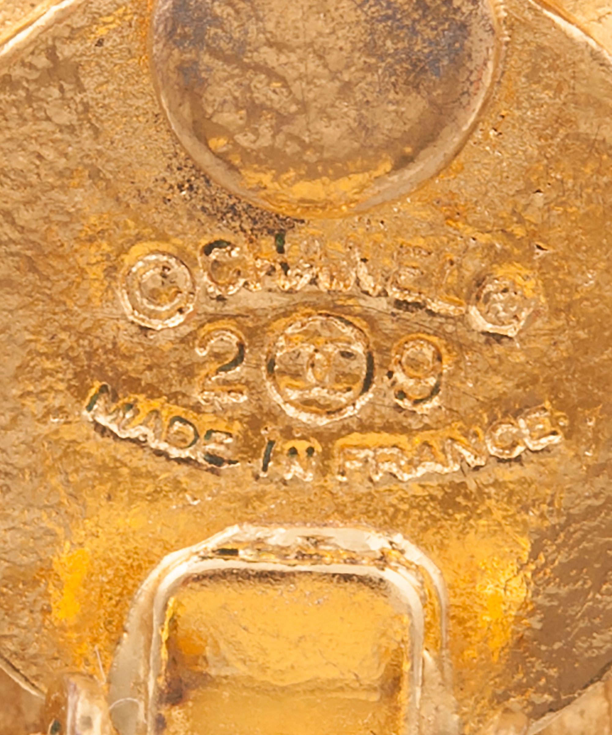 Stunning Chanel clip-on earrings wheat ears crown in gilt metal with a beautiful glass pearl in the center.
