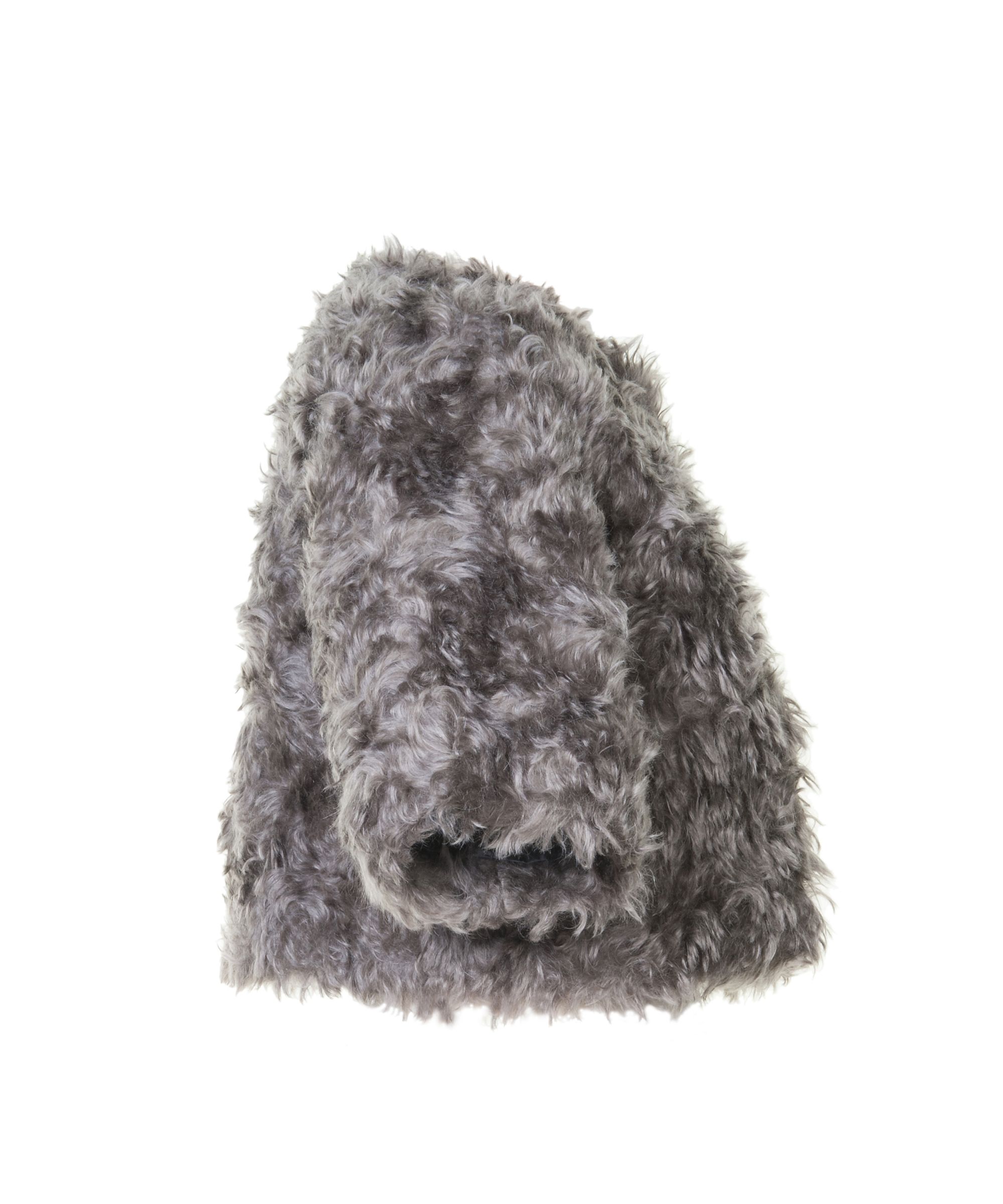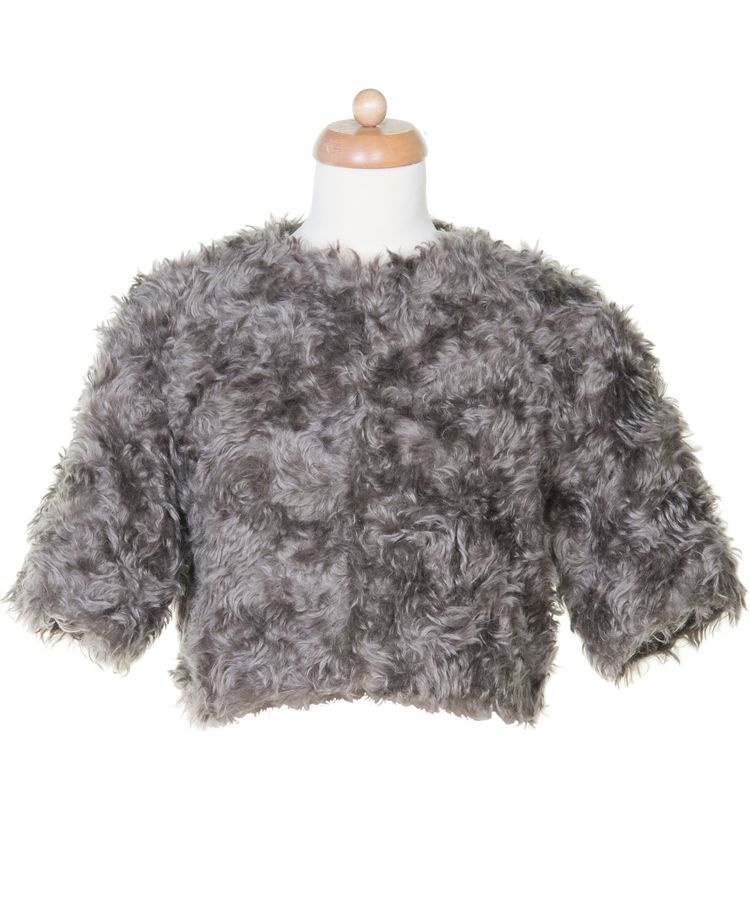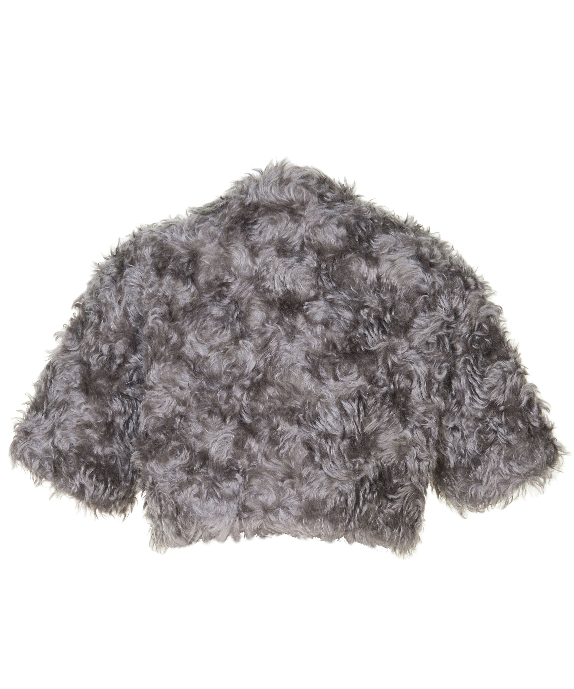 Miuccia Prada described her Fall 2007 collection as 'Something simple but strange'. From a classic crew neckline, the jacket has a slightly boxy shoulder that slopes into a short sleeve. Ending at the waist, this jacket can add an additional air of coziness to a variety of looks. The tufts of the wool give the illusion of this jacket being made of fur.