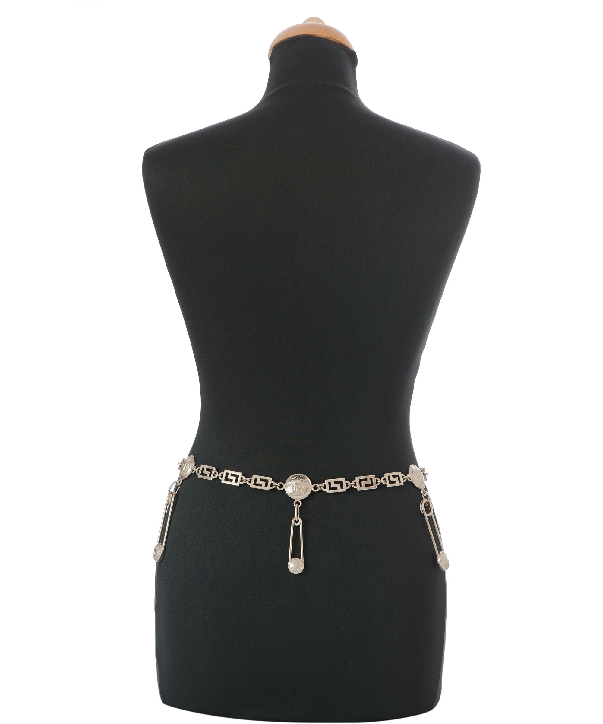 Spring 1994 Versace Silver Medusa 'Safety Pin' Chain Belt / Necklace