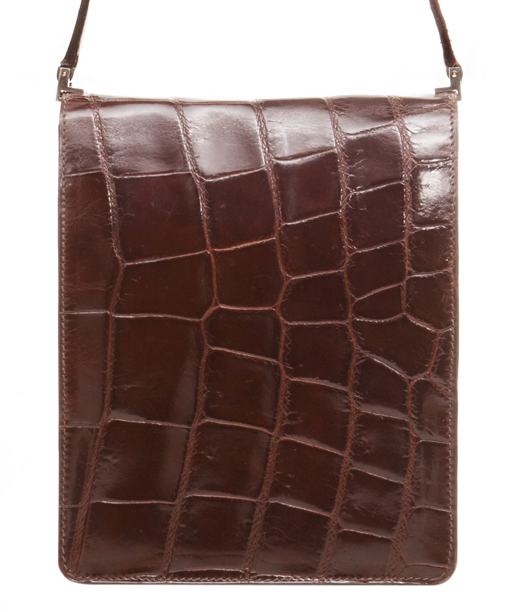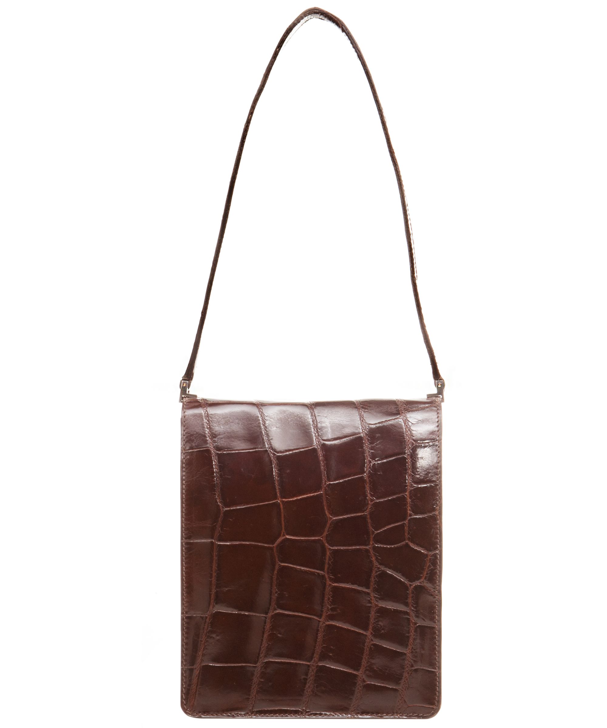 Vintage Pierre Cardin brown croco leather shoulder bag.
