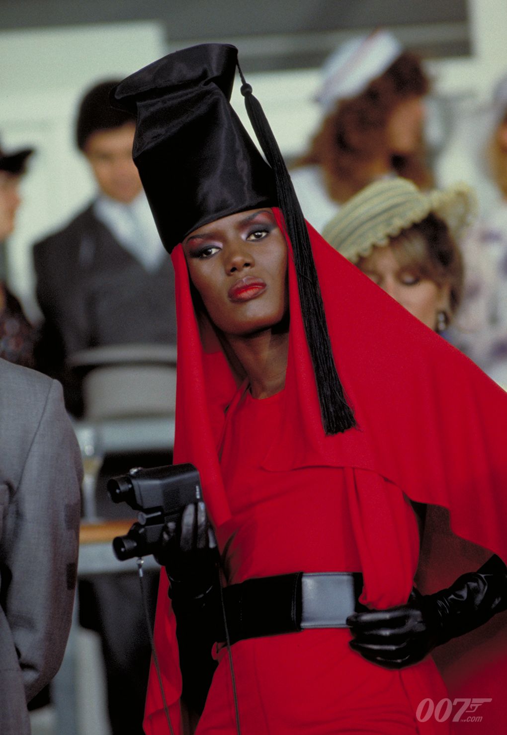 Film documented and museum held Fall/Winter 1984/1985 waist belt by Azzedine Alaïa. It's always a pleasure to be able to document a new arrival. I am absolutely delighted to show you the twin version of this belt worn by none other than Grace Jones in the James Bond movie "A View To A Kill" in 1985. Her ensemble was a result of a collaboration between Grace's friend, Azzedine Alaïa and costume designer Emma Porteous. Grace was perhaps one of Alaïa's most devoted clients. In addition to it a twin of this belt is part of the permanent collection of The Met Museum. Crafted in France from smooth black leather, this rare Azzedine Alaïa belt is designed with a wide strap with tonal black stitching that elegantly wraps around the waist. Fold over hidden peg-in-hole closure, backed in butter soft leather and stamped on the back "AZZEDINE ALAÏA PARIS, Made in France". Marked a size 75.