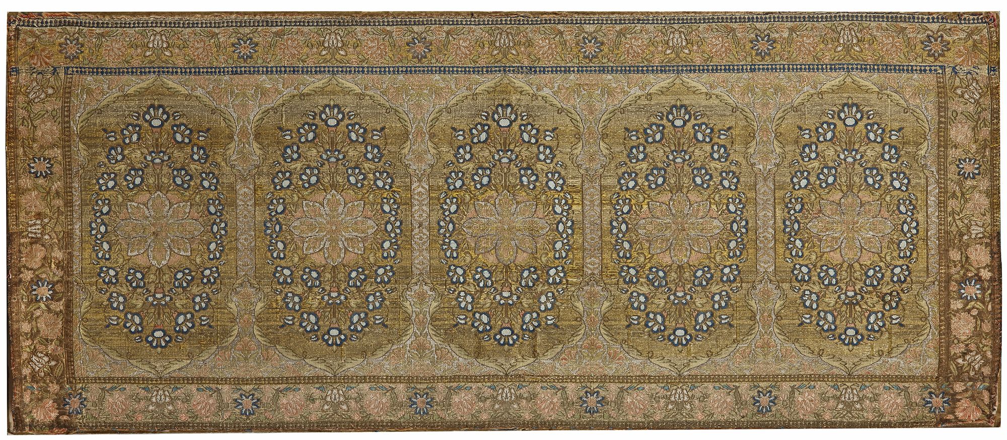 Silk on a panel with silk embroidered floral patterns.
